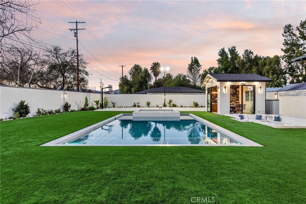 Stunning Luxury Estate in Walnut Acres – Over Half an Acre of Elegance & Opportunity! Discover the perfect blend of sophistication, privacy, and income potential in this newly constructed gated estate. Nestled on a sprawling lot in the coveted Walnut Acres neighborhood, this exceptional property features a grand 6,387 sq ft main residence. Main Residence Highlights: Elegant Design & Smart Living Soaring 12-ft ceilings, exquisite Venetian plaster walls, and a state-of-the-art Crestron smart home system throughout. Luxurious Comfort Cozy fireplace and a private theater room with plush seating for eight—perfect for movie nights or entertaining. Chef’s Dream Kitchen Equipped with a 6-burner range, premium appliances, expansive island, walk-in pantry, additional fridge, and a wine fridge. Spa-Inspired Primary Suite Includes a massive walk-in closet, indulgent soaking tub, and dual water closets for ultimate comfort. Spacious Upstairs Retreat Five bedrooms (three ensuite, two Jack-and-Jill), four bathrooms, and an oversized patio with serene views. Climate Control Every room enjoys individual temperature control with five dedicated AC units. Resort-Style Outdoor Living: Sparkling pool & spa Fire pit surrounded by lush landscaping Full outdoor kitchen and basketball court Unbeatable Location: Ideally situated near top-rated charter schools, upscale shopping, and entertainment hubs—enjoy all that Walnut Acres has to offer. Available for both short-term and long-term rentals. Contact me today for more details or to schedule your private tour.