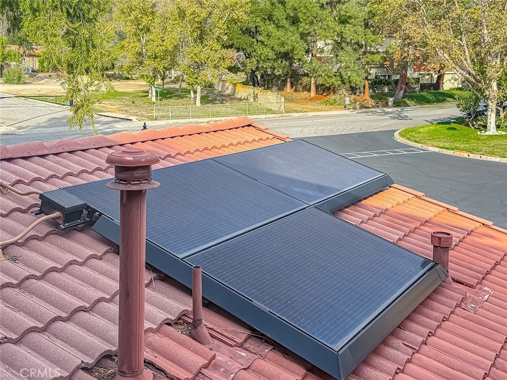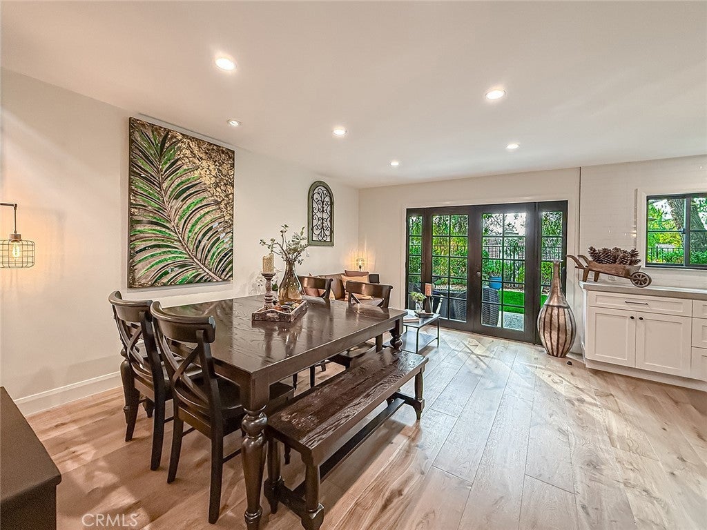 Located in a desirable cul-de-sac across from Deerhill Park, this beautifully remodeled home offers sophisticated upgrades with a modern farmhouse aesthetic. The kitchen features custom cabinetry with soft-close hardware, a large Caesarstone island, Bosch dishwasher, GE Monogram appliances, and elegant pendant lighting. Oak hardwood floors, installed in 2022, enhance the open floor plan and highlight the black vinyl windows and French doors, providing abundant natural light and scenic views. Recent improvements include updated lighting throughout, a fully renovated powder room with a barn wood vanity and farmhouse sink, a remodeled primary suite with dual closets and a modern bath, and a remodeled secondary bath. The backyard is designed for both relaxation and entertainment, featuring a fenced dog run, BBQ area, pet-friendly turf, a seating area, and a freshly painted sport court with a regulation basketball hoop. Energy efficiency is maximized with Tesla solar panels (rented at $130/month), which cover electricity needs and vehicle charging. The finished two-car garage is insulated and equipped with recessed lighting, epoxy flooring, and climate control. Situated in the acclaimed Oak Park School District and within walking distance to schools, parks, trails, and community amenities, this home combines comfort, style, and convenience in a prime location.