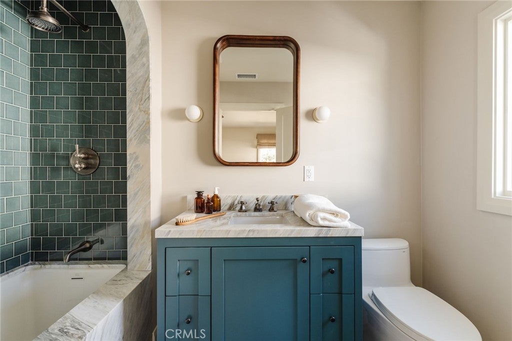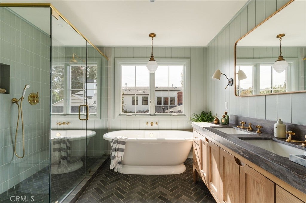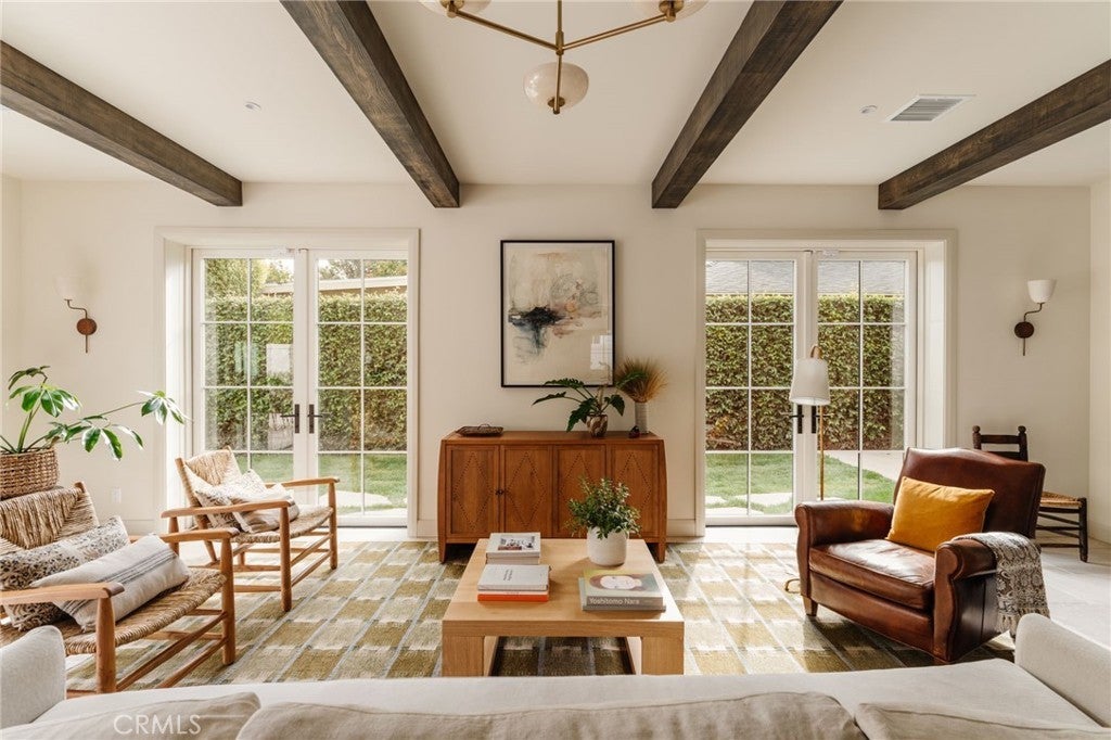 Tucked in the heart of one of Studio City’s most sought-after neighborhoods, Colfax Meadows, this newly built home was thoughtfully designed and constructed by Mercantile & Merchant in collaboration with Perella Architects. Every element has been carefully considered — from the fixtures and furniture to the wallpaper and color palette — creating a home that feels both refined and welcoming. The design takes full advantage of the surrounding landscape and natural light, resulting in a warm, balanced living environment. Custom millwork runs throughout, adding texture and craftsmanship to every room. The formal living area features vaulted ceilings, a classic brick fireplace, and striking windows that frame a mature Magnolia tree in the cedar-fenced front yard. On the main level, a moody powder room, elegant laundry space, and dedicated dining area lead into an expansive great room and chef’s kitchen. Outfitted with Taj Mahal stone counters, premium appliances, as well as a custom walk-in scullery, the kitchen is as functional as it is beautiful. Large folding doors fully open to a private backyard framed by tall hedges, creating effortless indoor-outdoor flow and a true sense of calm. Upstairs, the primary suite includes a spacious walk-in closet, a spa-like bathroom with a walk-in shower and freestanding soaking tub, and a private balcony with mountain views. Three additional ensuite bedrooms each offer their own personality and charm. The backyard serves as a private retreat, featuring a sun-drenched pool positioned between the main home and a full-sized ADU with its own living room, bedroom, and bathroom. French doors throughout allow natural light to pour in and connect every space to the outdoors. Ideally located within walking distance of Tujunga Village and Ventura Boulevard’s shops, cafés, and restaurants — and within the highly regarded Carpenter School District — this home offers a rare blend of craftsmanship, comfort, and California living at its best.