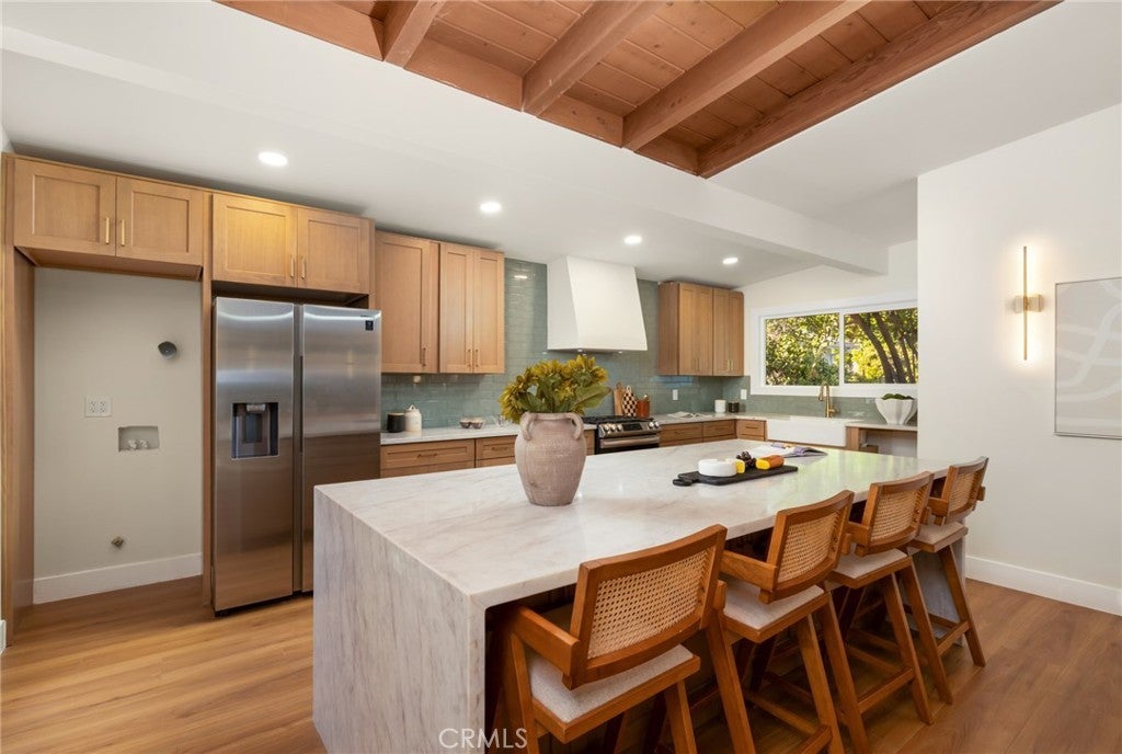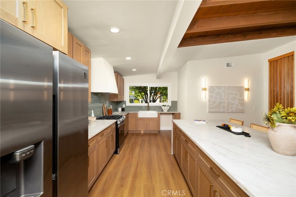Located in the highly desirable Encino Village and within the award-winning Encino Charter Elementary School boundaries, this beautifully remodeled mid-century modern home offers approximately 1,364 sq. ft. of refined living space. Welcome to a stunning 3-bedroom, 2-bath residence where timeless architecture meets luxurious modern design. Completely renovated with no expense spared, this home features an open-concept layout that effortlessly blends the living, dining, and kitchen areas—ideal for both everyday comfort and stylish entertaining. Sunlight pours through the space, accentuating the clean lines, upscale finishes, and exceptional craftsmanship found throughout. Both the front and rear yards have been thoughtfully redesigned, creating serene outdoor retreats with sophisticated landscaping and inviting spaces perfect for relaxing or hosting guests. With convenient access to the 101 and 405 freeways, nearby parks, scenic bike paths, golf, tennis, and the Encino Community Center, this turnkey home combines modern elegance with an unbeatable location.