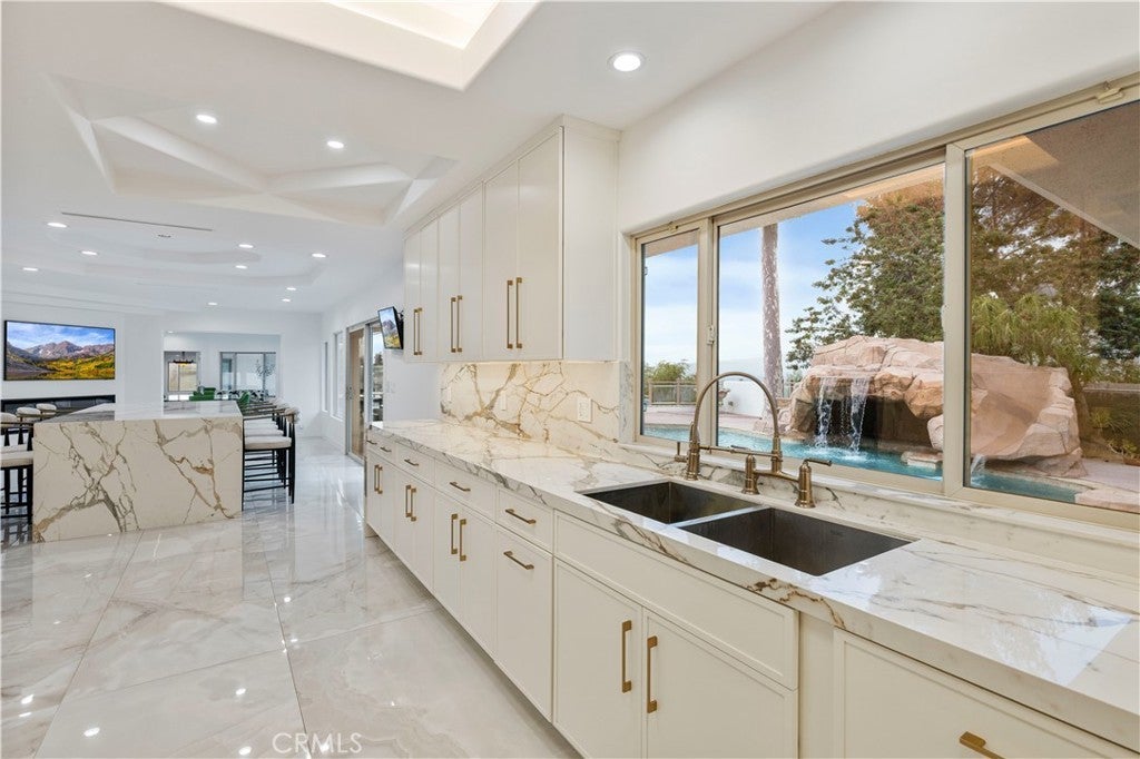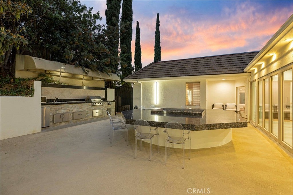 Introducing a truly exceptional property that perfectly blends privacy, sophistication, and high-quality craftsmanship. Nestled in a premier location, this home’s beauty and exclusivity are simply breathtaking. From the moment you step inside, you’ll be greeted by soaring ceilings, high-end finishes, and light-filled open spaces designed for both intimate living and grand entertaining. The seamless indoor/outdoor flow makes it ideal for gatherings, while 5 spacious bedrooms and 3.5 bathrooms provide ample room for comfort and relaxation on nearly one acre of land. The beautifully updated kitchen is a chef’s dream, flooded with natural light and equipped with top-of-the-line Thermador appliances, opening to a cozy family room with a fireplace. The primary suite offers a luxurious retreat with a romantic balcony, two expansive walk-in closets, and a spa-like bathroom. Additional highlights include a smart home surveillance system for enhanced security and abundant windows showcasing stunning views of the lush landscape. Step outside to your private resort featuring a sparkling pool with a waterfall and slide, a fully equipped outdoor kitchen and BBQ area, and a park-like backyard perfect for children or quiet moments. Uniquely, the property offers direct access to Corbin Canyon trails right from the backyard—a rare convenience for nature lovers and outdoor enthusiasts. This estate combines unparalleled scale and quality with every imaginable amenity. The location, design, and flawless condition will captivate you from the very first visit.