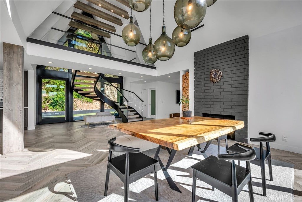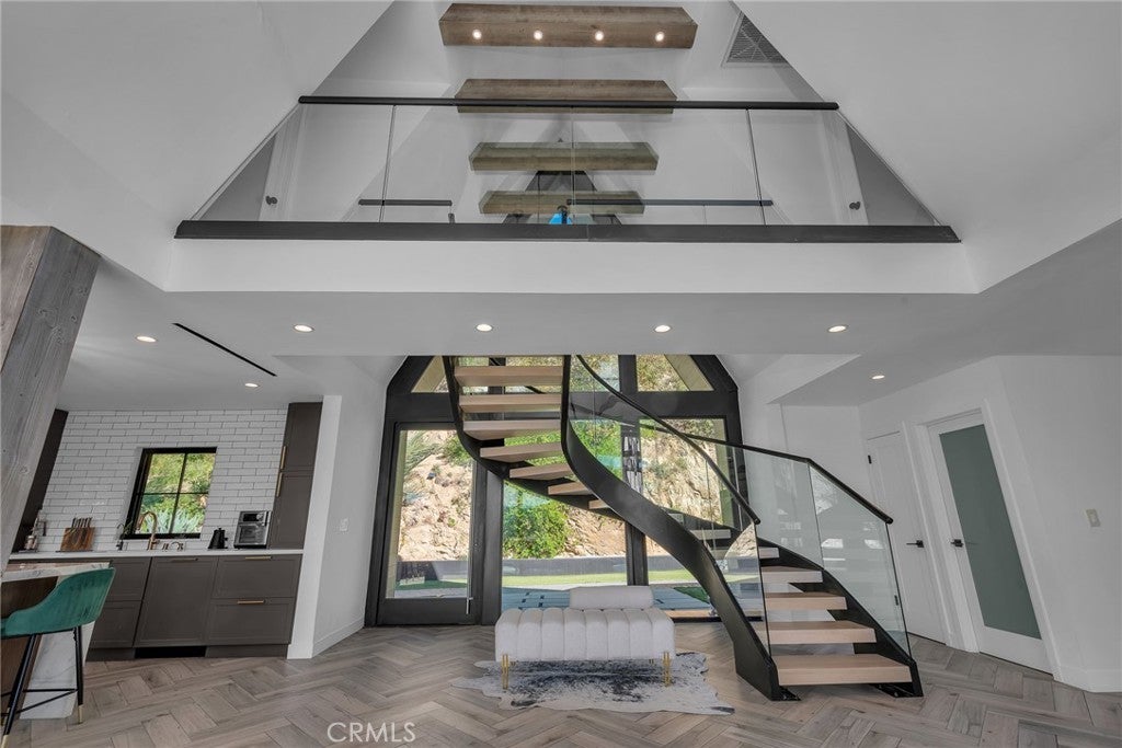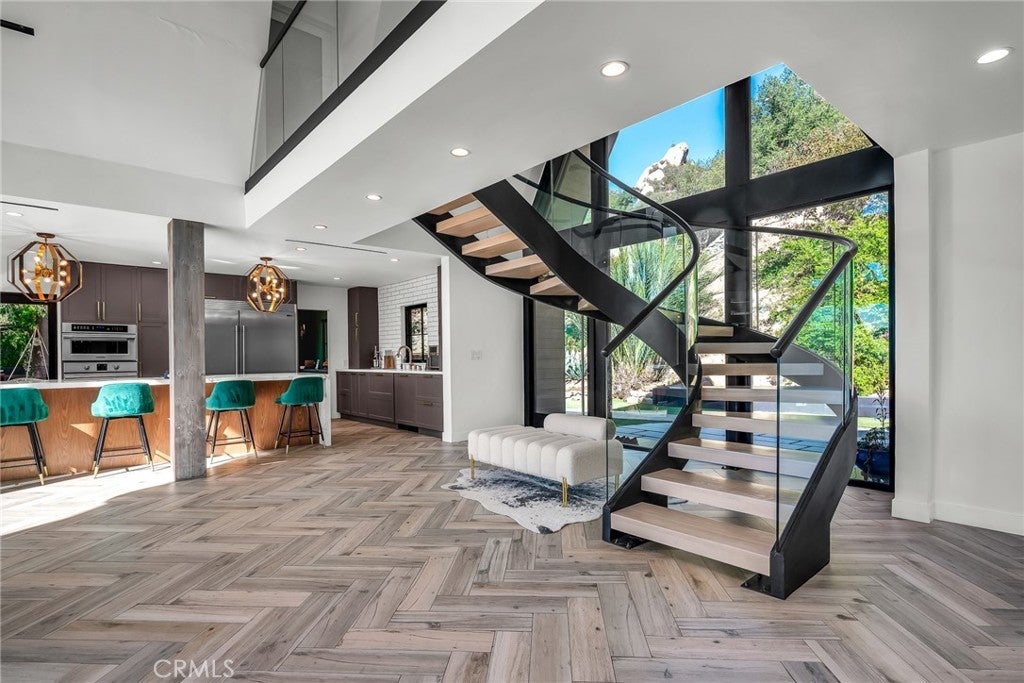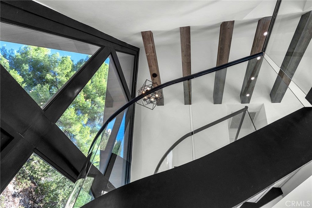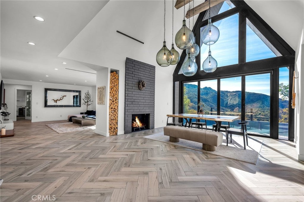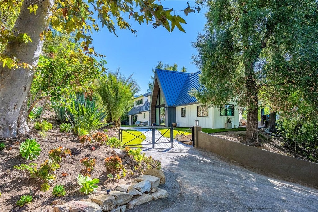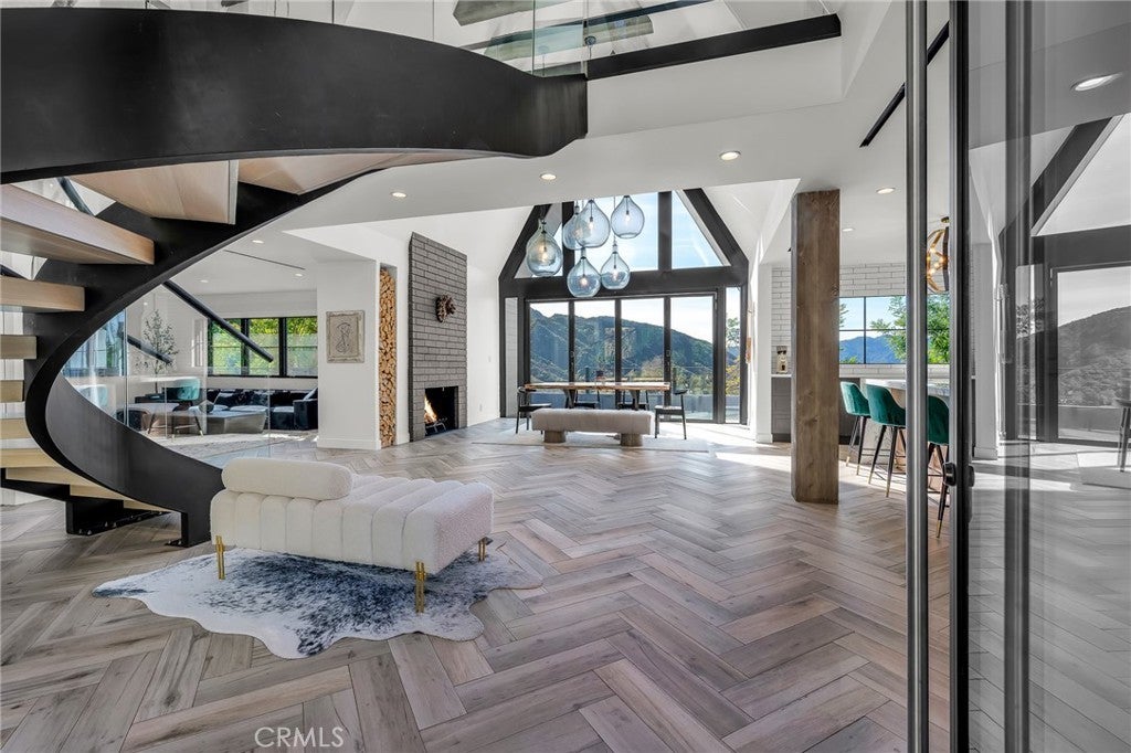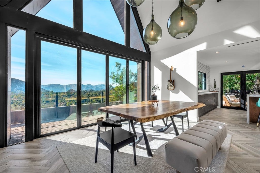 Perfect Home with Spectacular Views. A Truly Must See! Modern living at its finest in this stylish mountaintop estate with Private Gate. Peacefully located on a quiet and secluded 3.7 acres surrounded by nature in the tranquility of the Malibu Hills. This 4 bedroom, 3.5 bath plus office, modern farmhouse received a tasteful and timeless remodel in 2020 by acclaimed designer Jennifer Farrell featuring custom glass walls, a floating glass and steel staircase, herringbone floors, wood burning fireplace and a NanaWall that opens to panoramic views of the Santa Monica Mountains. The luxurious interior includes a gourmet kitchen with stainless steel appliances, Caesarstone and porcelain countertops, a walnut island, and a dedicated office with stunning views opening to a large wrap-around deck. Two elegantly appointed bedrooms, a full bathroom, powder, and a laundry room complete the downstairs. The upstairs includes a beautifully appointed guest suite and the primary wing which boasts custom closets, a coffee and wine bar, and Fleetwood glass doors that open to a private balcony with mesmerizing views. The primary bathroom is outfitted with separate vanities, an ultra-stylish wet room with a luxury 3-way shower, a soaking tub, and a skylight. This mountaintop estate is truly one of a kind. Home Gym included! Negotiable