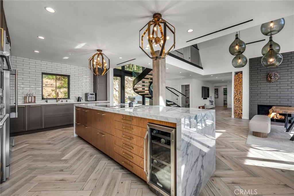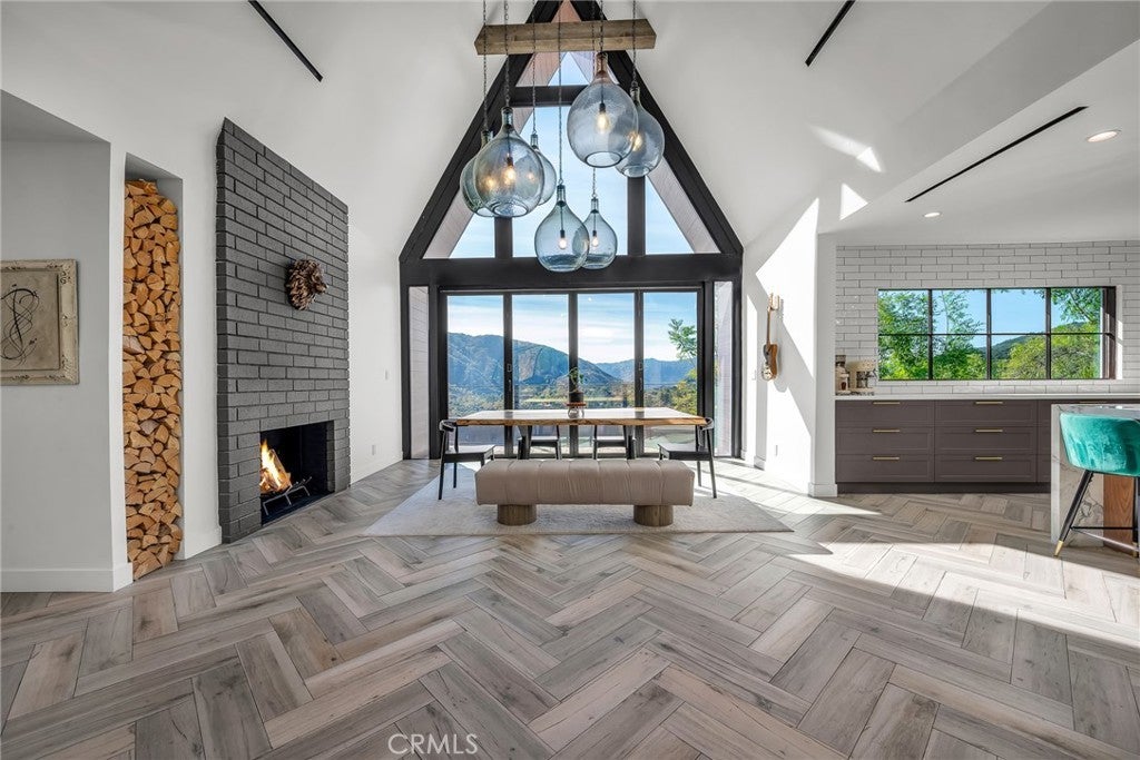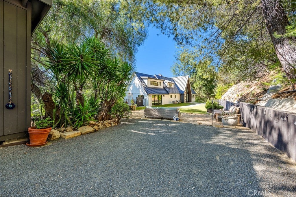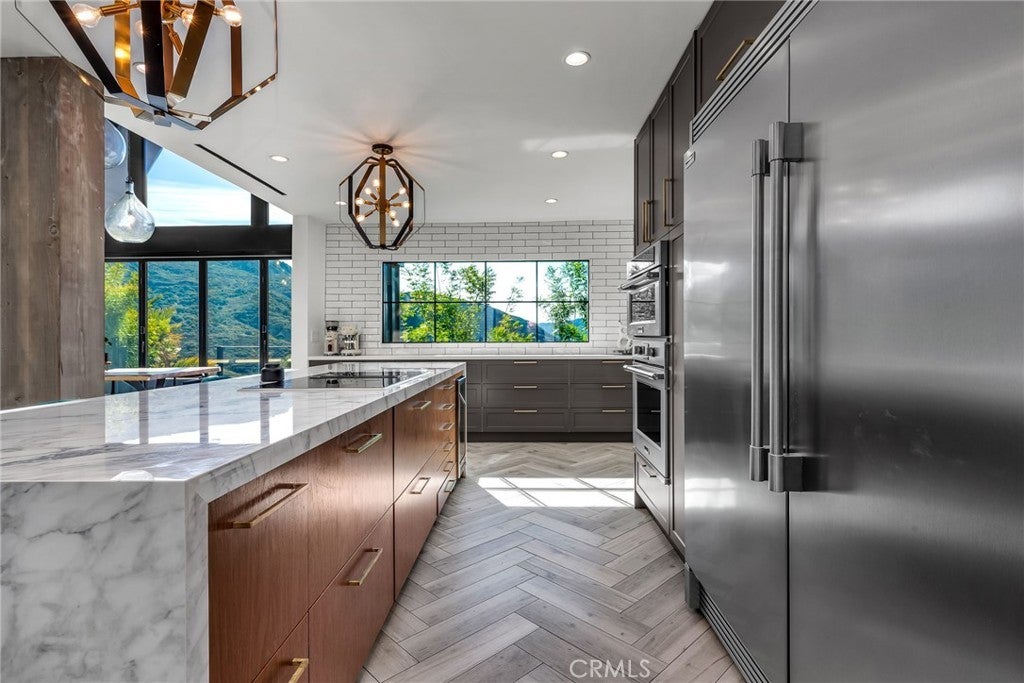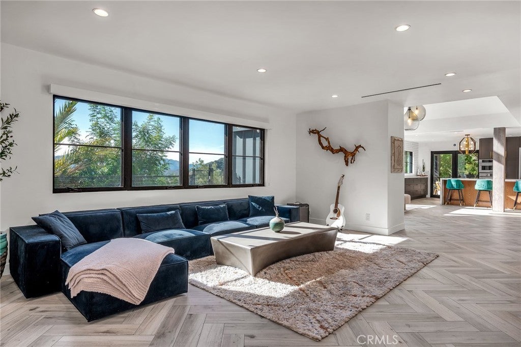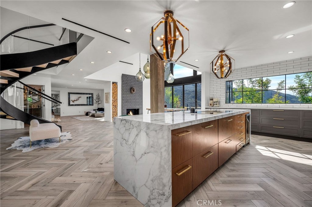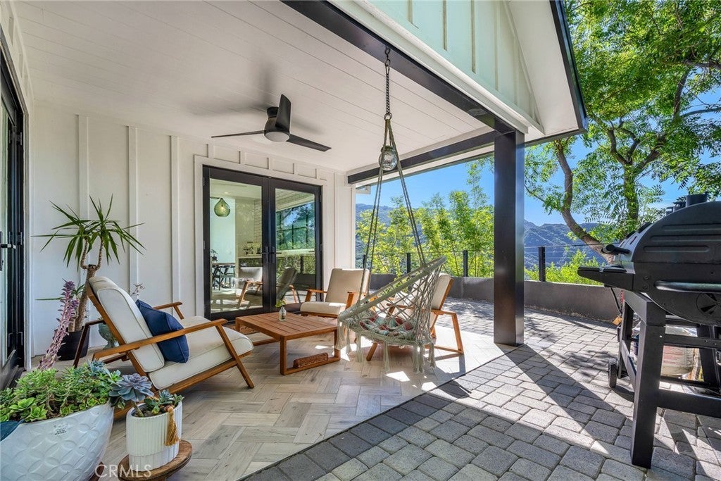 Perfect Home with Spectacular Views. A Truly Must See! Modern living at its finest in this stylish mountaintop estate with Private Gate. Peacefully located on a quiet and secluded 3.7 acres surrounded by nature in the tranquility of the Malibu Hills. This 4 bedroom, 3.5 bath plus office, modern farmhouse received a tasteful and timeless remodel in 2020 by acclaimed designer Jennifer Farrell featuring custom glass walls, a floating glass and steel staircase, herringbone floors, wood burning fireplace and a NanaWall that opens to panoramic views of the Santa Monica Mountains. The luxurious interior includes a gourmet kitchen with stainless steel appliances, Caesarstone and porcelain countertops, a walnut island, and a dedicated office with stunning views opening to a large wrap-around deck. Two elegantly appointed bedrooms, a full bathroom, powder, and a laundry room complete the downstairs. The upstairs includes a beautifully appointed guest suite and the primary wing which boasts custom closets, a coffee and wine bar, and Fleetwood glass doors that open to a private balcony with mesmerizing views. The primary bathroom is outfitted with separate vanities, an ultra-stylish wet room with a luxury 3-way shower, a soaking tub, and a skylight. This mountaintop estate is truly one of a kind. Home Gym included! Negotiable
