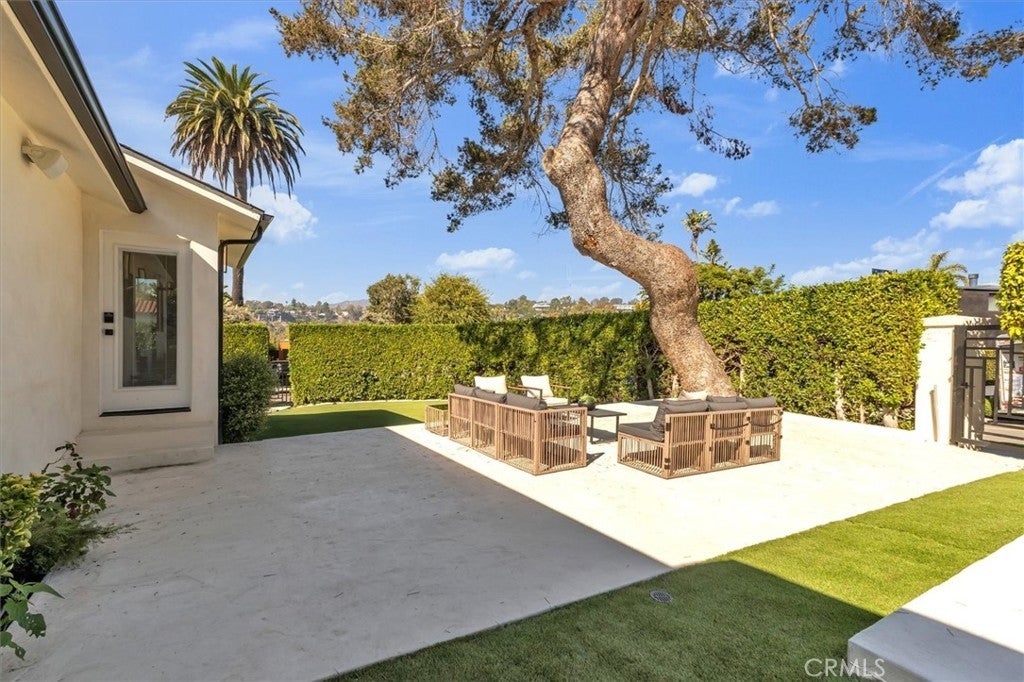 Embodying effortless coastal living, this beautifully reimagined corner-lot residence sits just moments from the sand in one of Santa Monica’s most coveted beachside enclaves. Enclosed by lush privacy hedges and surrounded by mature trees, the property offers tranquil outdoor spaces with an inviting front terrace and manicured lawn—all kissed by refreshing ocean breezes. Inside, sun-filled interiors reveal a sophisticated single-level layout with clean lines, wide-plank wood flooring, and expansive picture windows that frame natural light and greenery. The open main living area flows seamlessly into a contemporary chef’s kitchen and dining space—crafted for elevated daily living and effortless entertaining. The tranquil primary suite features a spa-inspired bathroom, while the property’s versatility is enhanced by a private detached casita—ideal for a luxurious guest retreat or creative workspace. Situated within one of Santa Monica’s most desirable enclaves, residents enjoy proximity to Montana Avenue’s boutique shopping and cafés, the beach path, Rustic Canyon Park, and the Brentwood Country Mart. This residence masterfully blends privacy, modern design, and the timeless allure of the Santa Monica coastal lifestyle.