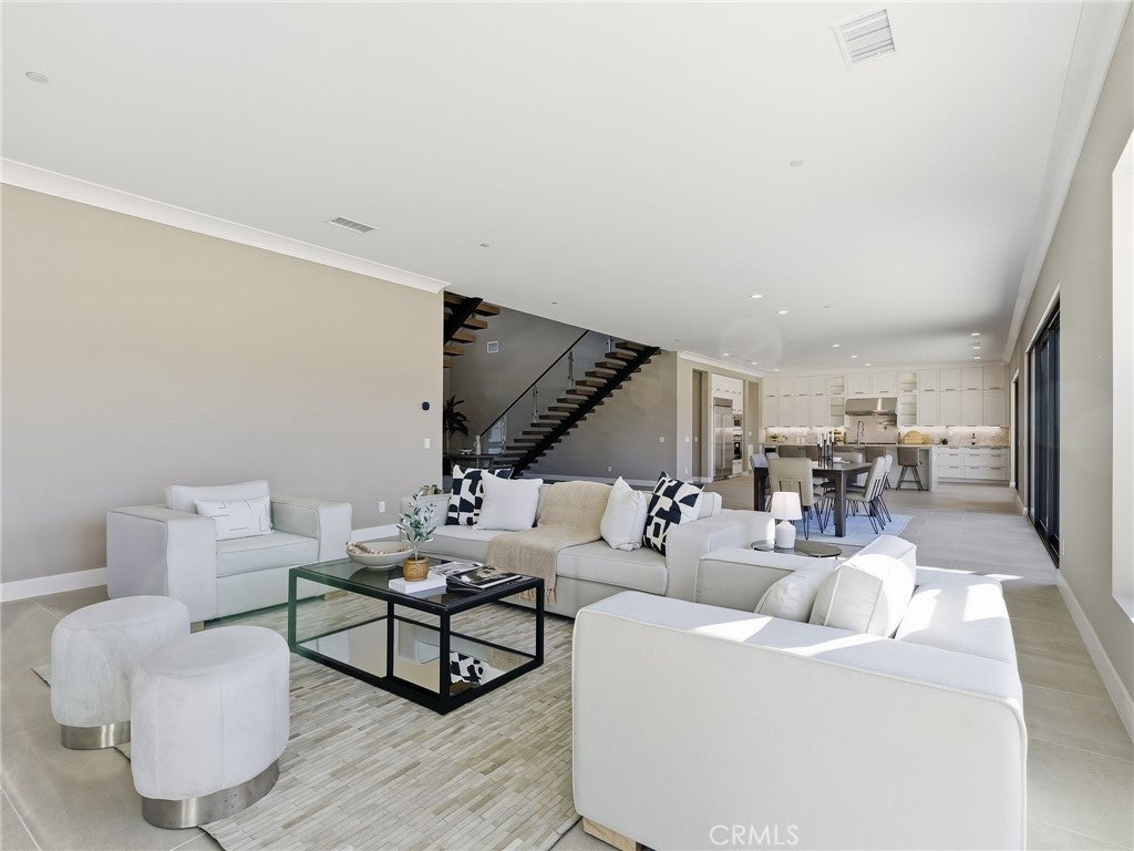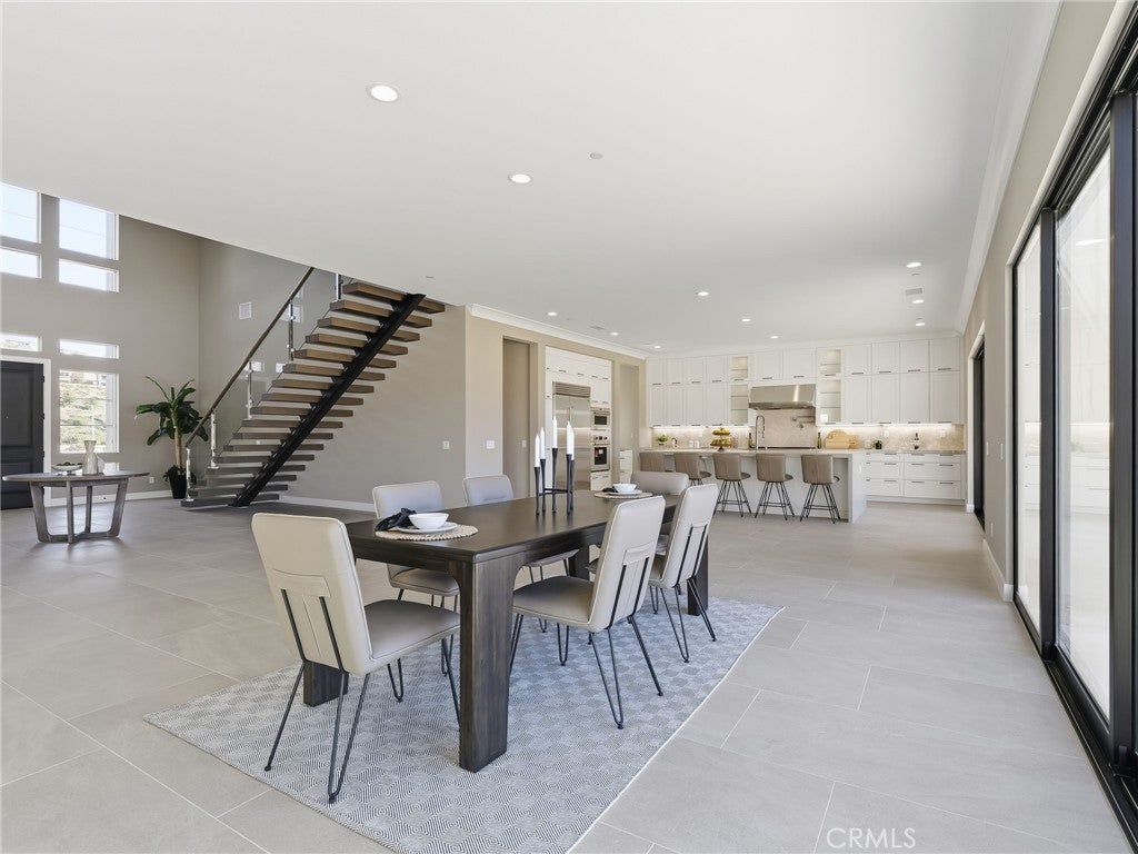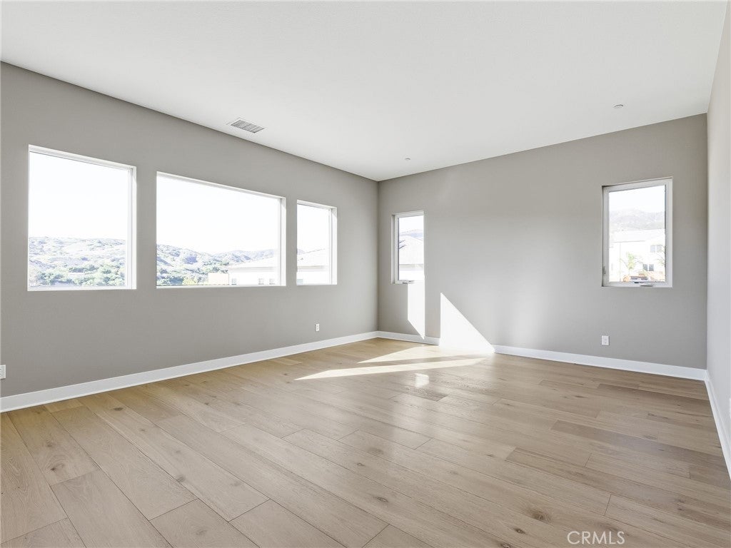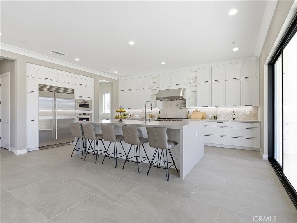 Welcome home to this exceptional model-like home by Toll Brothers in the final community in Porter Ranch! Last chance to own one of two last available Idylwild homesites at the Ridge at Bella Vista. Fully designer appointed features including the Idylwild's impressive, covered entry with double doors that opens to the soaring two-story foyer with dual floating staircase, revealing views to the two-story casual dining area with 16 by 8 multi stacked doors off the casual dining allowing that indoor/outdoor California living. The well-equipped gourmet kitchen is enhanced by a large center island with breakfast bar, including upgraded quartzite in kitchen perimeter, waterfall at kitchen island, Wolf and Sub-Zero Refrigerator and wine chiller, upgraded high reflective white paint craftsman style cabinets including our fresh furniture package option taking the cabinets in the kitchen all the way up to the ceiling, plenty of counter and cabinet space, thoughtful workspace, and sizable walk-in pantry. The marvelous primary bedroom suite is complete with an enormous walk-in closet, Owners Suite Deck and 15 by 8 multi stacked doors, peek-a-boo vistas facing west of peaceful vistas of the canyons and dreamy sunsets, deluxe primary bath with dual-sink vanity, fully upgraded tile floors and bathroom shower tile, large soaking tub, luxe shower, and private water closet. This homesite offers 48’ by 24’ porcelain tile flooring throughout with European oak hardwood floors in bedrooms and loft space. Crown molding throughout the entire home. One of the most unique homesites offering over 19,000 sq. ft of *flat pad, large enough to build your dream backyard. 3rd car garage converted to a flex space perfect for a home gym or game room. Additional highlights include a versatile flex space off the foyer, desirable first floor bedroom suite with walk-in closet and private full bath, convenient powder room and drop zone, centrally located laundry, and additional storage. This home offers 2 flex spaces and additional loft. One of the largest living areas and flat pads at the Ridge community. No designer or structural options have been spared. Model like home. Must come to see for yourself!