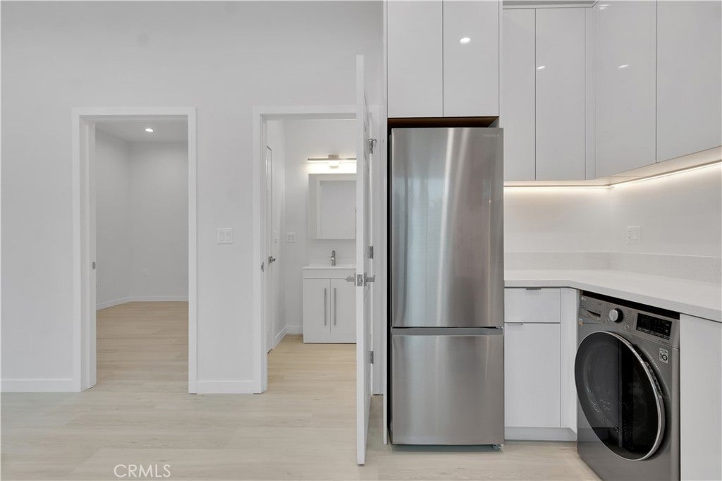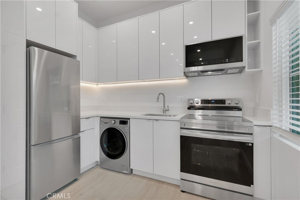 This brand-new ADU blends modern comfort with upscale design in every detail. Discover this newly built 1-bedroom, 1-bathroom ADU offering modern luxury in a compact, highly efficient design. Thoughtfully crafted with premium finishes throughout, this home features an open concept living area filled with natural light, high ceilings, and sleek contemporary details. The gourmet kitchen is equipped with top-of-the-line appliances, including a stainless-steel refrigerator, range, dishwasher, and microwave. The washer/dryer—all chosen for performance, style, and energy efficiency. The spacious bedroom provides a serene retreat with a walk-in closet, while the elegant bathroom showcases designer tile and a luxurious walk-in shower. With energy-efficient heating and cooling, recessed LED lighting, and high-quality windows for comfort and privacy, this ADU offers both sophistication and practicality. The is a plenty of parking on the street, easy to park. The water and power meters are separate for the unit