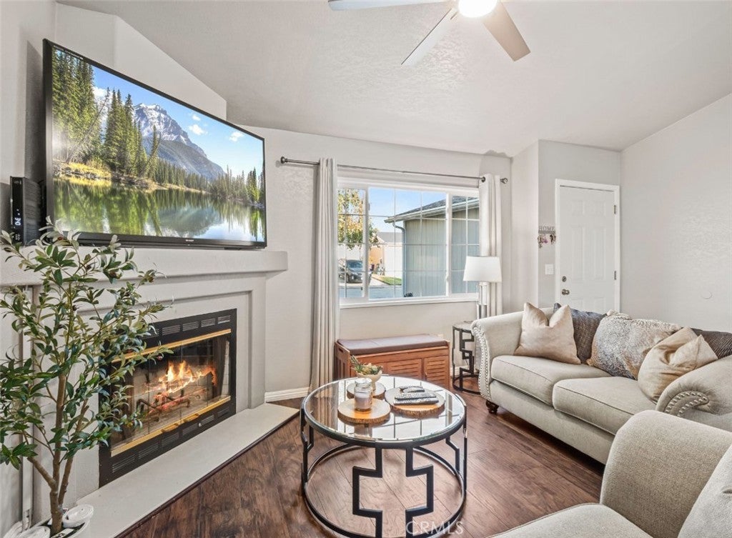 Welcome to this beautifully updated two-bedroom, two-bathroom home with an attached two-car garage, located in the desirable gated community of Canyon View Estates. Enjoy a bright and open floor plan featuring a spacious living room with vaulted ceilings and a cozy fireplace, perfect for relaxing or entertaining guests. The living area seamlessly flows into a spacious dining room and an updated kitchen, which boasts a sizable center island with quartz countertops, a quartz peninsula with a striking waterfall edge, a farmhouse sink, chic ceramic tile backsplash, upgraded cabinets, and new stainless steel stove and dishwasher. Acoustic paneling accents the peninsula for added style. Ceiling fans are found throughout, and wood laminate flooring adds warmth and elegance to the common areas. The home is enhanced by all-new double-pane windows, including both sliding glass doors that open to the beautiful backyard. The outdoor space features two charming gazebos with lighting, ideal for gatherings or quiet evenings under the stars. The generously sized primary suite offers a large bedroom, a master bath with an inviting oval soaking tub, and ample storage throughout. The attached garage provides convenient direct access and plenty of additional storage space. Canyon View Estates offers an array of community amenities including 24/7 guarded security, two pools, two sport courts, two play areas, a clubhouse, and available RV storage. Enjoy close proximity to bike and walking paths, schools, shopping, Discovery Park, grocery stores, and convenient freeway access. Don’t miss the chance to own this spacious and beautifully maintained home in a vibrant and secure community!