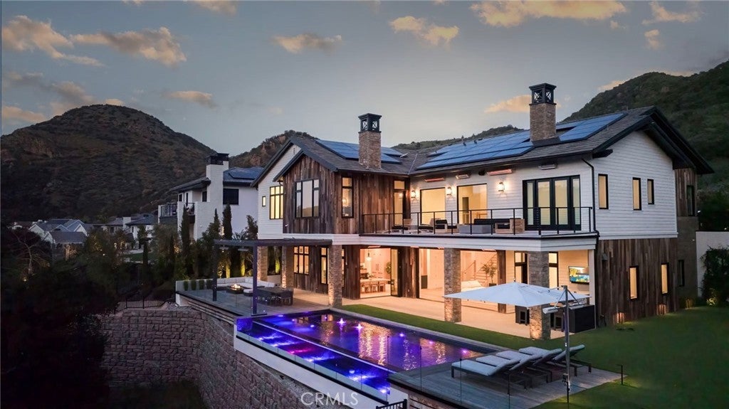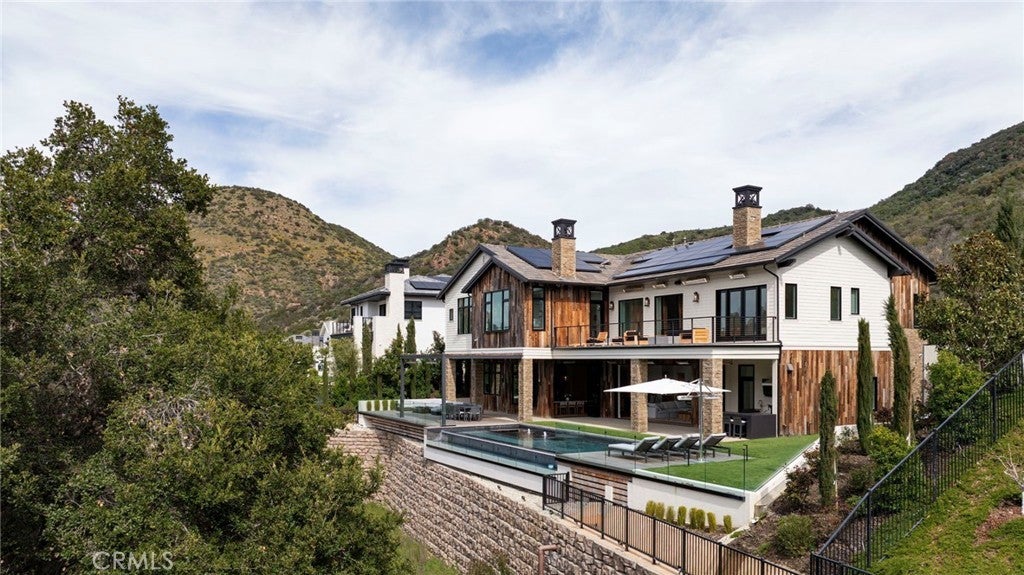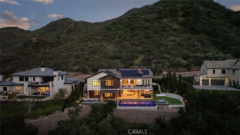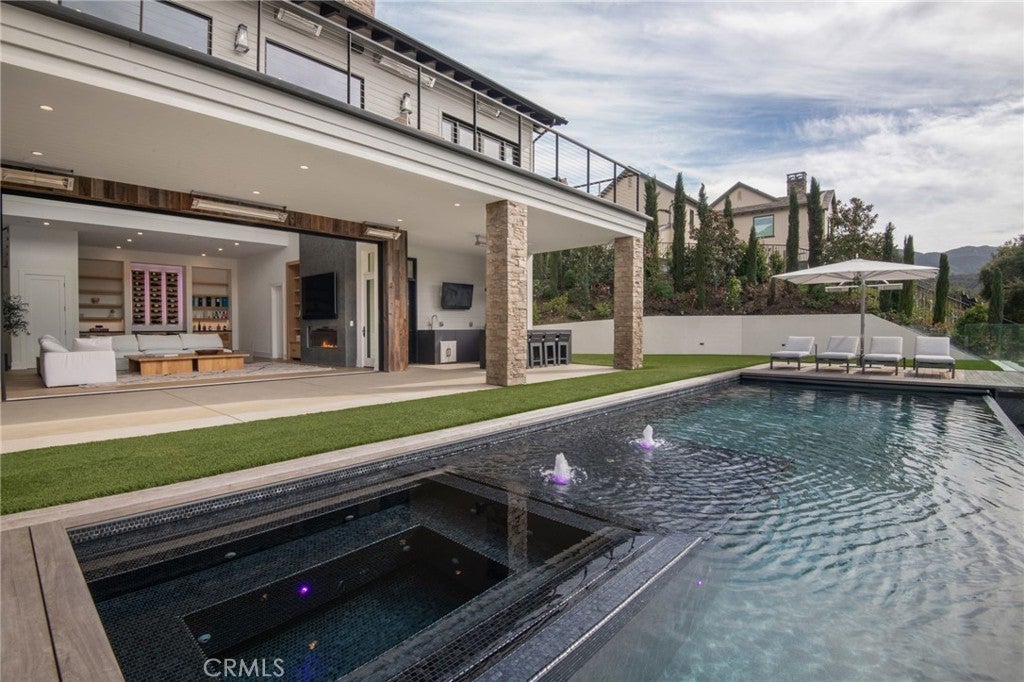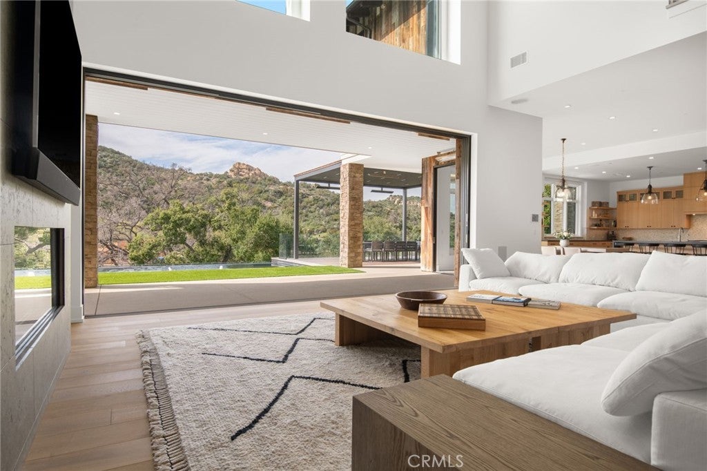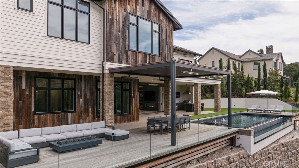 Welcome to The Oak Grove—a stylish, modern farmhouse retreat in the heart of the exclusive Lake Sherwood community. Set behind the guarded gates of Sherwood Country Club, this home delivers privacy, comfort, and a relaxed luxury lifestyle surrounded by beautiful mature oak trees, peaceful lake views, and lush golf course greens. Just minutes from The Promenade at Westlake Village, one of the most popular shopping and dining destinations in the area, you’ll enjoy easy access to local boutiques, restaurants, cafés, and everyday conveniences. Living here feels like having the best of nature and lifestyle right at your fingertips. Inside, the home features an airy split-level design with large, spacious rooms throughout. The chef's kitchen with Wolf appliances opens into the dining room and great room, creating the perfect setting for hosting friends or enjoying cozy nights in. Fleetwood sliding doors make indoor–outdoor living effortless, filling the home with natural light and inviting the outside in. Imported Brazilian white oak floors bring warmth and elegance to the space, while a striking Blue Cascais limestone fireplace and soaring 25-foot ceilings add personality and drama to the main living area. The primary suite feels like a private getaway with a spa-style bathroom and heated floors. Upstairs, two more oversized en-suite bedrooms and a convenient laundry room make daily living incredibly comfortable. A custom three-passenger elevator offers easy access between floors, and the lower-level flex space is perfect for a home theater, gym, office, or playroom, whatever fits your lifestyle. This home is fully equipped with smart-home technology controlling lighting, climate, music, and security. Automated blackout shades, a full-home water filtration system, and energy-efficient features, including Tesla Powerwalls and tankless water heaters, add to the comfort and convenience. The backyard is made for fun and relaxation. A widened infinity-edge caisson pool (one of the largest in the neighborhood), spa, tanning ledge, built-in BBQ center, and a cozy pergola with remote-controlled heaters create an ideal setting for entertaining or winding down after a long day. The Oak Grove is more than a home, it’s a lifestyle. Stylish, comfortable, perfectly located, and designed for both fun and relaxation, this is where every day feels a little more enjoyable.