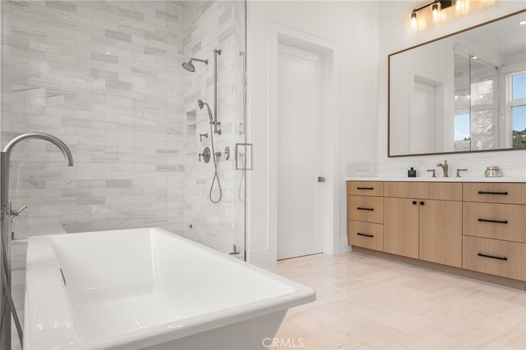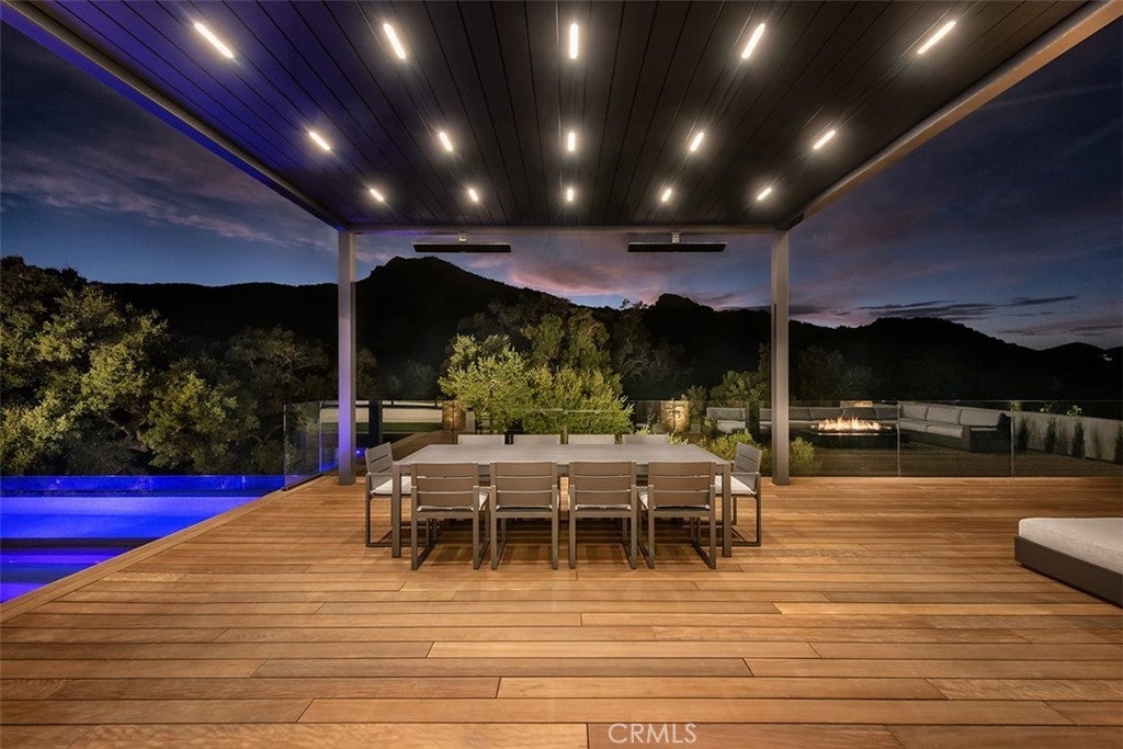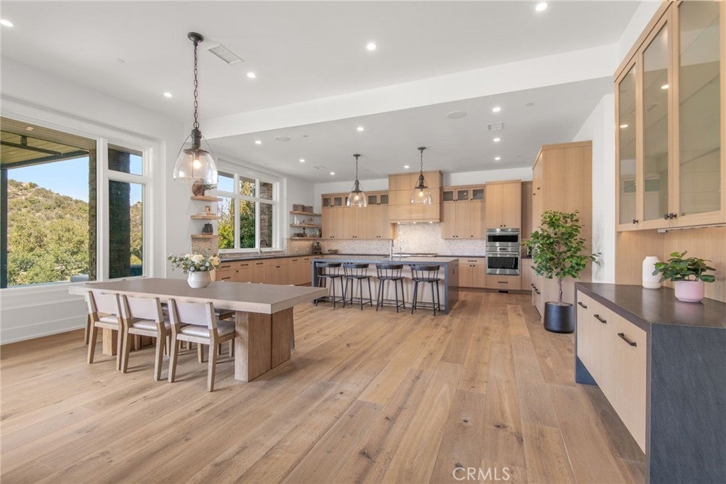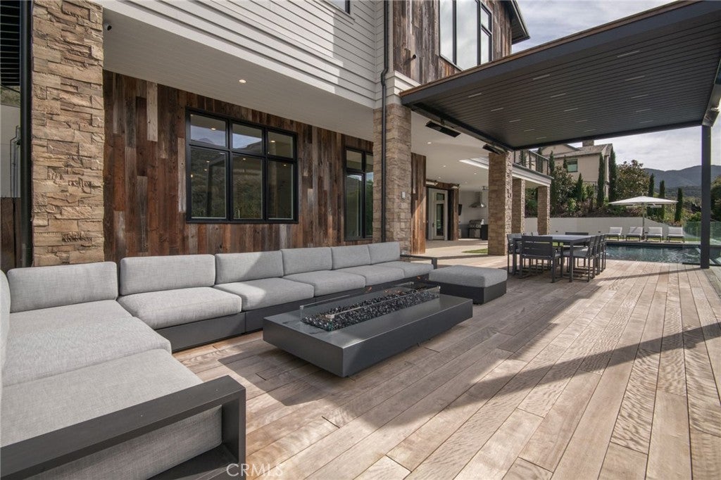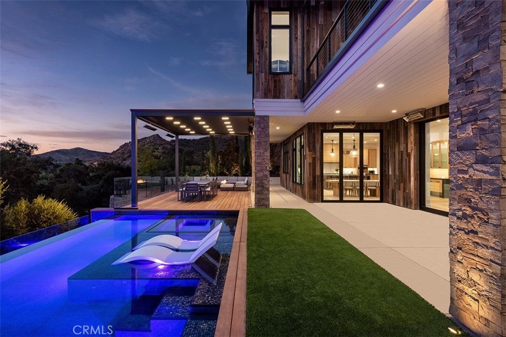 Welcome to The Oak Grove—a stylish, modern farmhouse retreat in the heart of the exclusive Lake Sherwood community. Set behind the guarded gates of Sherwood Country Club, this home delivers privacy, comfort, and a relaxed luxury lifestyle surrounded by beautiful mature oak trees, peaceful lake views, and lush golf course greens. Just minutes from The Promenade at Westlake Village, one of the most popular shopping and dining destinations in the area, you’ll enjoy easy access to local boutiques, restaurants, cafés, and everyday conveniences. Living here feels like having the best of nature and lifestyle right at your fingertips. Inside, the home features an airy split-level design with large, spacious rooms throughout. The chef's kitchen with Wolf appliances opens into the dining room and great room, creating the perfect setting for hosting friends or enjoying cozy nights in. Fleetwood sliding doors make indoor–outdoor living effortless, filling the home with natural light and inviting the outside in. Imported Brazilian white oak floors bring warmth and elegance to the space, while a striking Blue Cascais limestone fireplace and soaring 25-foot ceilings add personality and drama to the main living area. The primary suite feels like a private getaway with a spa-style bathroom and heated floors. Upstairs, two more oversized en-suite bedrooms and a convenient laundry room make daily living incredibly comfortable. A custom three-passenger elevator offers easy access between floors, and the lower-level flex space is perfect for a home theater, gym, office, or playroom, whatever fits your lifestyle. This home is fully equipped with smart-home technology controlling lighting, climate, music, and security. Automated blackout shades, a full-home water filtration system, and energy-efficient features, including Tesla Powerwalls and tankless water heaters, add to the comfort and convenience. The backyard is made for fun and relaxation. A widened infinity-edge caisson pool (one of the largest in the neighborhood), spa, tanning ledge, built-in BBQ center, and a cozy pergola with remote-controlled heaters create an ideal setting for entertaining or winding down after a long day. The Oak Grove is more than a home, it’s a lifestyle. Stylish, comfortable, perfectly located, and designed for both fun and relaxation, this is where every day feels a little more enjoyable.