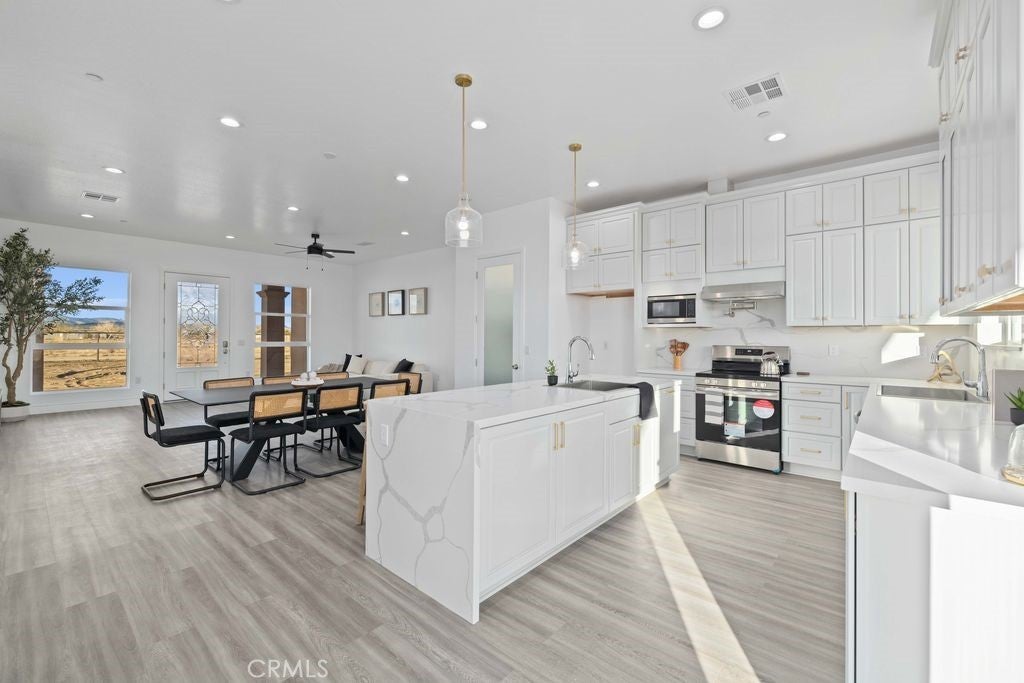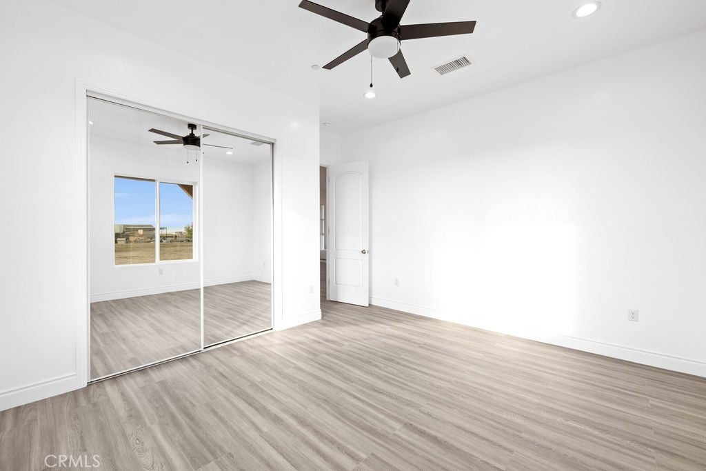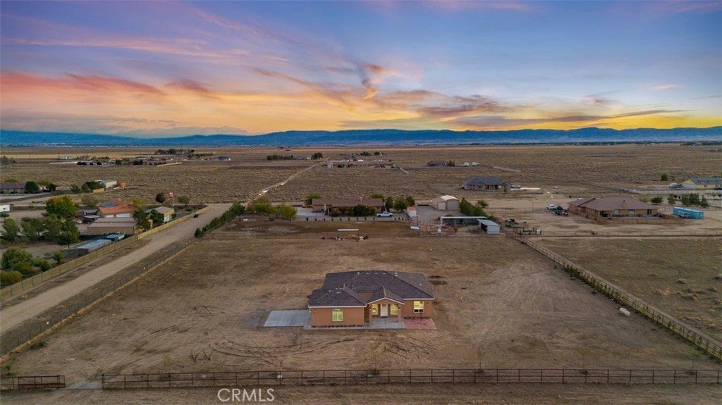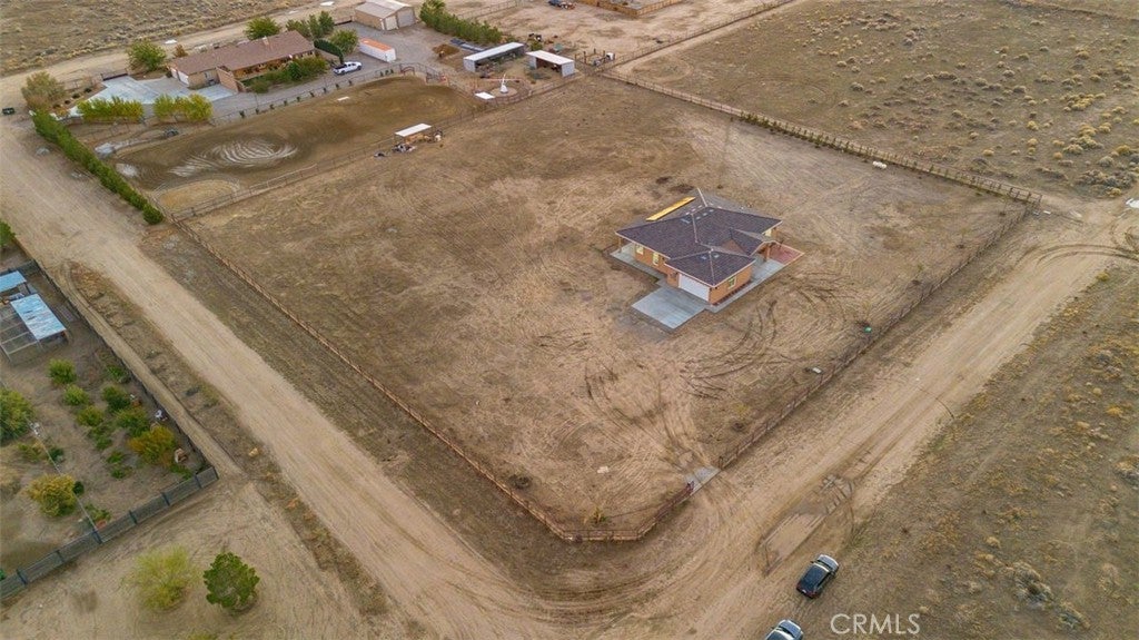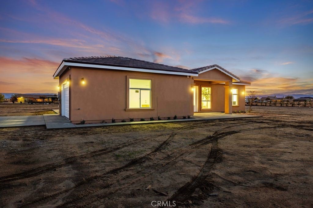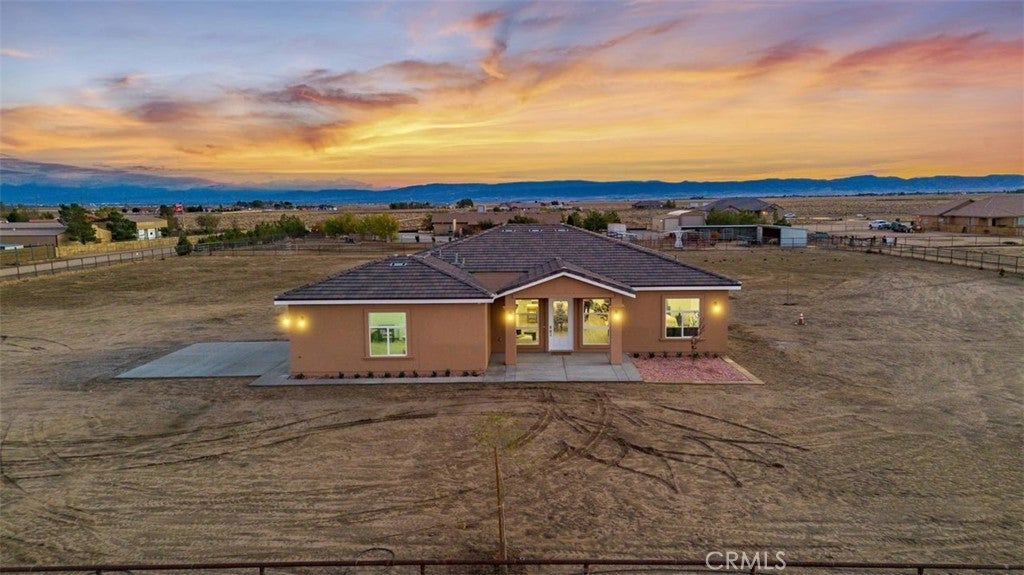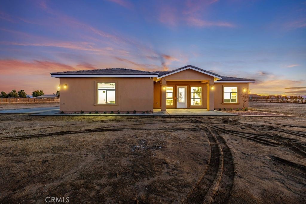 Brand-new 2025 construction in highly desirable Antelope Acres! This stunning 1,833 sq. ft. home sits on 2.5 fully fenced acres and offers modern comfort, open space, and high-end design throughout. Featuring three spacious bedrooms and two beautifully finished bathrooms, this home is filled with natural light thanks to oversized windows and soaring 10-foot ceilings with 8-foot doors. The gorgeous kitchen is a true standout, showcasing waterfall countertops, abundant cabinetry, two sinks—a full kitchen sink plus a convenient prep sink—and a bright, open layout perfect for cooking and entertaining. Oversized windows bring in amazing natural light, highlighting every detail. Enjoy the modern touches throughout the home, including recessed lighting, ceiling fans, and paid solar for energy efficiency. The large master suite offers an enormous walk-in closet and peaceful views of the property. At the back of the home, a full-length covered patio with ceiling fans spans the entire width—perfect for relaxing, hosting, or enjoying the quiet desert evenings. The property is fully fenced with a gated entrance and is located within the Sundale Mutual Water District. A perfect blend of modern design, quality construction, and serene country living—this home truly has it all.