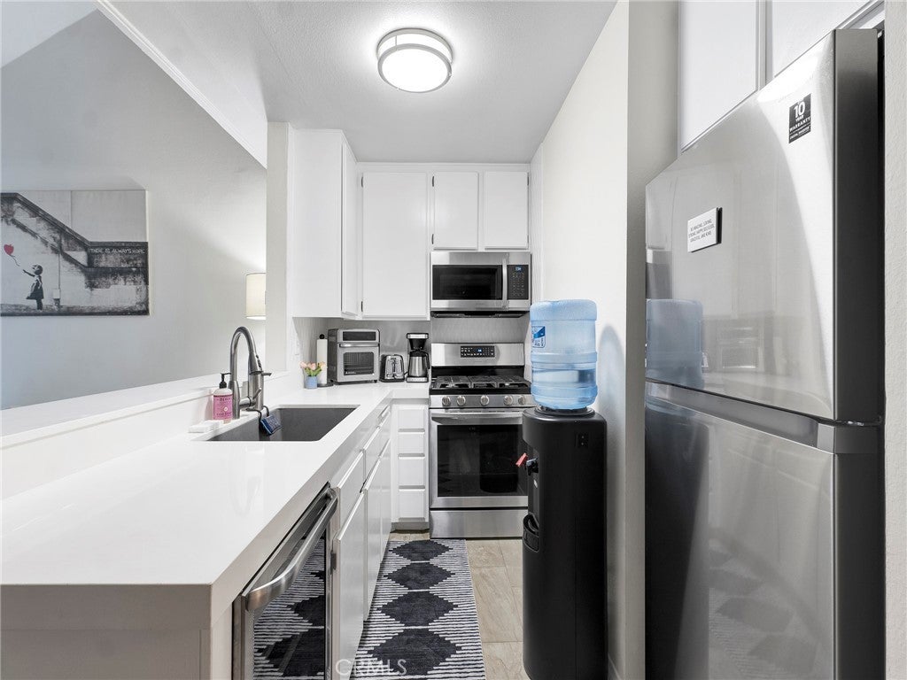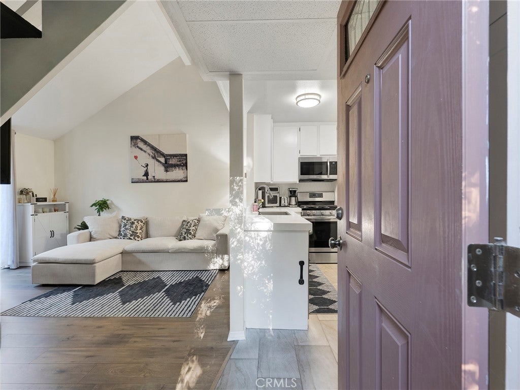 Welcome to Canoga Lakes! This charming Condo offers a tranquil, resort-like living experience with serene lake views, lush landscaping, and towering trees. Nestled within a peaceful community, enjoy the calming sights and sounds of waterfalls, streams, and wildlife, including ducks, turtles, and koi fish. The expansive grounds feature two sparkling pools, a spa, tennis courts, a recreation room, and a fitness center, offering a variety of amenities to enhance your lifestyle. This spacious 1-bedroom, 1-bath condo, features vaulted ceilings with an extra large loft. The living room opens to an extended patio overlooking the pool, providing the perfect space to relax and enjoy the serene surroundings. The unit is updated with newer flooring, updated kitchen, stainless steel appliances, including a stove, dishwasher, wine fridge, Updated Bathroom, Other notable features: a large attic for extra storage, and an in-unit washer/dryer. Located within walking distance of shopping, dining, and the Warner Center business district, this condo offers the perfect balance of peaceful living and convenience. One assigned parking spot is included. Come experience the relaxing atmosphere of Canoga Lakes, a place you'll love to call home!