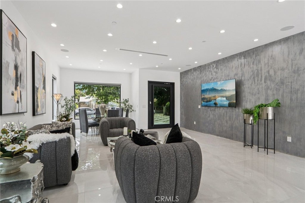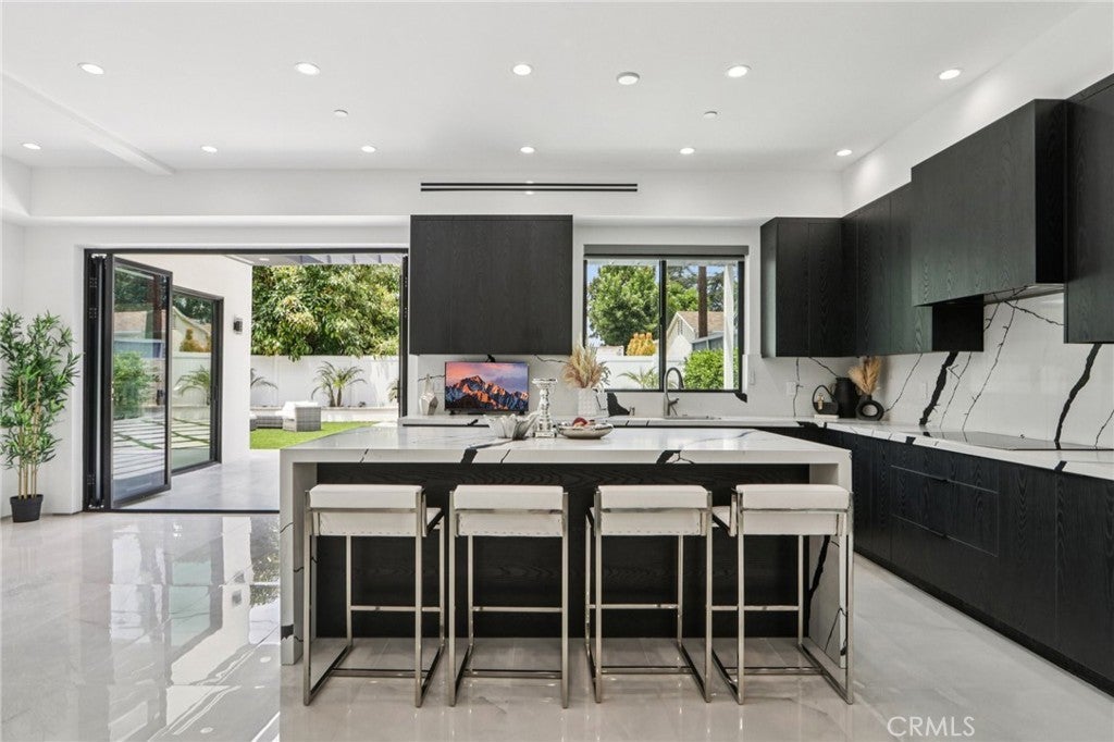 Burbank Show Stopper!!! True definition of Modern Elegance in every corner of this home inside & out. Walk in through the wide custom glass door and be amazed by the absolute beauty this Stunner has to offer. Just completed in (June 2025) with entertainers open floor plan featuring 4 bedrooms and 4.5 luxurious baths, large living room with beautiful large tile floors opens to the one of a kind slick & modern custom chef's kitchen with a huge center island and built-in appliances, high ceilings and recessed lighting throughout. The primary bedroom features a large private balcony, en-suite luxe bath with dual sink, floor to ceiling designer tile and a huge shower. Additional highlights include glass stair railings, designer interior doors, built-in surround sound, electric blinds, custom Italian accent wall finishes, engineered wood flooring upstairs, built-in security cameras, smooth stucco exterior, and elegant gold brass fixtures throughout. Large private back yard with patio and space for pool and entertainment. The curb appeal is off the chart, this home is truly unforgettable. Words and pictures simply don’t do it justice. This is one of those MUST SEE homes I promise there won't be any regrets.
