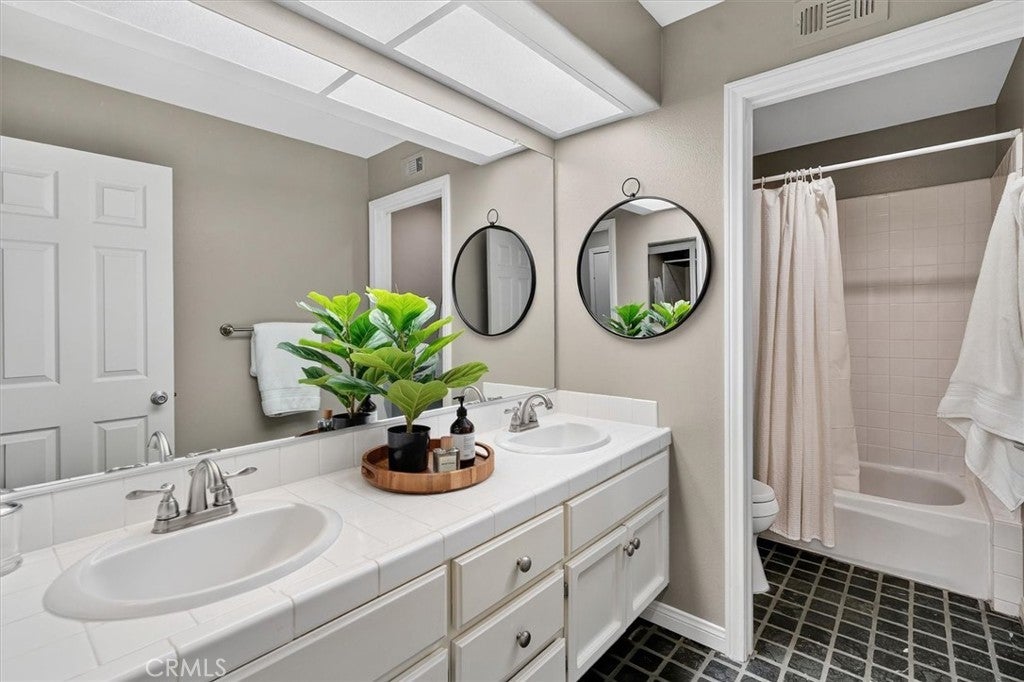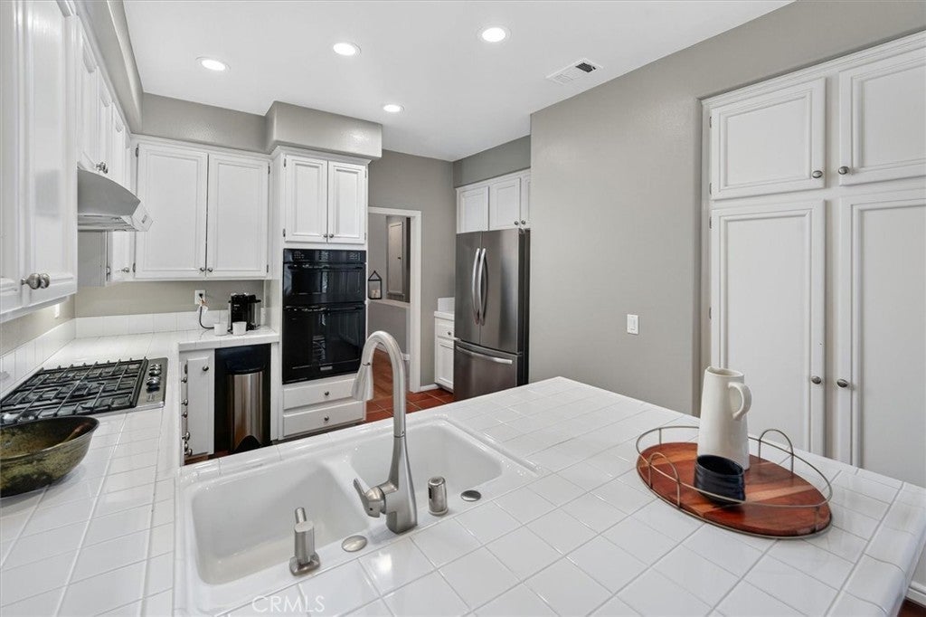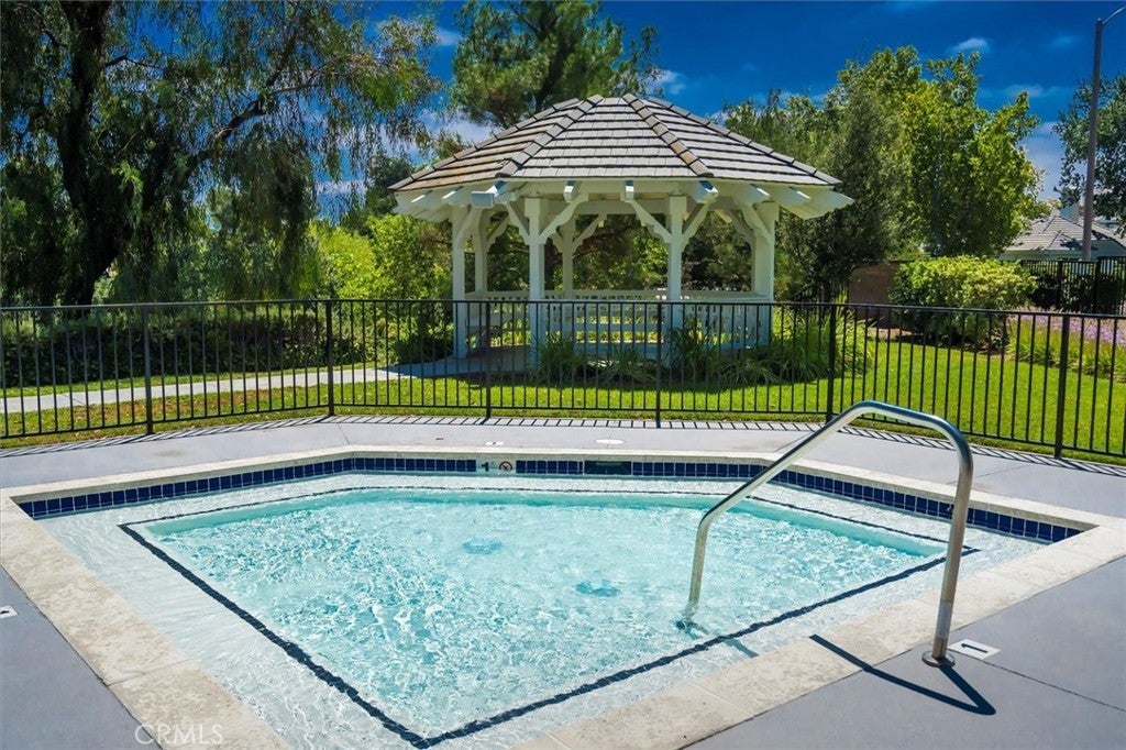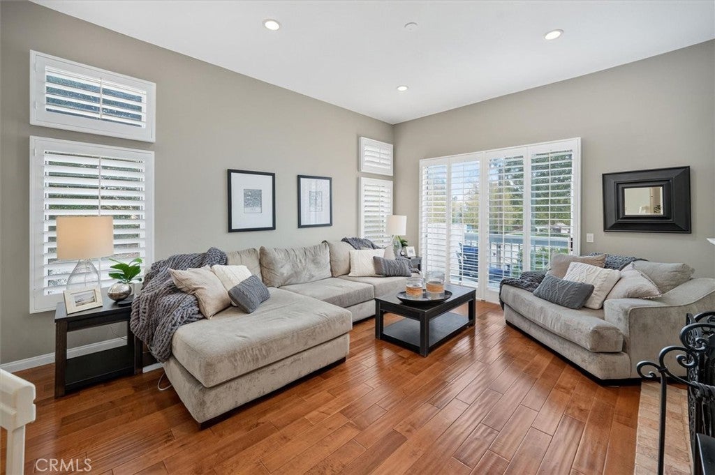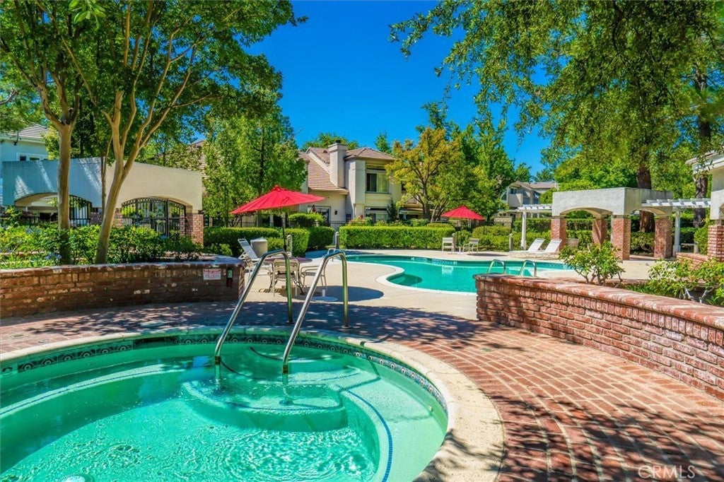 Welcome to this beautifully maintained 3-bedroom, 2-bathroom residence located in the prestigious and securely gated Valencia Summit neighborhood—one of Valencia’s most sought-after communities renowned for its serene atmosphere, mature landscaping, and abundant amenities. This charming home offers a wonderful blend of comfort, style, and functionality, making it an exceptional opportunity for those seeking a move-in-ready property in the heart of town. Step inside to a warm and inviting living room featuring a cozy fireplace, making it ideal for quiet evenings or gatherings with friends and family. Sliding doors open to a private balcony, allowing natural light to fill the room and creating an effortless indoor-outdoor flow. The bright and clean kitchen features white cabinetry, stainless steel appliances, and a refrigerator that is included. Ample counter space and storage make meal preparation enjoyable. The spacious primary suite is a peaceful retreat, complete with sliding doors that lead directly to the backyard, offering easy access to morning coffee on the covered patio or quiet evenings outdoors. The primary bathroom is thoughtfully designed with double sinks, a separate shower, and a relaxing soaking tub—perfect for unwinding at the end of the day. Two additional well-sized bedrooms and a full secondary bathroom provide flexibility for family, guests, or a dedicated home office. This home also features a direct-access two-car garage where the washer and dryer are included for added convenience. Throughout the home, upgraded wood floors and shutters create a unified and polished aesthetic. The backyard is neatly landscaped and offers a peaceful, private setting with a covered patio—ideal for outdoor dining, entertaining, or simply enjoying the California sunshine. Residents of the Valencia Summit community enjoy access to an impressive selection of amenities, including sparkling swimming pools, tennis courts, pickleball courts, lush walking paths, a clubhouse, and a beautiful community park. This neighborhood is known for its scenic surroundings, well-maintained grounds, and welcoming atmosphere. Conveniently located in the heart of Valencia, this home is just minutes from shopping, dining, award-winning schools, and easy freeway access, making daily commuting and weekend outings a breeze. Offering the perfect combination of location, lifestyle, and comfort, this exceptional property is ready to welcome its next owner.