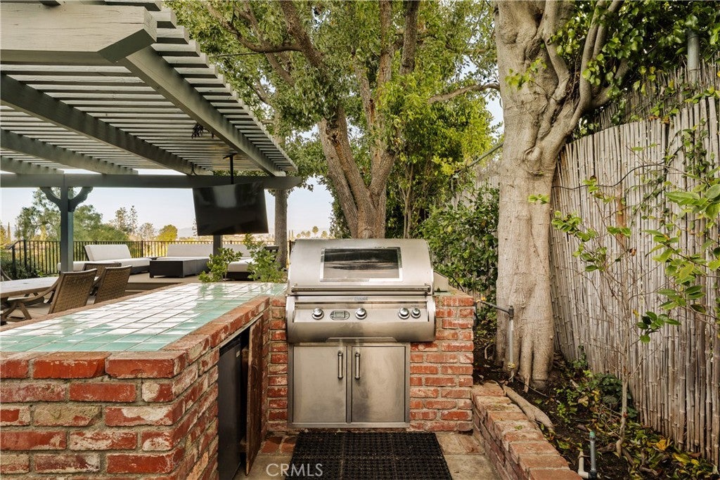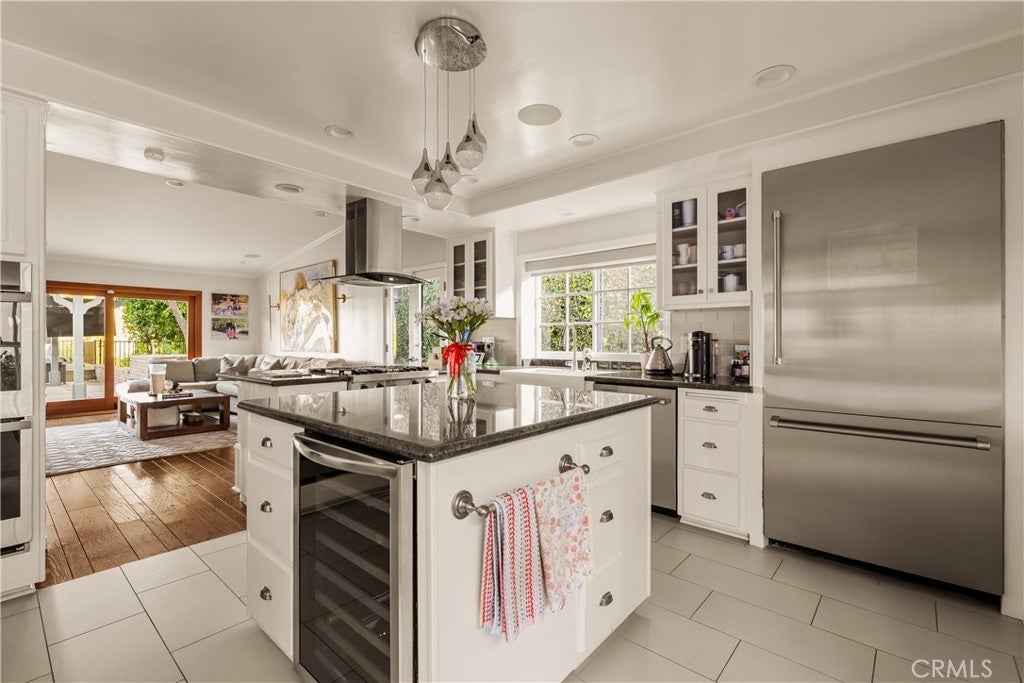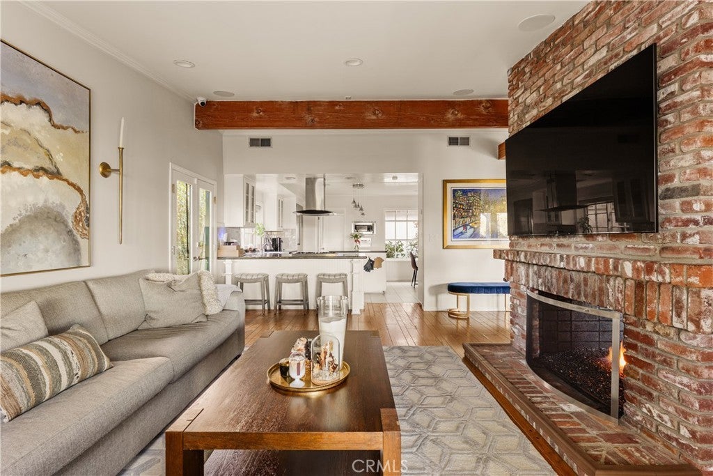 Stunning single-level 4-bedroom, 3.5-bath home offering approximately 3,000 square feet of refined, comfortable living space, ideally situated south of Ventura Blvd on a quiet Woodland Hills cul-de-sac. Filled with natural light and designed for both warmth and functionality, this private residence features vaulted wood-beam ceilings, recessed lighting, built-in speakers, and a charming fireplace anchoring the spacious living and dining areas. The formal dining room flows seamlessly into the family room and kitchen, creating an effortless layout perfect for everyday living and elevated entertaining. The generous island kitchen serves as the heart of the home, offering excellent workspace and storage with granite counters, stainless steel appliances, a Thermador refrigerator, Viking range, wine cooler, and new double ovens — plus a cozy breakfast area overlooking the backyard. The spacious primary suite is a peaceful retreat, while a versatile in-law suite offers a private entrance, walk-in closet, sitting area, convenient kitchenette, and its own en-suite bath with dual vanities and a marble walk-in shower, creating a spa-like experience. The backyard is an entertainer’s paradise with serene views, a sparkling saltwater pebble-tech pool and spa (updated with new tile and pavers), a pergola, a built-in BBQ with refrigerator, and a custom deck designed to capture beautiful mountain vistas. Located minutes from Warner Center, Calabasas shopping and dining, and highly sought-after Woodland Hills Elementary Charter for Enriched Studies school district.