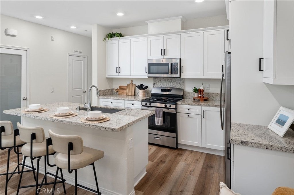 3 bedroom plus loft townhome with 2.5 bathrooms, 1490 sq ft, an attached 2 car garage, and an upstairs laundry room in the Concord at River Village community (a WARRANTABLE and VA approved complex with low HOA dues!) Built in 2020, this home features luxury vinyl plank flooring, plantation shutters, energy-efficient solar, a QuietCool whole house fan, tankless water heater, and an EV charging outlet. The first floor has an open concept layout with a large kitchen island, granite countertops, a spacious pantry, stainless steel appliances, dining area, living room, powder room, and direct garage access. The second floor includes the primary suite with dual sinks and a walk-in closet, two additional bedrooms, a full bathroom, a loft, and a dedicated laundry room. This home is located in a quiet section of the community with no front neighbors and a private patio. Community amenities include a resort-style pool, spa, clubhouse, BBQ area, and a tot lot. There is also a convenient neighborhood path that provides access to Central Park. Close proximity to shopping, dining, bike paths, and local conveniences. If you are searching for a newer Saugus home with modern upgrades, efficient systems, and a low-maintenance lifestyle, this is an excellent opportunity. Low HOA & mello roos. Near Emblem Elementary, Arroyo Seco JHS, and Saugus High School!