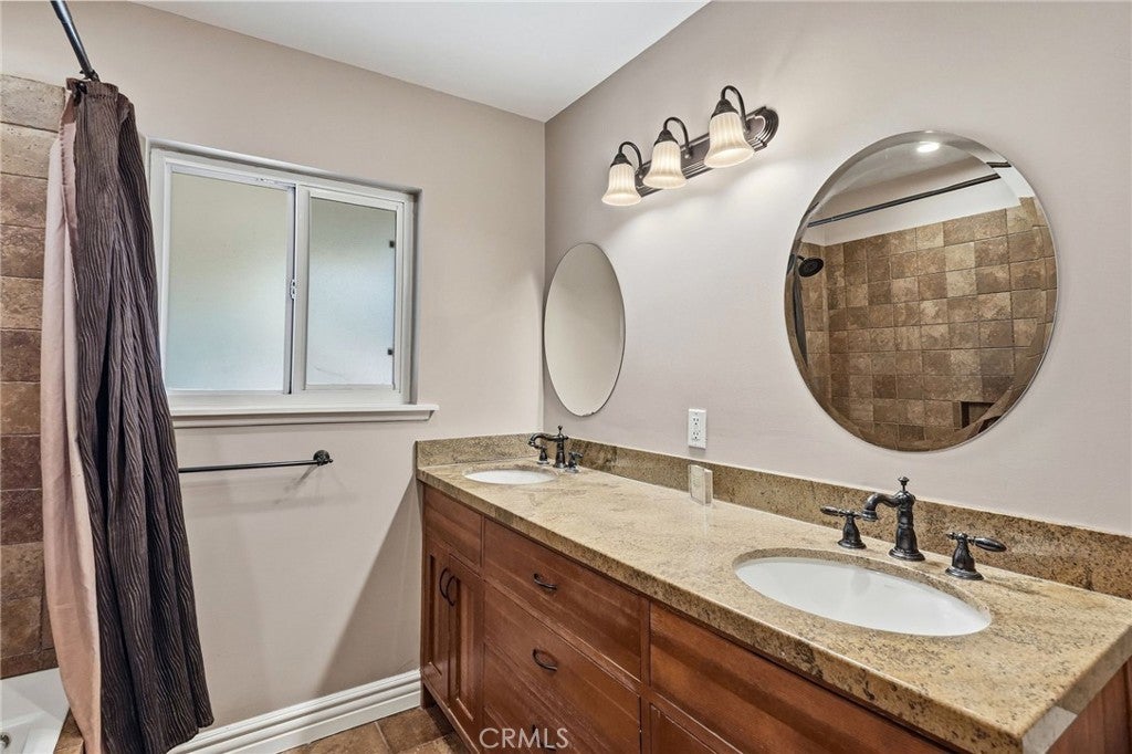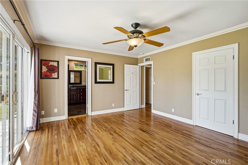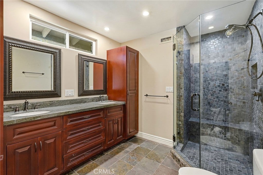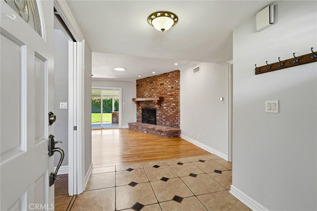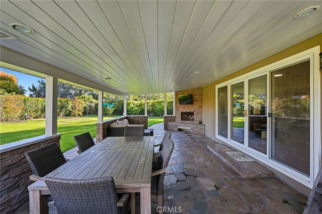 Discover the epitome of California living in this exceptional Chatsworth estate, nestled at the end of a serene cul-de-sac. This single-story residence welcomes you with impressive curb appeal, featuring a stamped concrete driveway and walkway leading to elegant double doors. Upon entry, you are greeted by an expansive living room framed by oversized sliding glass doors that seamlessly blend indoor and outdoor living. Solar tubes, crown molding and a beautifully detailed brick fireplace create an ambiance of warmth and sophistication. The gourmet chef’s kitchen is appointed with rich cabinetry, granite countertops, abundant storage and opens to a sunlit dining room overlooking the manicured front grounds. The luxurious primary suite is a private retreat, offering direct access to the backyard oasis, double closets and a spa-inspired ensuite showcasing custom cabinetry, vanity with double sinks and an oversized designer-tiled shower. Two spacious secondary bedrooms enjoy picturesque front-yard views and share a beautifully appointed full bathroom. A separate fourth bedroom, located in its own wing with direct access to an updated bathroom, provides an ideal space for guests, extended family, a home office, or a personal fitness studio. Additional interior amenities include a generous indoor laundry room and a walk-in pantry. The impeccably finished garage offers direct access, epoxy floors, an insulated door, recessed lighting, seperate A/C system and convenient pull-through capability. The amazing rear grounds provide the feeling of a private park designed for both intimate gatherings and grand entertaining, the outdoor space features a custom covered patio with a fireplace, multiple lounge and dining areas, lush mature landscaping, a custom sparkling pool and spa, a storage shed, fruit trees including avocado and plum, a chicken/rabbit coop and a stunning spacious lawn. This is truly an entertainer’s paradise. Modern upgrades and comforts include paid solar, an EV charger, hardwood flooring and an outdoor fireplace. Perfectly situated in a quiet and desirable enclave of Chatsworth, this remarkable estate offers effortless access to scenic hiking trails, dining, shopping and major freeways—blending luxury, privacy and convenience into one extraordinary offering.