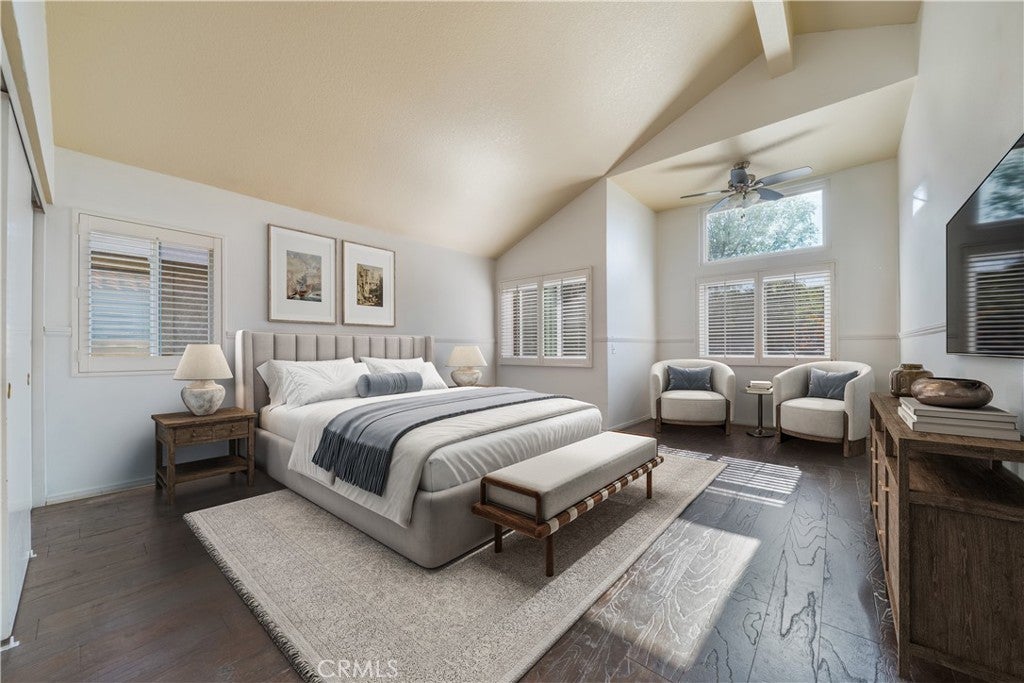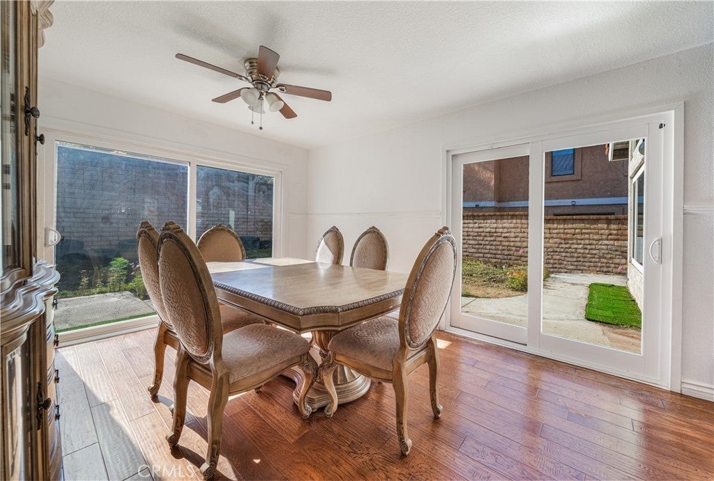 Located in a scenic pocket of San Dimas, this freshly painted two-story home captures the feeling of space and light from the moment you step inside. Vaulted ceilings, tall windows, and a skylight illuminate the main living areas, creating an uplifting atmosphere throughout. The family room, warmed by a fireplace, provides a comfortable gathering space, while the dining room features an updated 8-foot glass sliding door that opens to the backyard, extending the living experience outdoors. The backyard offers ample space to unwind, host gatherings, or simply enjoy the outdoors, with a fence and block wall surrounding the yard to provide privacy. The kitchen includes stainless steel appliances and connects easily to the dining and gathering spaces, making this home ideal for entertaining and everyday living. Upstairs, the primary suite offers vaulted ceilings, generous windows, walk-in closet, and an en-suite bath with dual vanities, soaking tub, and shower. The additional three bedrooms offer ample space and flexibility, perfect for family, guests, or a home office. A private horse stable is a standout benefit of this property, adding tremendous lifestyle appeal for equestrian enthusiasts who desire the convenience of keeping a horse at home while enjoying nearby riding areas and the community equestrian center. Community amenities further elevate the experience with pool and spa, clubhouse, green spaces, volleyball court, and RV parking, blending recreation and comfort. Located north of the 210 freeway and close to dining, shopping, and outdoor trails, this home offers a rare combination of comfort, natural light, and equestrian appeal. Homes with this balance of lifestyle, location, and amenities are seldom available—an exceptional opportunity that invites you to experience it firsthand.