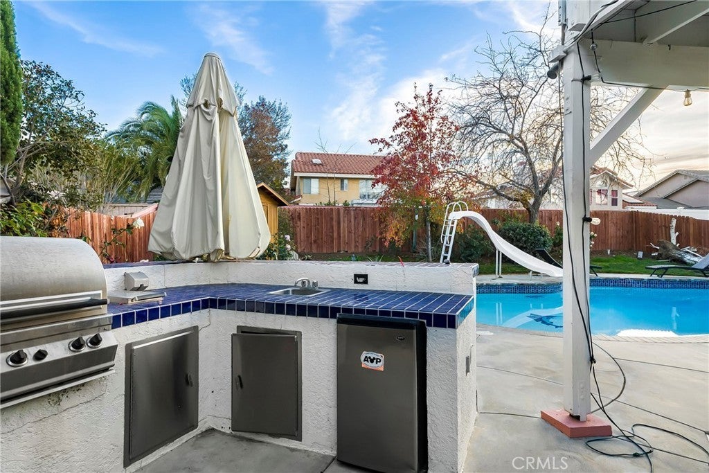 Beautifully situated on a quiet Westside cul-de-sac just moments from Rancho Vista Park and the Rancho Vista Golf Club, this stunning 5-bedroom, 3-bath, 3-car garage home offers sky-high ceilings, light-filled living spaces, and an open floorplan accented with natural hardwood floors inside. A grand foyer leads to the spacious living and dining areas, while the inviting family room features a warm wood-burning fireplace. The huge kitchen boasts stainless steel appliances, abundant counter and cabinet space, and a center island overlooking the resort-style backyard. Upstairs, the primary suite welcomes you with double-door entry, a soaking tub, walk-in closet, and separate shower, accompanied by three additional bedrooms and a full bath. The fifth bedroom and a ¾ bath are conveniently located downstairs—perfect for guests or a home office. Step outside to an entertainer’s dream yard complete with a sparkling pool featuring a slide and diving board, a full-length covered patio, a balcony, and a built-in BBQ. Reach out for a private viewing and make this stunning Rancho Vista property your next home.