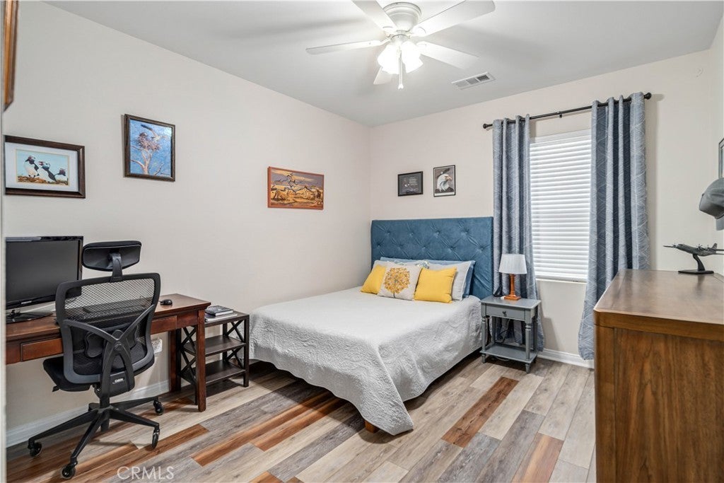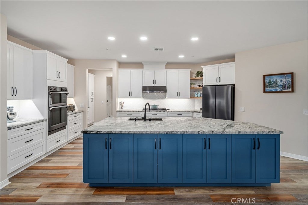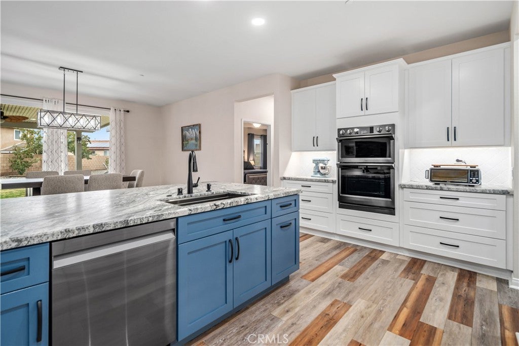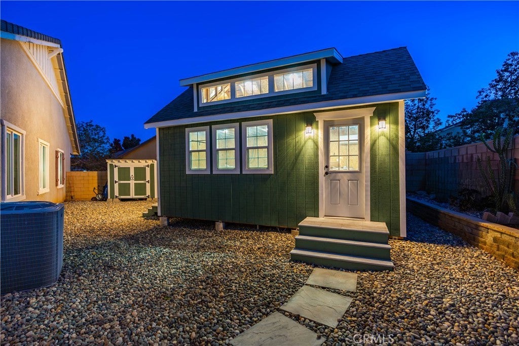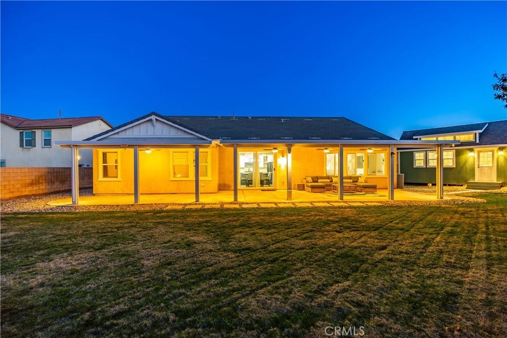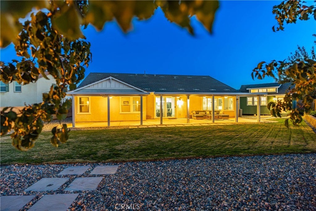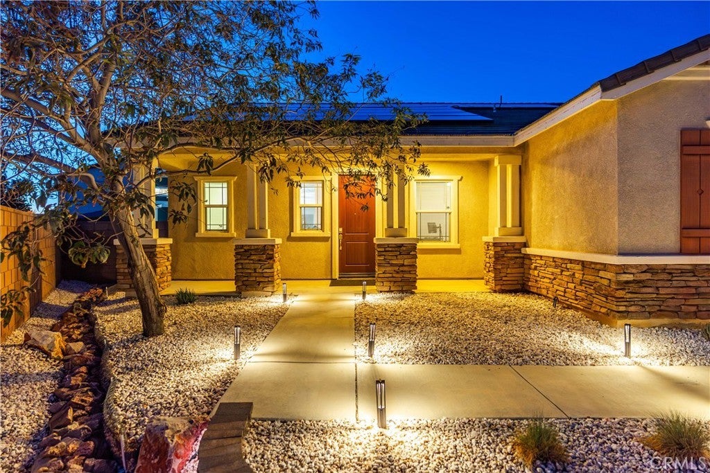 ***LIVE BEAUTIFULLY*** Discover the epitome of luxurious single-story living at 42715 Raywood Drive, where this stunning 4-bedroom home spans nearly 3,000 square feet and boasts over $300,000 in premium upgrades, all without the burden of HOA fees or Mello-Roos taxes. Step inside to a fully remodeled kitchen, laundry, and pantry that redefine functionality and style, featuring an enormous island with custom cabinetry, sleek leathered granite countertops throughout, and coordinated black stainless-steel appliances from the Samsung Bespoke series, offering superior efficiency compared to neighboring layouts. The secondary bathroom has been elegantly transformed with high-end black Moen Voss finishes and a relaxing soaking tub enclosed by glass panel doors, while storage solutions abound with a complete overhaul of the primary bedroom’s walk-in closet using built-ins, reconfigurable Elfa systems in the other three bedrooms and linen closet, expanded attic access for additional space, and a convenient hanging storage rack in the garage. Enhancing everyday convenience, the home is equipped with smart features controlling interior lights and switches, the thermostat, front and garage door locks, blinds, irrigation system, landscape lighting, Ring doorbell, and patio camera. Outside, the massive backyard invites endless enjoyment on a fully landscaped oasis, complete with a beautiful 1,200-square-foot lawn, coordinated hardscaping for garden areas and tree sconces, an automated smart irrigation system covering both front and back, thriving fruit trees including lemon, lime, pomegranate, fig, and peach, smart-controlled landscape lighting, and significantly improved drainage via a French drain. Complementing the outdoor space is a versatile 12’ x 20’ accessory building configured as a workshop, outfitted with 50A 220V electrical service, a loft for storage access, a 12k BTU mini-split AC and heating unit, and a matching lawncare shed. Powering it all is a fully owned 9kW solar power system that has delivered zero electrical bills over the past five years, with excess energy sold back to the utility for annual refunds, ensuring eco-friendly and cost-effective living in this exceptional property.