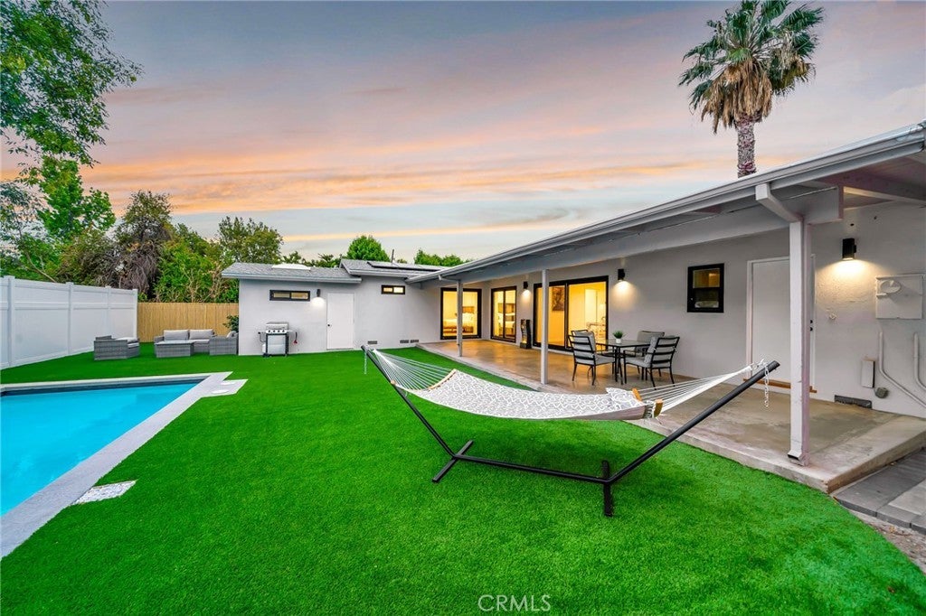 Perfect 4-bedroom villa! Great Location! l Located in a nice and quiet neighborhood, 2 min from US 101 Highway, 1 min away from a big dog park and Ventura Blvd, 15-25min away from Universal Studios, Santa Monica, and Hollywood. spacious villa, dog-friendly, and amazing for families! we have a big backyard with a pool and hot tub, a fire pit area, and an outdoor dining table. Please note, renting furnished is an option, please contact us for pricing.