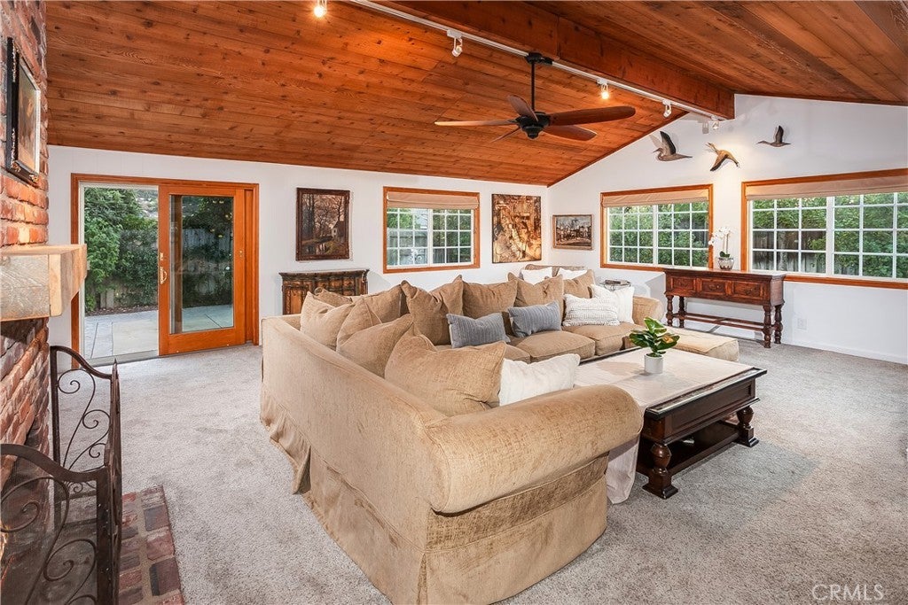 Welcome to this meticulously cared for home where charm, character, and modern updates come together. This 3-bed, 2-bath beauty is Defined by its signature two-way brick fireplace, leaded glass windows and arched passageway. The heart of the home is the thoughtfully designed kitchen, featuring custom real wood cabinetry, granite bullnose countertops, and tile flooring. A Viking range with matching exhaust, Jenn-Air fridge and dishwasher, a built-in microwave, plenty of counter space and pull-out pantry drawers make cooking a joy. There’s also a built-in breakfast nook and a pocket door that opens to the brightest most peaceful sunroom (it literally is the seller’s favorite room). Just past the kitchen this home unfolds into a gigantic great room, complete with vaulted wood ceilings, towering Andersen windows, and sliding doors that give an abundance of natural light while capturing views of Boney Mountain. A built-in desk makes this room perfect for work, creativity, or everyday living. The primary suite is bright and welcoming, centered around a charming bay window that fills the room with light. The en-suite bath features a seamless glass shower door and tumbled marble tile, remodeled with timeless style. All bedrooms are generously sized, with one featuring a stylish slider that opens directly to the backyard. The hall bathroom is a true designer touchpoint showcasing custom mosaic like marble tile in the shower, coordinating marble flooring, and timeless finishes that create a clean, elegant aesthetic. The backyard is truly a blend of beauty, relaxation and perfect for entertaining. There’s a spacious covered patio offering shade and privacy, creating the perfect spot for outdoor dining. The lush manicured lawns framed by rose bushes and mature landscaping bring color and life to every corner. Fruit lovers will appreciate the apple and lemon–lime trees adding seasonal homegrown sweetness. On the opposite side of the yard, you will love the second expansive patio featuring a spa, ideal for unwinding under the stars and a grilling area with a dedicated gas line making grilling effortless. Two detached storage sheds match the home and offer ample practical space. Additional upgrades include recessed lighting, smooth ceilings, crown molding, wood-like flooring throughout, a tankless water heater, new ducts and insulation (2023), a new AC compressor (2024), a new sewer line (2025), and a brand-new automatic garage door. Too much to mention. It wont last!