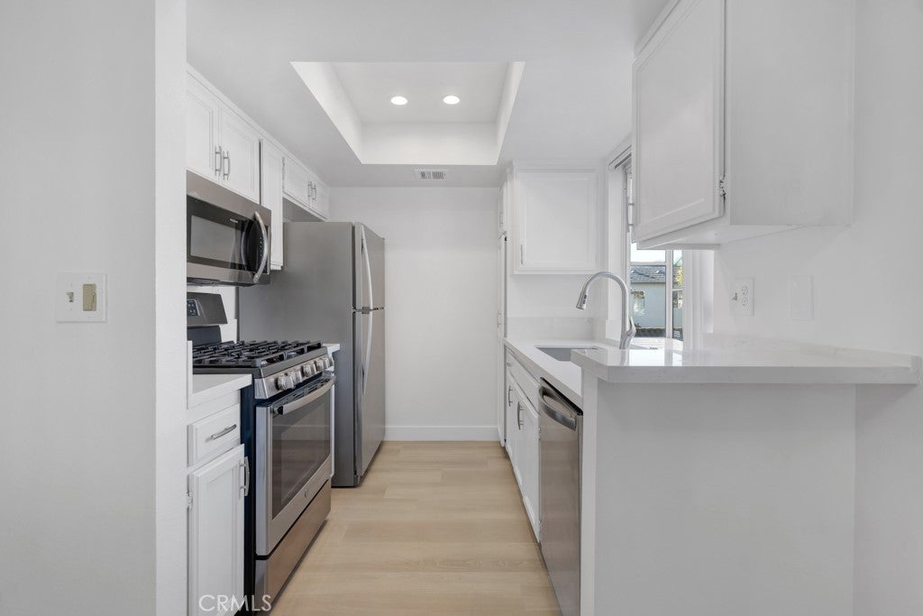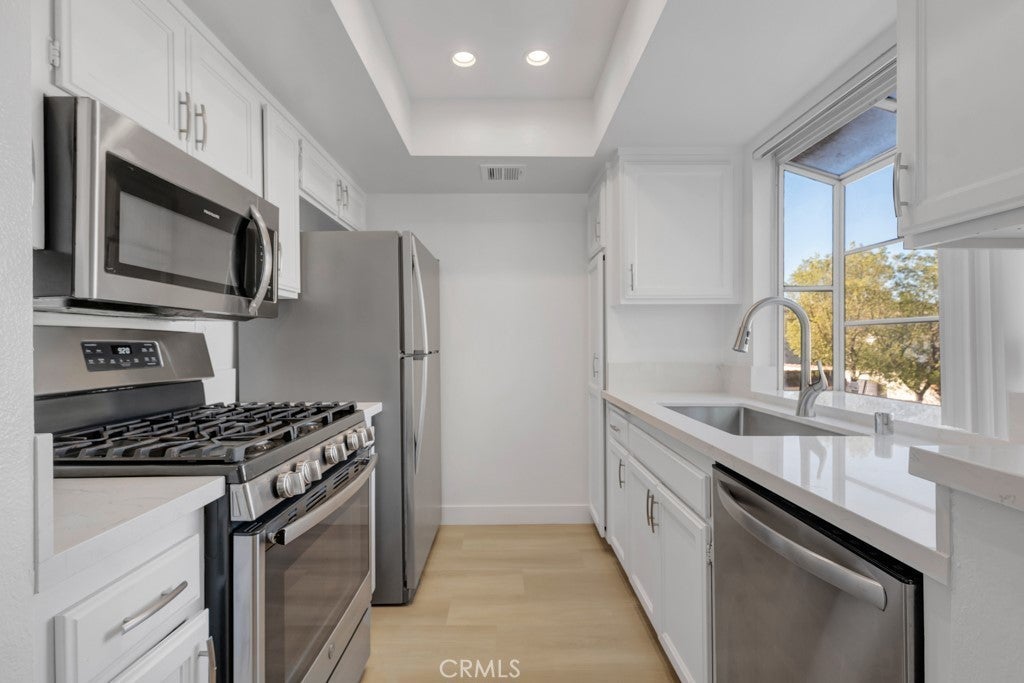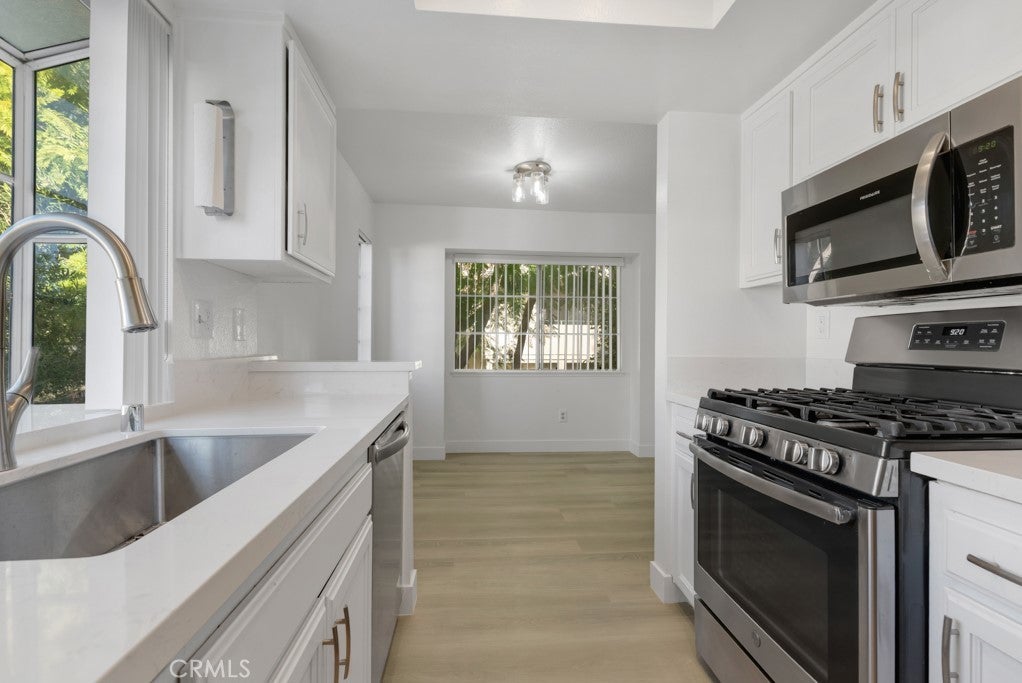 Prime Calabasas Living Behind Gates! Welcome home to this beautifully remodeled 2-bedroom, 2-bath upstairs condo situated in a desirable gated community! Step inside to find brand-new flooring and fresh paint throughout, complementing the bright, open floor plan. The updated kitchen features quartz countertops and stainless steel appliances—including a stove, oven, microwave, dishwasher, and refrigerator—overlooking a peaceful greenbelt and trees! The spacious primary suite offers a newly upgraded ensuite bathroom, walk-in closet, and serene ambiance. The secondary bedroom also enjoys its own refreshed bathroom with a brand-new vanity. Enjoy a comfortable dining area, generous living room, and a private balcony perfect for morning coffee or unwinding among the trees. Additional conveniences include in-unit washer and dryer, central AC/heat, and two covered side-by-side parking spaces. Residents have access to fantastic amenities including a sparkling swimming pool, relaxing jacuzzi, and fitness room. All of this in a prime location — just minutes to the beach, freeway access, markets, trendy restaurants, shops, and entertainment. A rare opportunity to live stylishly and comfortably in Calabasas! Located in the amazing Las Virgenes school District!