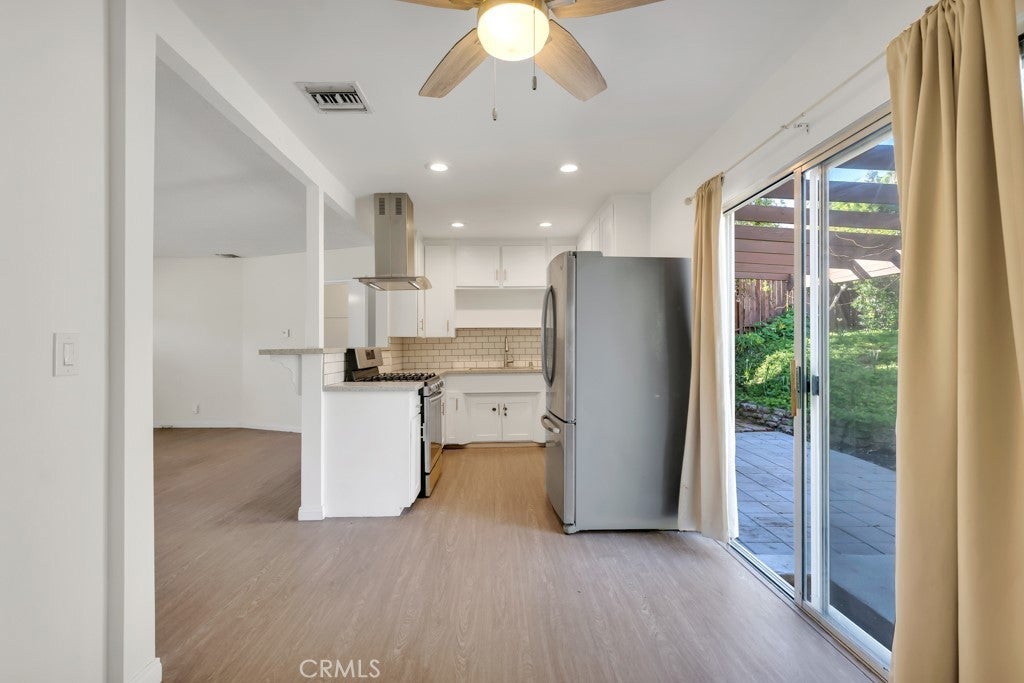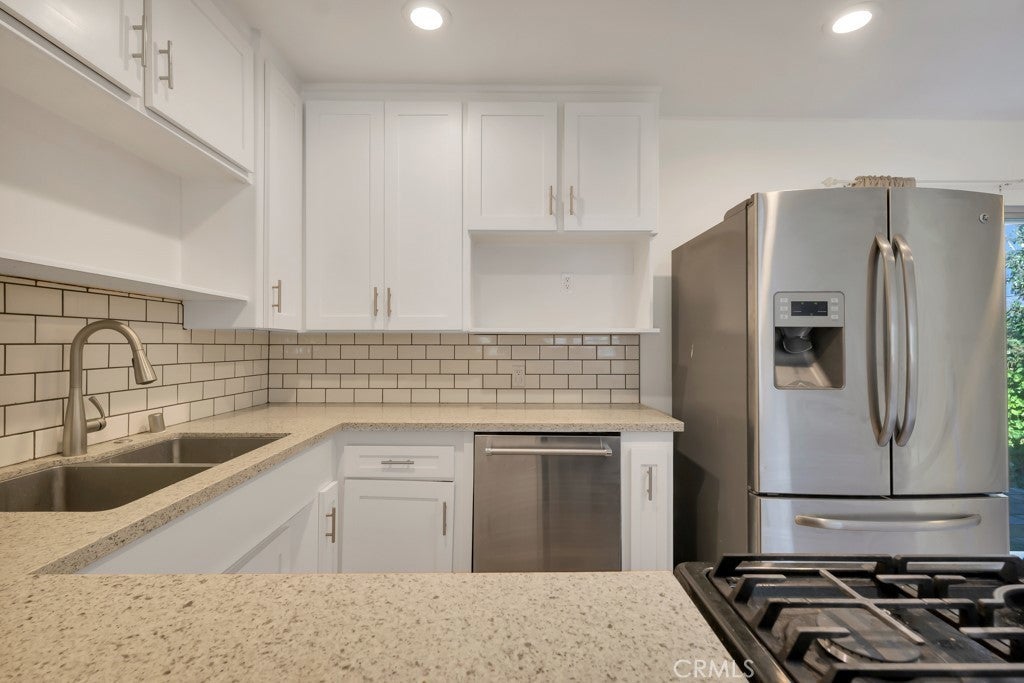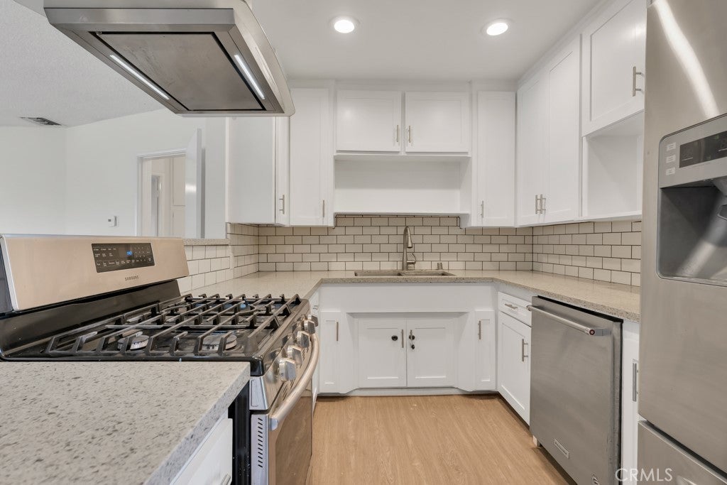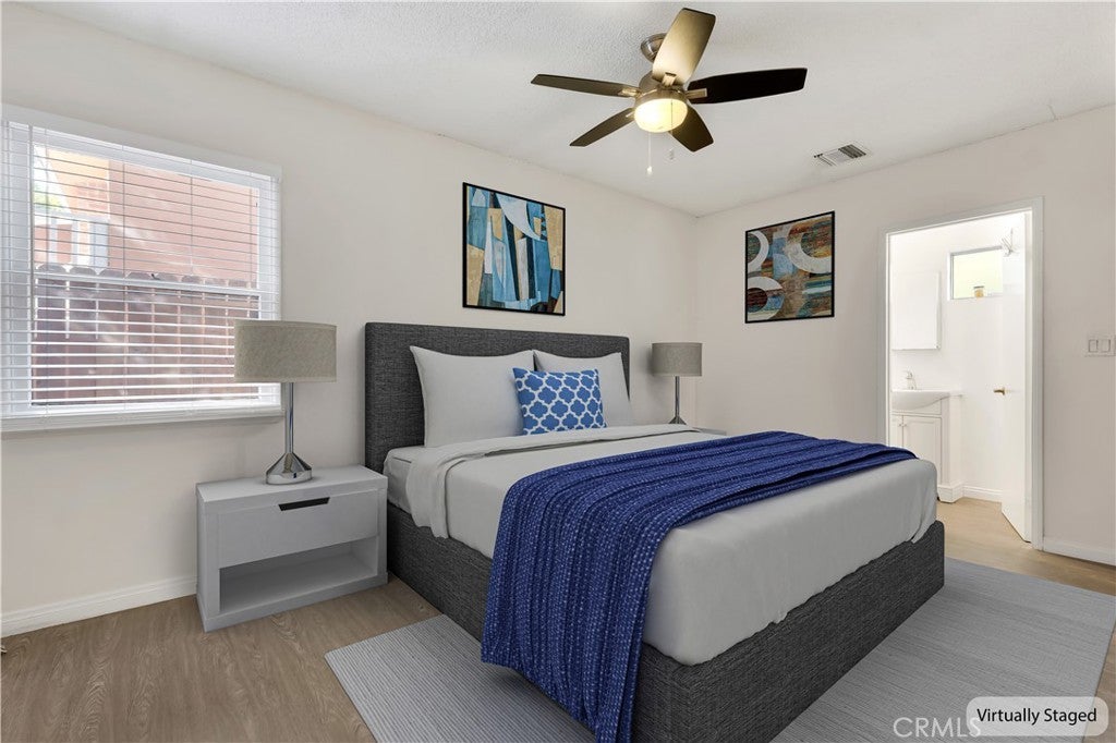 Welcome to 21501 Velicata Street! Located in the highly desirable South of the Boulevard "Costanso" neighborhood of Woodland Hills, this charming single-story 2-bedroom, 2-bathroom home offers 950 square feet of light-filled living space, perfectly situated on an expansive 8,150 square foot lot—a rare opportunity with endless potential. The open-concept floor plan creates a bright and inviting atmosphere, featuring a spacious living room, dining area, and kitchen ideal for both everyday living and entertaining. The chef’s kitchen boasts white shaker-style cabinetry, stone countertops, stainless steel appliances, and a classic yet modern subway tile backsplash. Additional highlights include newer vinyl flooring, ceiling fans, central heat and air, and indoor laundry for added convenience. The primary bedroom features an en-suite bathroom, while the secondary bedroom and hallway bath offer flexibility for guests, family or a home office. Outside, the massive rear yard provides incredible potential—perfect for the new owners to plant a large garden, build an outdoor kitchen, use as entertaining space, adding onto the current home or the possible addition of an ADU! You will enjoy outdoor California living on the paver patio with pergola, ideal for relaxing or hosting gatherings. Completing the home is a one-car garage and ample outdoor space, making this property an exceptional opportunity. This home is ideal for first-time buyers, downsizers, those transitioning from a condo or townhouse, or developers and flippers looking to expand, upgrade or reimagine. A rare South of the Boulevard offering with limitless possibilities conveniently situated minutes from Ventura Blvd, the 101, great schools, fabulous shopping and restaurants, Trader Joes, Whole Foods, Target, the Village, Costco and Westfield Topanga shopping centers, Costanso Firestation 84 Park, Serrania Park and just 35 min to the beach! Please note that some photos have been virtually staged.