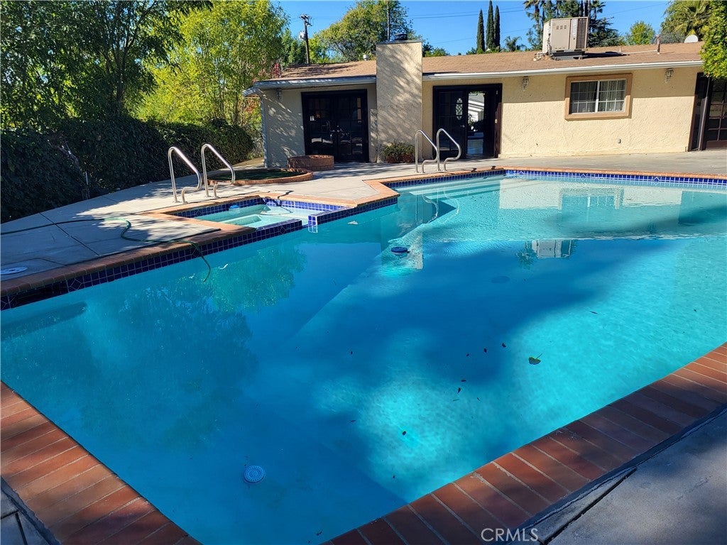Beautifully updated open-concept home featuring green granite countertops, a stainless hood, stainless steel appliances, and an electric range. The spacious kitchen, dining, and living areas flow seamlessly into a large family room—an ideal layout for entertaining. This home offers three bedrooms plus a bonus room/office, providing wonderful flexibility. The primary suite opens directly to the serene backyard, where you’ll find a sparkling pool, spa, and gas fire pit—a perfect setting for gatherings or quiet relaxation. One of the additional bedrooms also features its own en-suite bathroom, making it great for guests. Enjoy abundant natural light, generous closet space, and an inviting fireplace that anchors the living/dining area. The home is extremely spacious and bright, offering effortless indoor–outdoor living. Washer, dryer, and refrigerator are all included.