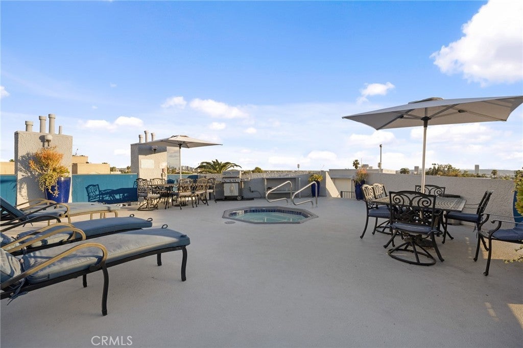 This inviting 1-bedroom, 1-bath residence offers 706 square feet of comfortable living space in a well-maintained, amenity-rich community. New floors flow through the bedroom, living area, and kitchen, creating a fresh and modern feel throughout the home. The kitchen is equipped with newer appliances and opens to a cozy living space ideal for everyday living. A small private patio provides the perfect spot to sip your morning coffee or unwind at the end of the day. Residents enjoy access to a rooftop pool and spa with city views, perfect for relaxing or entertaining, along with a barbecue area and an on-site gym/exercise room. The community offers controlled access and maintained grounds, with water, trash, and exterior maintenance included for added convenience. Pets are permitted, making this an excellent option for those seeking a low-maintenance lifestyle with desirable amenities in a central location.