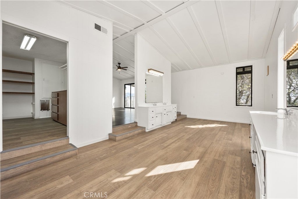 Beamed Ceilings, Ceiling Fan(s), Eat-in Kitchen, High Ceilings, Living Room Deck Attached, Open Floorplan, Pantry, Quartz Counters, Storage, Unfurnished, Main Level Primary, Walk-In Pantry, Walk-In Closet(s)