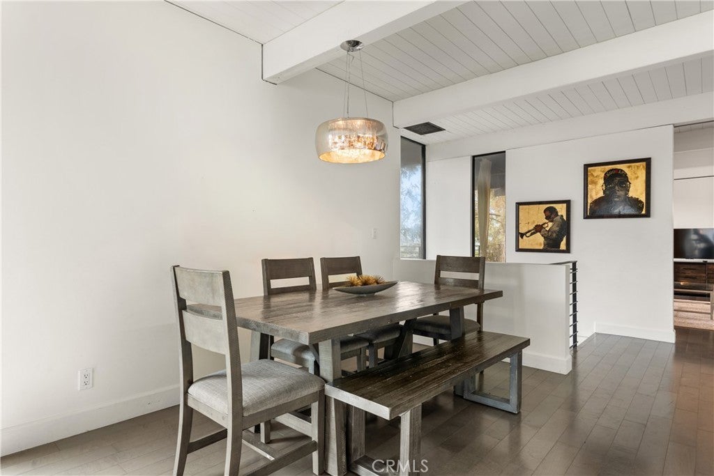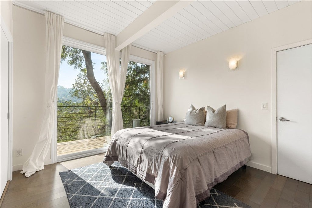Nestled in the heart of the Hollywood Hills, this stunning home showcases sweeping hillside views and an unbeatable location just moments from the major studios, Lake Hollywood and everything the Valley, Westside and Downtown LA have to offer. Designed in a timeless mid-century modern style, this home blends architectural character with contemporary comfort. The upper level offers a spacious open-concept layout featuring a gourmet kitchen with stainless steel appliances, dining area and living room, ideal for both everyday living and entertaining, along with a versatile den and full bathroom. Downstairs, you’ll find three generously sized bedrooms, another full bathroom and a dedicated laundry area. Additional highlights include floor-to-ceiling windows throughout, a gated front courtyard, large backyard and two-car garage.