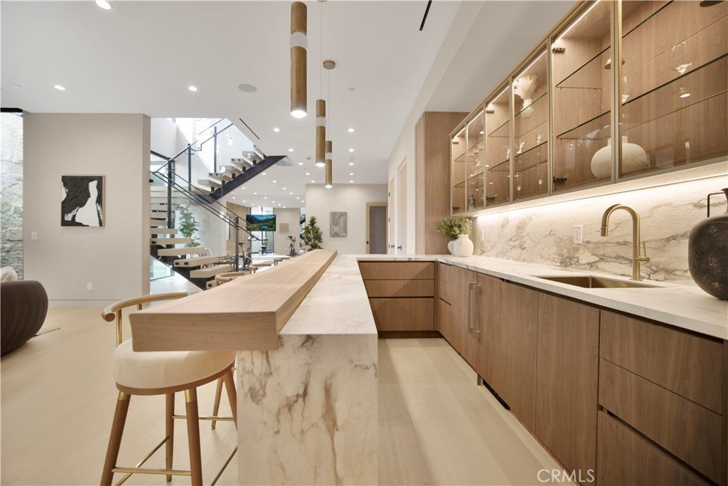 Built-in Features, Balcony, Separate/Formal Dining Room, High Ceilings, Open Floorplan, Pantry, Stone Counters, Recessed Lighting, Bar, Bedroom on Main Level, Primary Suite, Walk-In Pantry, Wine Cellar, Walk-In Closet(s), Beamed Ceilings, Breakfast Area, Dressing Area, Intercom, Smart Home