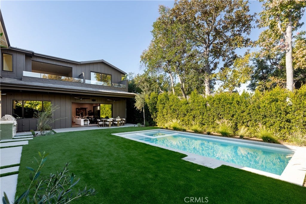 A striking statement of modern luxury, this newly constructed gated estate situated in the heart of Studio City offers a 5-bed, 6-bath main residence and 1-bed, 1-bath ADU. Inside, an expansive open floor plan unfolds beneath lofty ceilings and walls of glass that flood the home with natural light, making every room feel open, bright and inviting. The chef’s kitchen is a showpiece, anchored by a massive waterfall island and outfitted with top-of-the-line appliances, a hidden walk-in pantry, and sleek custom cabinetry. The adjoining living room features an oversized sliding glass door that opens to create a seamless transition for indoor-outdoor living. An elegant formal dining room with built-in wine storage elevates everyday meals and transforms special occasions into unforgettable gatherings. On the main level you’ll also find a state-of-the-art home theater, ensuite bedroom, stylish powder room and direct access to the two-car garage. Upstairs, four additional ensuite bedrooms offer comfort and privacy, along with a dedicated laundry room for convenience. The primary suite is a sanctuary unto itself, complete with a large covered balcony, dual walk-in closets and a spa-inspired bathroom featuring a deep soaking tub, oversized rainfall shower and double vanity. Designed for California living at its finest, the entertainer's backyard is highlighted by a built-in BBQ and sparkling pool/spa that invites year-round enjoyment. The attached ADU boasts a private entrance, spacious living room with a full kitchen, a bedroom and bathroom, offering exceptional versatility for guests, extended family or as additional living space. Fully integrated with a Control4 smart system, the home allows seamless control of the speakers, lighting, climate and a comprehensive security system with cameras. Located in Coldwater Canyon, this excellent South of the Boulevard location is within the sought-after Dixie Canyon School District and allows for easy access to both the Valley and Westside.