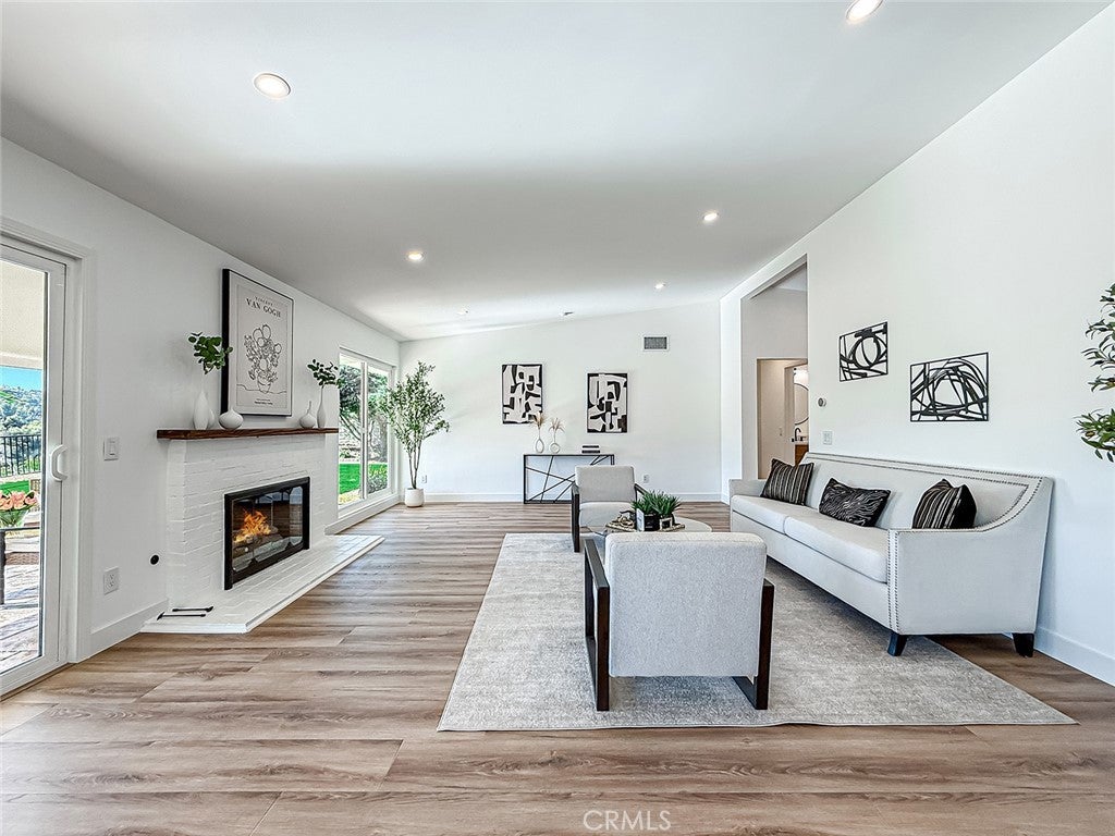View! View! Attention all Woodland Hills buyers & agents! Wait until you see this one-of-a-kind super sharp showplace home with spectacular forever views. Completely remodeled, single-story 4 bed, 2.5 bath. Absolutely beautiful open floor plan with plenty of natural light throughout- great for entertaining. Ultra rare offering. Upgrades & updates galore: fresh interior & exterior paint. Gorgeous gourmet cook’s dream kitchen with European-style cabinets and plenty of storage. New Forno stainless steel appliances throughout (range, hood, fridge, dishwasher). Refrigerator is 60" wide. Informal dining area and family room adjacent to kitchen. New everything: front door, interior doors, closets, pantry shelves & linen closet, LED lights throughout the home. Completely renovated bathrooms (new everything - tile, fixtures, vanities, lights, toilet, tub, sink, etc.). New engineered laminate wood floors. Google Nest thermostat. Lovely formal living room with brick-framed fireplace, spacious formal dining room. Marvelous main bedroom suite with direct access to the backyard. Terrific room sizes and closets. Finished two-car garage with epoxy floor, led lights, and Tesla EV charger. Turf backyard with unabated views of the surrounding mountains. Covered outdoor seating area. Freshly updated landscape. New gutters. New Ring doorbell & outdoor floodlights with cameras. Other amenities include dual paned windows and drought tolerant hardscape/landscape throughout the property. Great location. Close to everything: schools, parks and shopping. If you are only seeing a few homes in this price range, make sure you see this one! Do not miss! Woodland Hills living at its best. Come and see this home today!