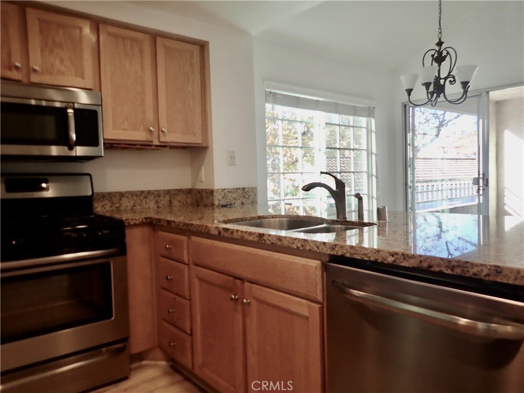 Upgraded throughout Steeplechase Condominium's "Avon" plan 1 bedroom plus 1.25 bath corner end unit with nobody living above or below. Single car private attached garage directly below the living area. Parking Permit for 2nd vehicle overnight parking within this private gated community also included. Spacious living room with high vaulted ceilings and wood burning fireplace. Kitchen with slab granite countertops, hardwood cabinets, and recessed lighting. Built-in appliances include stainless gas oven/range, dishwasher, microwave, and refrigerator. In unit laundry with full size washer and dryer included. Unit faces west, abundant windows and high ceilings providing good natural light. Full bath tub/shower along with additional second sink quarter bath in adjacent dressing area with double wardrobe closets. Private outdoor covered patio is perfect for table and bbq. Owner pays water and refuge. Amenities include 2 pool areas, gym, sauna, clubhouse, and security patrol. Must have Fico score above 700 on credit report and no pets please. Security Deposit $2,700. Only 1 block from shopping, dining, and Erewhon Organic Market at Lost Hills and Agoura Road. Just down the street from great outdoor recreation at Malibu Creek State Park and only 8 miles through the scenic canyon to the beaches of Malibu.