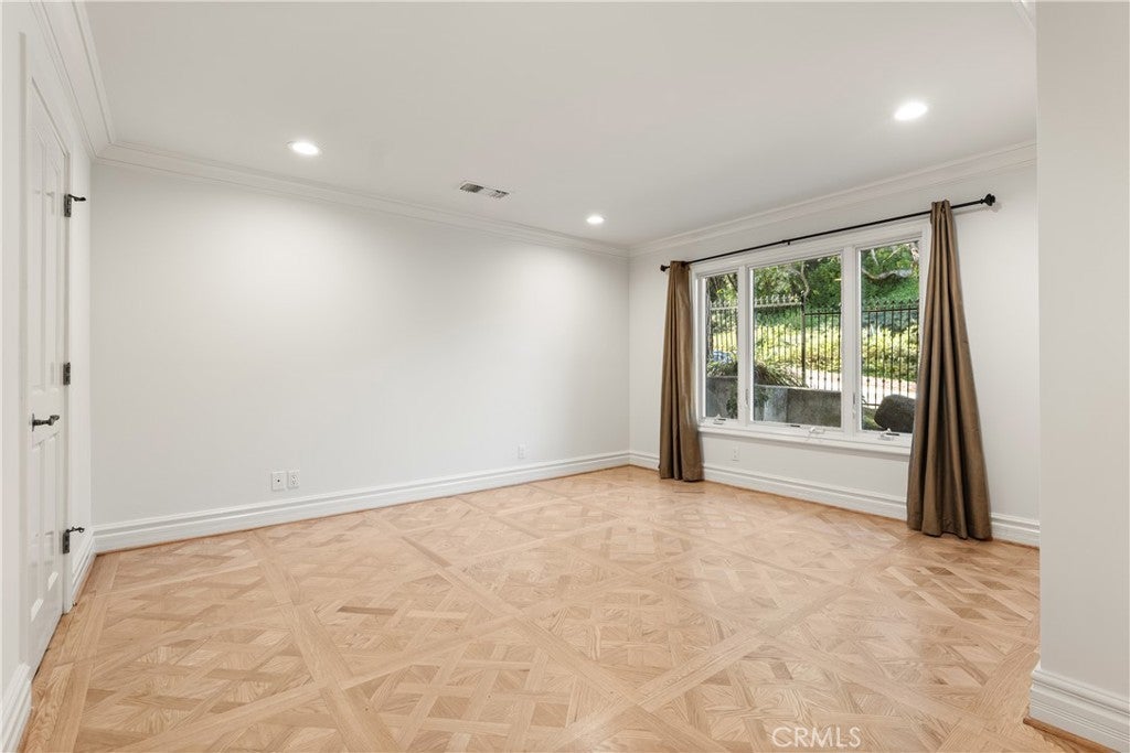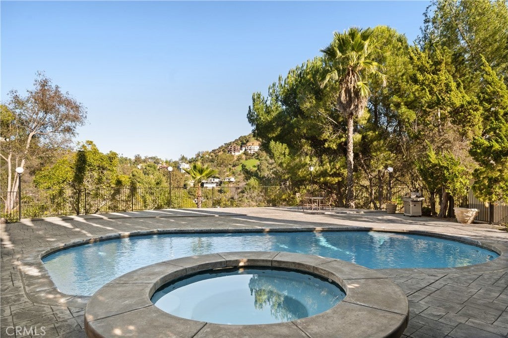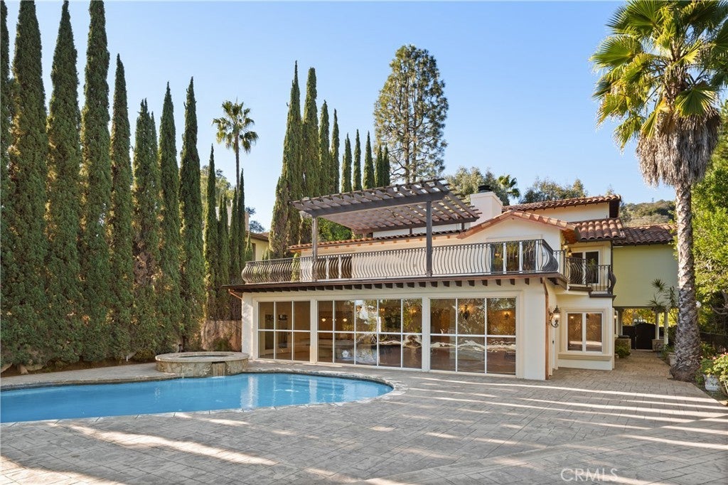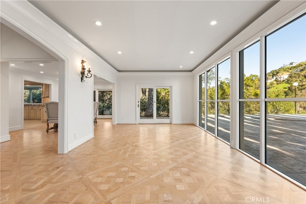 Tucked away at the end of a quiet cul-de-sac in Laurel Canyon, this gated Hollywood Hills retreat is situated on a sprawling hillside lot that offers dramatic canyon views. Enter through grand double doors into a warm, light-filled interior, where a spacious living room flows seamlessly into a bright sunroom framed by floor-to-ceiling walls of glass. The chef’s kitchen is a dream for anyone who loves to cook or entertain, beautifully appointed with top-of-the-line appliances and an oversized island. Adjacent, the formal dining room provides the perfect setting for casual meals or lavish dinner parties. Head upstairs to find three generously sized bedrooms, along with a wood-paneled office. The primary suite is a true sanctuary, featuring its own private patio, an inviting sitting area, custom walk-in closet and sumptuous bathroom, complete with a jetted tub, oversized shower, bidet, double vanity and separate makeup vanity. Step outside to the serene backyard oasis, where you can lounge by the sparkling pool/spa, relax in the sauna or entertain on the expansive patio while taking in the captivating vistas. There’s also an outdoor bathroom and bonus room, currently serving as a gym which is about 500-600 square feet, that adds even more functional living space. Additional highlights include a main level ensuite bedroom and powder bathroom, a security system and two-car garage with a laundry area. Perfect for those seeking privacy without sacrificing convenience, this exceptional estate is just minutes from everything the Westside and Valley have to offer, and sits within an award-winning school district.