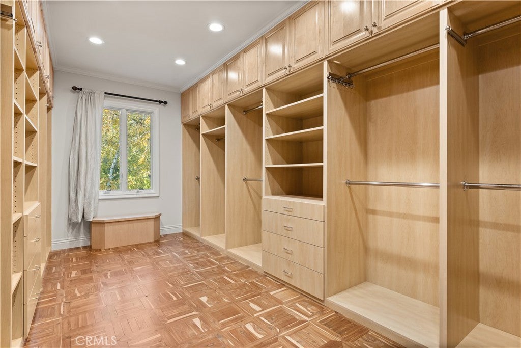 Breakfast Bar, Built-in Features, Balcony, Crown Molding, Cathedral Ceiling(s), Separate/Formal Dining Room, High Ceilings, Open Floorplan, Pantry, Recessed Lighting, Storage, Wired for Sound, Bedroom on Main Level, Entrance Foyer, Primary Suite, Walk-In Closet(s), Two Story Ceilings, Wood Product Walls
