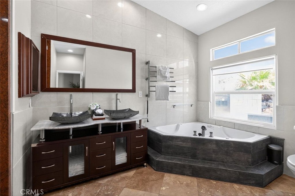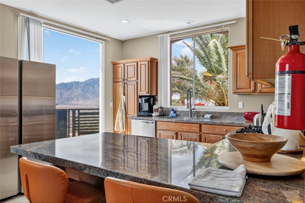 Welcome to your desert retreat! This beautiful 1-story furnished home offers 3 bedrooms, 3 bathrooms, and 1,878 square feet of open living space. The interior features tile flooring throughout, recessed lighting, ceiling fans, and a cozy fireplace in both the living room and the main bedroom. Enjoy a spacious dining area and upgraded tiled bathrooms, including a jetted tub for relaxing. A separate game room provides the perfect space for entertainment and fun. The private backyard oasis includes a saltwater pool and jacuzzi, a remote-controlled pool cleaner, and a built-in BBQ area with sink and shaded cover ideal for outdoor dining and entertaining. Take in the gorgeous mountain views from your own peaceful escape. Additional features include a 2-car garage. This home offers comfort, convenience, and resort-style living in the heart of Desert Hot Springs.