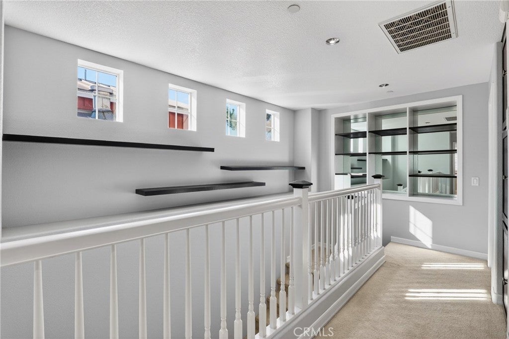 Ladera Ranch living at its finest! Experience refined living in this beautifully upgraded townhouse located in the highly desirable Sutter's Mill community. The inviting main level features an open-concept living and dining area highlighted by a cozy gas fireplace, recessed lighting, and large windows that fill the home with abundant natural light, creating a bright and welcoming atmosphere. The well-appointed kitchen showcases quartz countertops, generous cabinetry, and a functional layout ideal for both casual dining and entertaining. Upstairs, the spacious primary suite offers a private retreat complete with a walk-in closet and access to a private balcony overlooking a tranquil greenbelt and sparkling pool. Two additional bedrooms provide flexibility for guests, a home office, or growing households. A dedicated, full-size laundry room features in-unit washer and dryer, complemented by built-in cabinetry for added storage and organization. Enjoy outdoor living with a private, fenced front patio ideal for relaxing or entertaining. The home also offers direct-access to an attached two-car garage, enhanced by custom built-in garage storage that maximizes space, organization, and functionality, along with a full-length driveway for added convenience. For maximum convenience, residence features ADT security panels and keypad and a newer, top of the line tankless water heater. Residents of this charming community enjoy access to resort-style amenities including a pool, playgrounds, and nearby walking and hiking trails. Ideally situated close to top-rated schools, shopping, dining, hospitals, and easy freeway access, this turnkey home presents an exceptional opportunity to enjoy the best of South Orange County living. Living area, primary and guest bedrooms are virtually staged. Unfurnished photos are included.