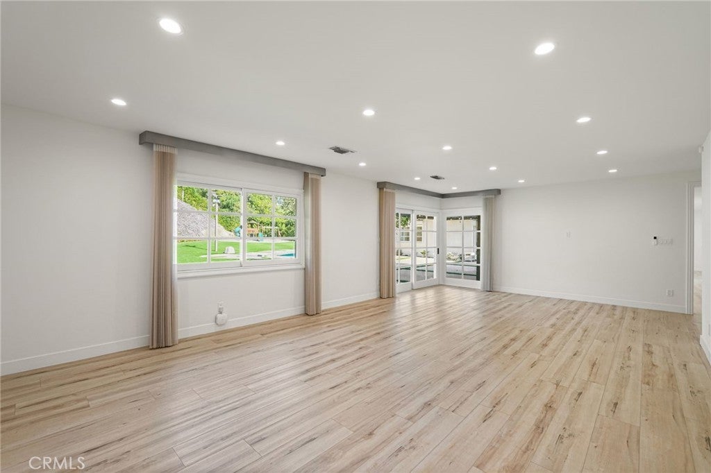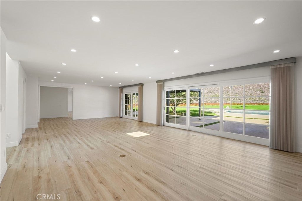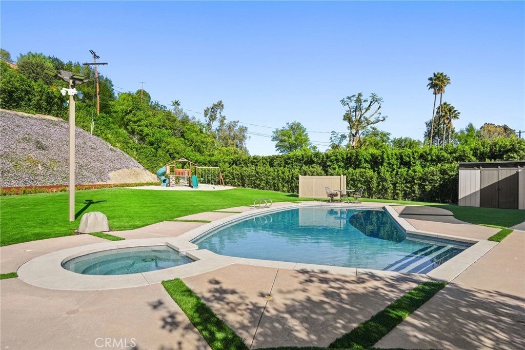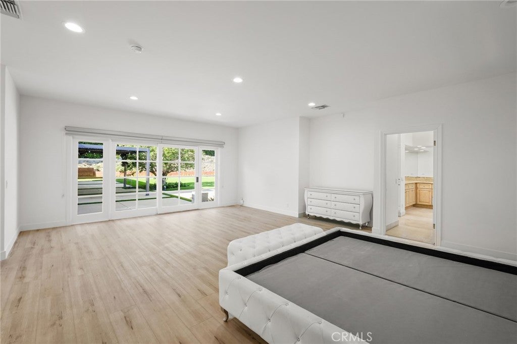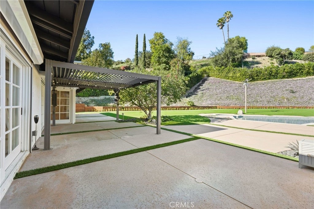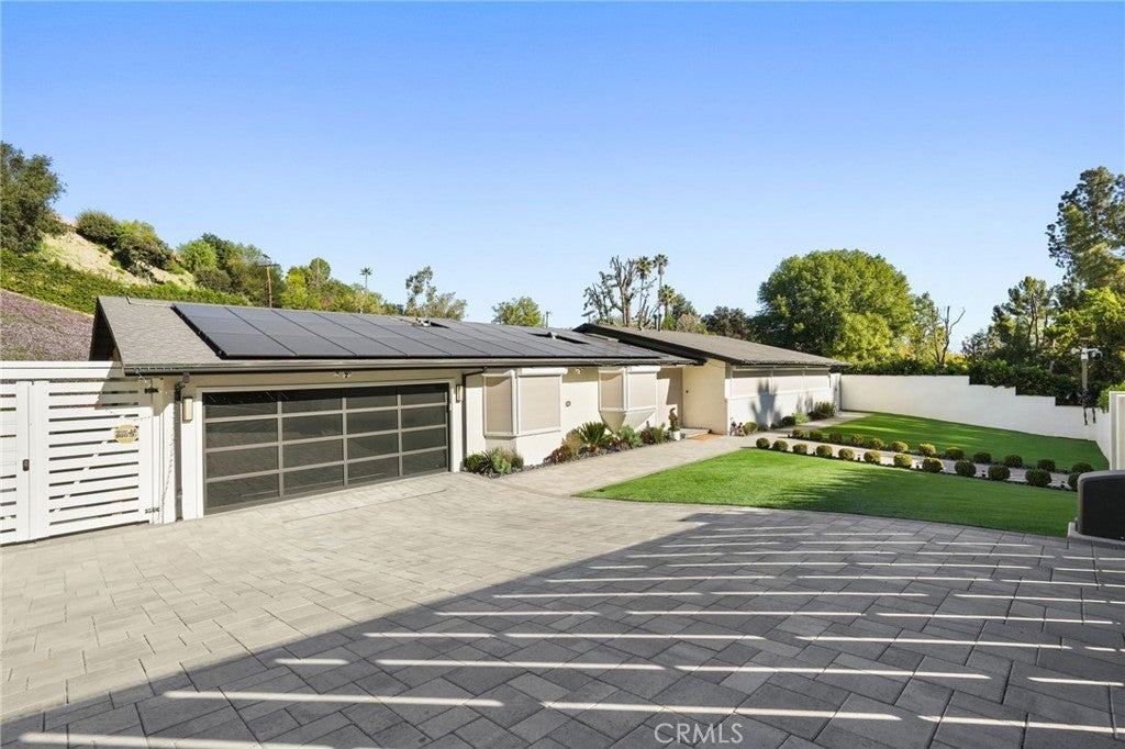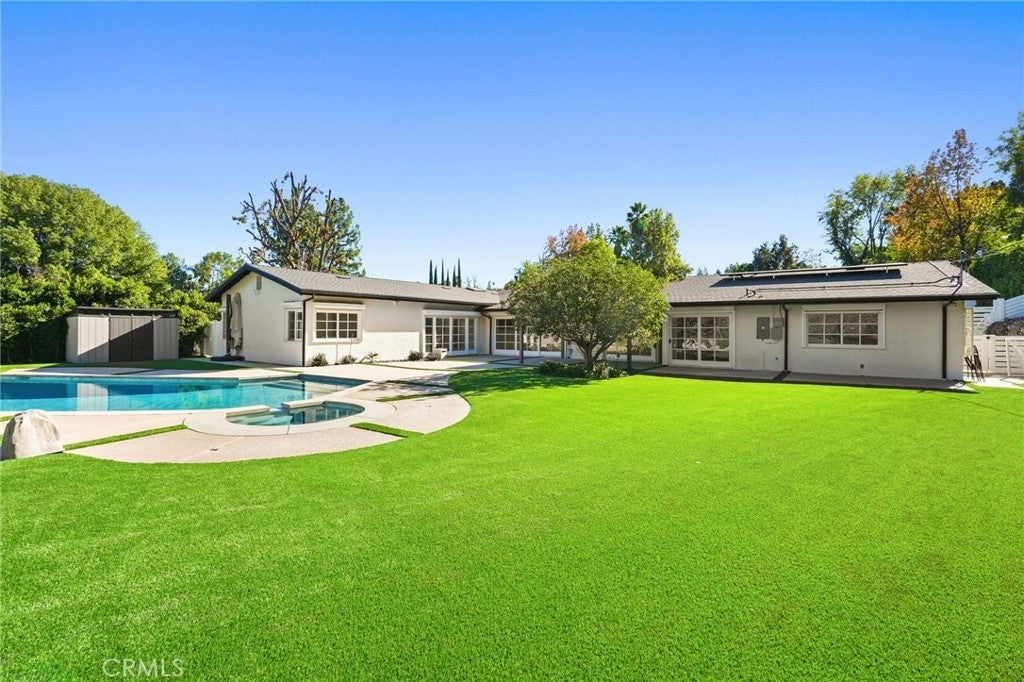 Situated South of the Boulevard in Woodland Hills, this exceptional gated, single-story, remodeled estate offers luxury, privacy, and smart-home living on an expansive 25,000 sq ft lot with a large, private front yard. Spanning approximately 3,700 sq ft, the home features 3 bedrooms PLUS an office and 4 bathrooms with an ideal floor plan. The residence is truly turn-key with extensive recent upgrades including a new roof, new HVAC, new flooring, fresh interior and exterior paint, updated electrical panel, and new lighting throughout. The home offers an open-concept living room and dining room, as well as a large family room, all featuring sliding glass doors that open directly to the expansive, park-like backyard, creating seamless indoor-outdoor living. The home also offers abundant storage throughout, adding to its exceptional functionality. The oversized primary suite includes two large walk-in closets with steel doors and a luxurious en-suite bath. The spacious kitchen features abundant cabinetry, generous counter space, and a breakfast nook. Outdoor amenities include a brand-new pool and heated spa, controllable via phone app, along with a sandy play area ideal for recreation. Both the front and rear yards feature turf for water conservation. Additional highlights include full perimeter walls and fencing, mature Ficus hedging, high-end security cameras, alarm system, blackout security shutters, smart gates and garage, 40 solar panels with Tesla backup battery, and two 240V EV chargers. A rare lease opportunity in one of Woodland Hills’ most desirable neighborhoods.