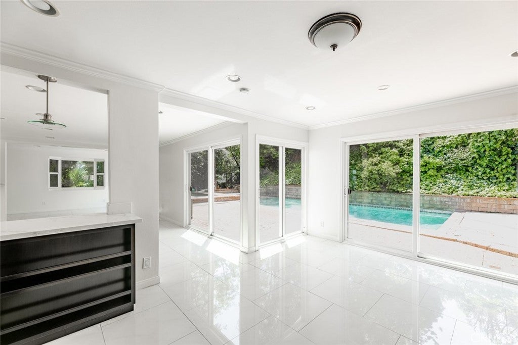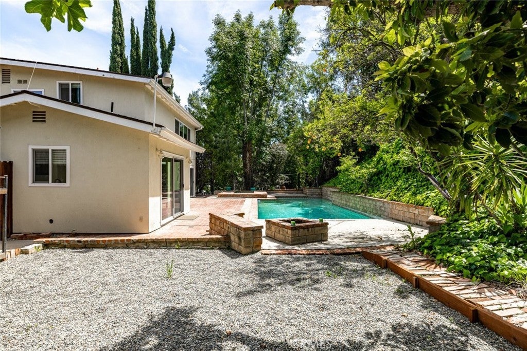Presenting an unparalleled lease opportunity at 24526 Calvert Street in Woodland Hills! This captivating VIEW home exudes warmth and radiance, offering an expansive living experience with 3 bedrooms and 3 bathrooms spread across 2,461 square feet of meticulously designed space, all nestled on a sprawling 10,898 square foot lot! As you enter, the main level welcomes you with elegant white stone floors, complemented by recessed lighting that bathes the space in a soft glow. There is abundant natural light flowing throughout the space. A convenient guest powder room adds to the functionality of the home. The heart of the home, the kitchen, impresses with its generous size and features sliding doors that open onto a serene backyard oasis. Granite countertops, custom cabinets, and a suite of appliances are all included to ensure a seamless culinary experience. Venturing upstairs, the master bedroom awaits, complete with an attached bathroom and a spacious walk-in closet lined with aromatic cedar. Two additional bedrooms and another bathroom provide ample space for family or guests. An extra-large linen closet ensures that storage is never an issue. Enhancing the home's appeal are all-new energy-efficient windows and sliders, along with brand-new flooring throughout the main level. Outside, the tropical backyard beckons as a sanctuary of relaxation, boasting a sparkling pool and jacuzzi, perfect for cooling off on warm California days, and adorned with various fruit trees. Convenience is key with an indoor laundry room equipped with washer and dryer hookups. The home was recently completely renovated and includes windows with dual pane windows and new hardwood flooring on the staircase and throughout upstairs. Parking options abound, with space available in the garage, driveway, or on the ample street parking. This home is also located near highly rated charter schools Haynes Charter for Enriched Studies, Lockhurst Drive Charter Elementary School, and Hale Charter Academy. With its vast lot offering abundant outdoor space to savor the California weather, this home presents an unparalleled opportunity to indulge in the quintessential Southern California lifestyle.