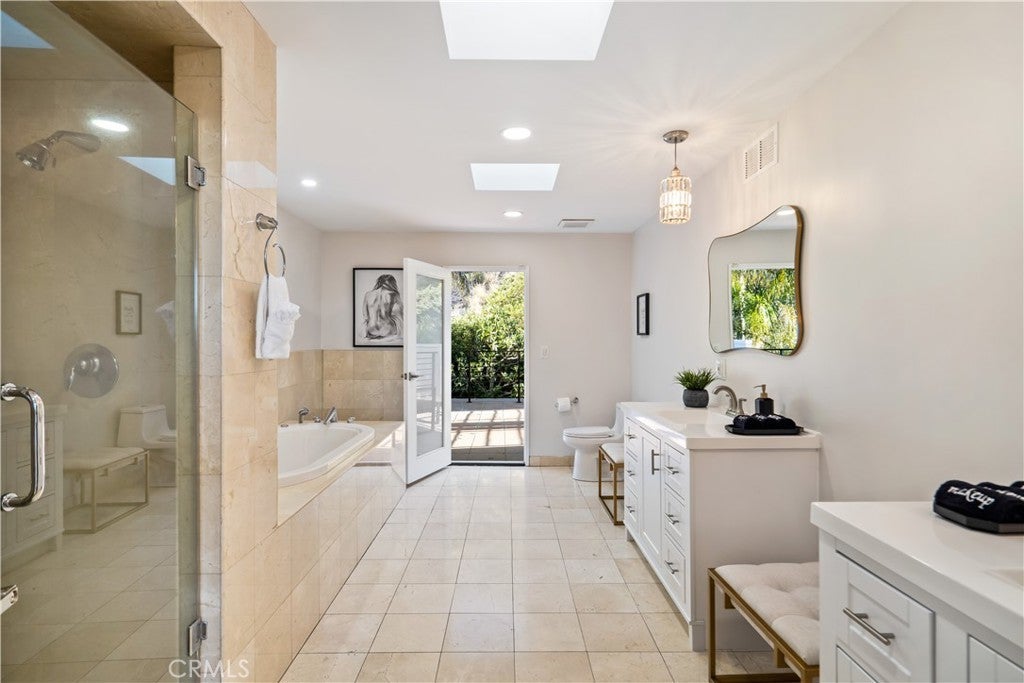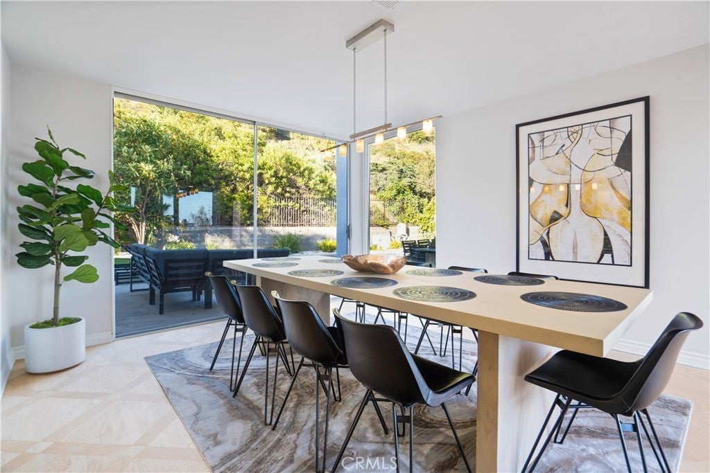 Nestled in the prestigious Mount Olympus neighborhood of the Hollywood Hills, this stunning fully furnished 5-bedroom, 4-bathroom residence offers the perfect blend of luxury, comfort, and style. The expansive living room showcases soaring ceilings, recessed lighting, and rich wood floors, creating an elegant yet inviting atmosphere. The chef’s kitchen is thoughtfully designed with a large center island, granite countertops, stainless steel appliances, a double oven, and abundant cabinetry, seamlessly flowing into the sophisticated dining area—ideal for both everyday living and entertaining. A spacious family room/game room with a wet bar provides the perfect setting for gatherings and relaxation. The main level includes a generously sized bedroom and full bathroom, offering flexibility for guests or a home office. Upstairs, the luxurious primary suite features breathtaking hillside views, a walk-in closet, and a spa-inspired en-suite bathroom complete with a soaking tub, separate shower, double vanities, and a private terrace. Three additional bedrooms and two full bathrooms complete the upper level. Designed for seamless indoor-outdoor living, floor-to-ceiling doors open to a private backyard oasis featuring a pool, spa, and putting green—perfect for entertaining or unwinding in complete privacy. Move-in ready and impeccably appointed, this exceptional home is located in one of Los Angeles’ most desirable enclaves.
