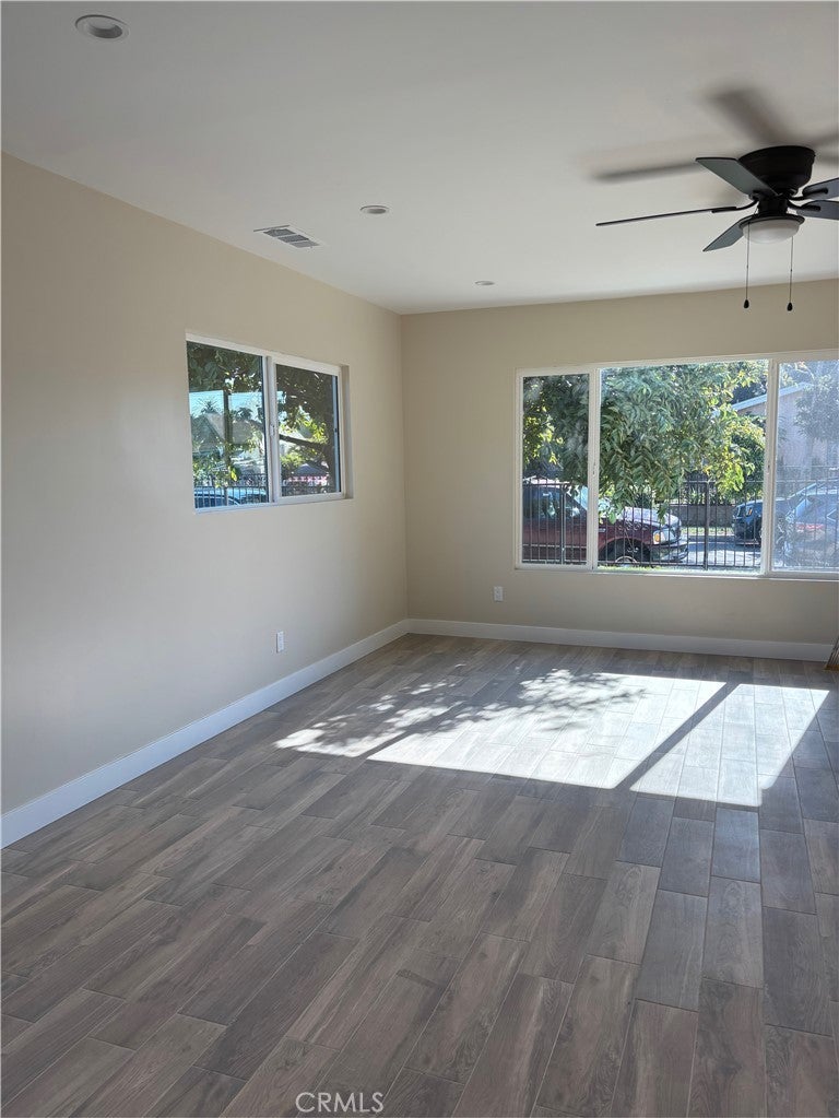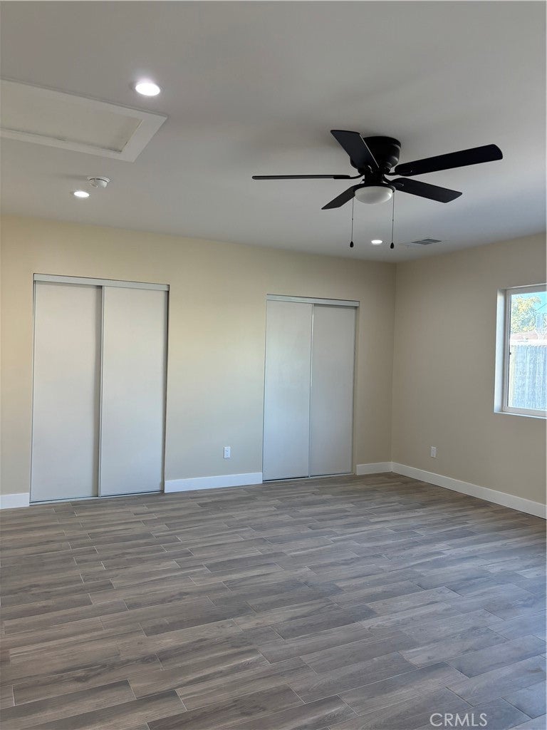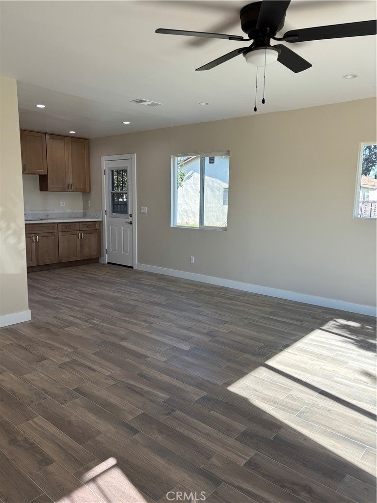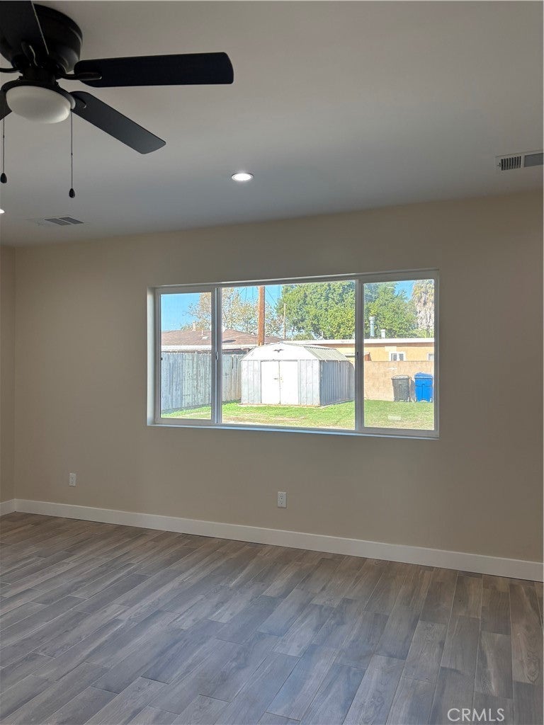 Welcome home to this beautifully remodeled 3-bedroom, 2-bath unit located in a well-maintained triplex. One of three units currently available, this home sits on a beautiful lot featuring mature fruit trees and a large shared yard—perfect for relaxing or enjoying time outdoors. Inside, you’ll find an open-concept kitchen, a spacious living room, and updated finishes throughout. The primary bedroom is generously sized and includes double closets and a private en-suite bathroom. The unit also offers its own private laundry room for added convenience. Parking includes two designated spaces on the property, with a possible third space depending on vehicle size. Situated in a quiet residential neighborhood within walking distance to a lovely nearby park. Please note, no pets allowed.
