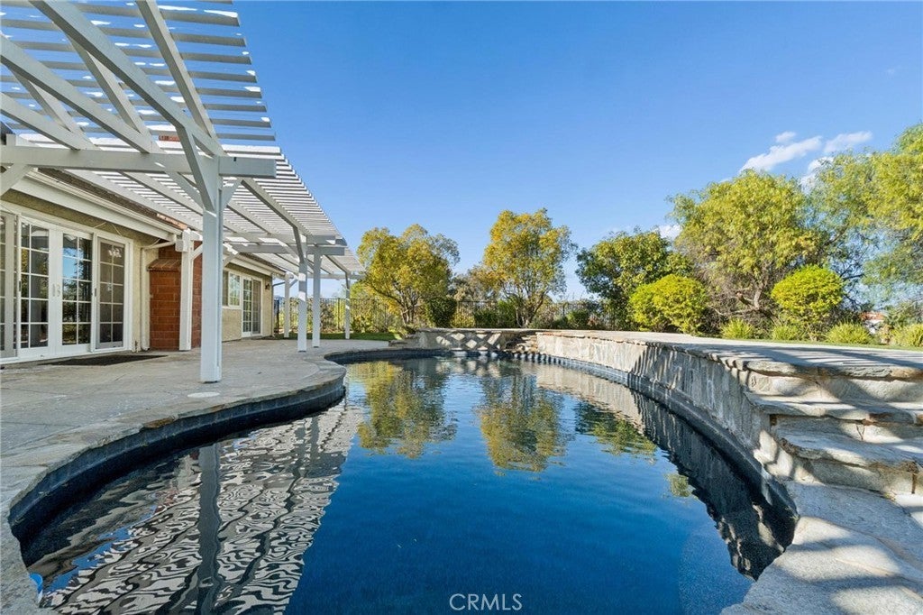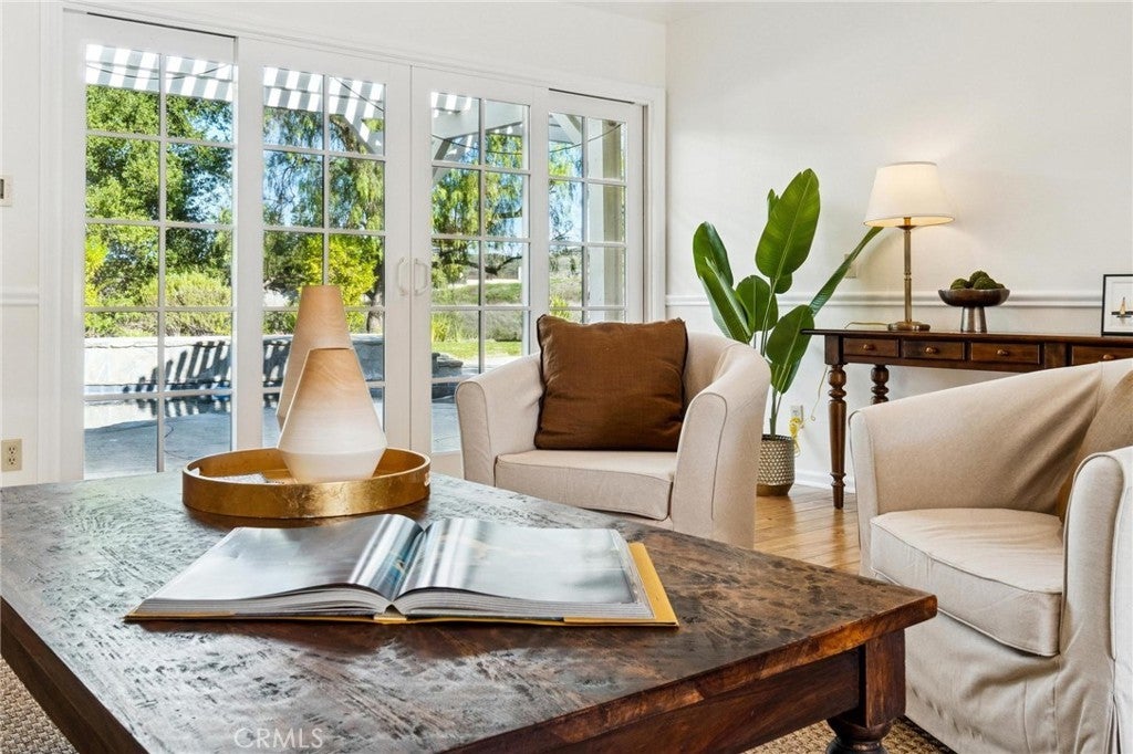 Welcome to this stunning single-story home tucked behind the gates of the sought after Circle J Estates. This floor plan includes 3 bedrooms plus an office or potential 4th bedroom, 2.5 baths and 2,625 sq ft of living space. The almost 30,000 sq ft lot offers privacy, breathtaking views and exceptional indoor-outdoor living. Inside, you’ll find wood flooring throughout the living areas, new carpet in the secondary bedrooms, fresh interior paint, 3 fireplaces, plantation shutters and recessed lighting. The spacious living room is filled with natural light and enhanced by high ceilings, recessed lighting and double sliding glass doors that open to the backyard, showcasing beautiful views and creating a seamless flow for indoor-outdoor entertaining. The oversized kitchen offers stainless steel appliances, a built-in refrigerator, and an abundance of cabinetry for storage and prep space. The kitchen opens to a welcoming family room featuring a fireplace and built-in bar, making it the perfect space for gatherings and everyday living. Outside is where this property truly shines. Take in sweeping views from both the front and backyard. Relax or entertain in your resort-style backyard featuring a pool, spa, and covered patio—perfect for year-round enjoyment. Enjoy a long private driveway with parking for multiple vehicles, a 3-car garage, and a large, gated side yard for storage or parking. A true must-see home that offers space, style, and serenity.