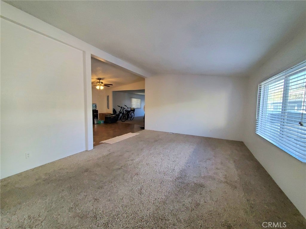 Welcome home to this spacious 3 bedroom 2 bath home in a quiet family park. This home features upgraded windows and a newer roof, new paint inside and a new water heater, dishwasher and disposal. This home has been lovingly cared for and is ready for its next owners. Walking into the front door, there is a large entry with a coat closet. The entry opens to a large living room with carpet and vaulted ceilings. The front living room is open to the dining room, which has a ceiling fan and a breakfast bar. The 2nd living room is located off the dining room and is perfect for family gatherings. 2 large bedrooms and the main bathroom are off the second living room. Both bedrooms feature large closets and carpeting. The main bathroom has a shower/tub combination along with a built in laundry cabinet. The kitchen has a new dishwasher and disposal, along with a large pantry. The service porch leads to the carport and has full size washer and dryer, along with additional storage. The primary bedroom is in the back of the home and has a large paneled walk in closet, a private bathroom and carpeting. The primary bathroom features a double vanity, soaking tub, separate shower and a linen closet. The home has parking on the carport side for 3 cars and a pad on the other side for another car. The home has no neighbors in the back and has artificial grass in the front for a low maintenance yard. Call today to schedule a showing.