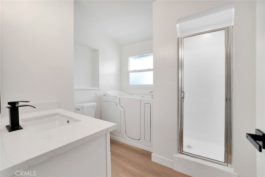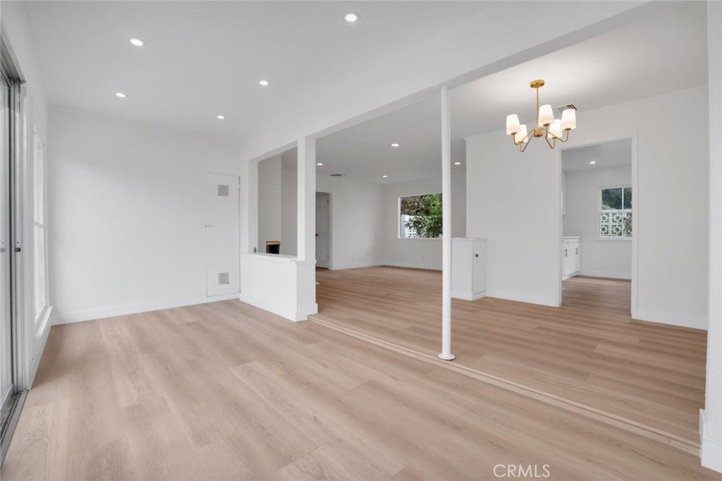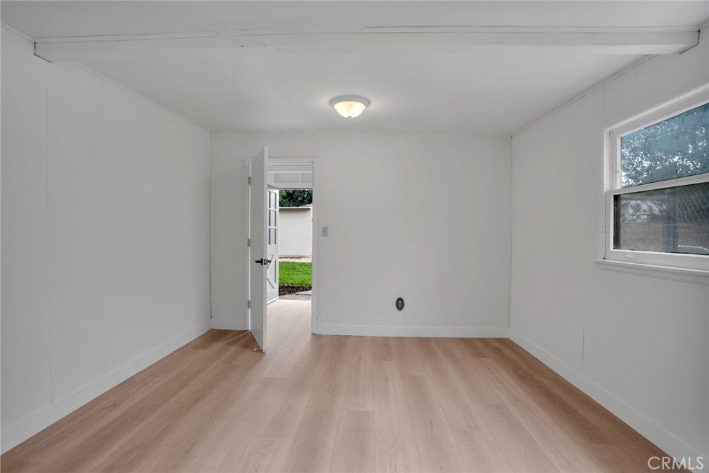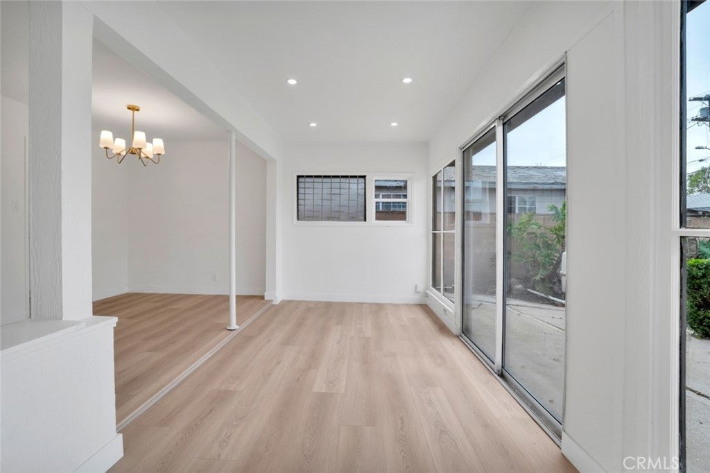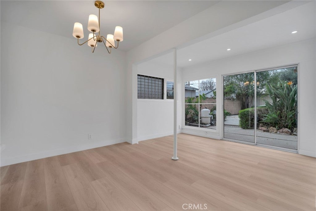 Welcome to this beautifully refreshed Northridge property, where classic charm meets modern upgrades throughout. This inviting home features all-new luxury vinyl flooring, updated lighting, fresh interior and exterior paint, a completely new kitchen, all new interior doors, and stylishly refreshed bathrooms, creating a turnkey feel you’ll love. Thoughtful improvements extend to the roof, electrical system, AC and owned solar panels installed in 2015, offering peace of mind and energy savings. Inside, the main living areas include a light-filled living room with a cozy corner fireplace open to the dining room, and new galley kitchen with white shaker cabinets, quartz countertops, and stainless-steel appliances, with direct side-yard access. Adjacent to the living/dining rooms, a step-down bonus room with extra-large windows and sliding glass doors opens to the backyard, inviting indoor-outdoor living. There are two generous-sized bedrooms in the main house—one boasting an oversized walk-in closet—and a beautifully refreshed full bathroom featuring separate tub and shower. Step outside to your spacious backyard with patio area, sparkling inground pool, and open lawn area with plenty of potential to create your ideal outdoor oasis. Beyond the pool is a generous storage shed, and direct access to private guest quarters with a separate bedroom (permitted as storage room) and 3/4 bath connected to the one-car garage with access off the alley—perfect for guests or work-from-home space. Set in the desirable San Fernando Valley community of Northridge—known for its relaxed suburban vibe, proximity to Northridge Fashion Center’s extensive shopping and dining options, beloved local eateries like Brent’s Deli, nearby parks and recreation, including Dearborn and the Northridge Recreation Center for sports and picnics, plus quick access to major freeways—this home delivers comfort, convenience and lifestyle in one exceptional package.