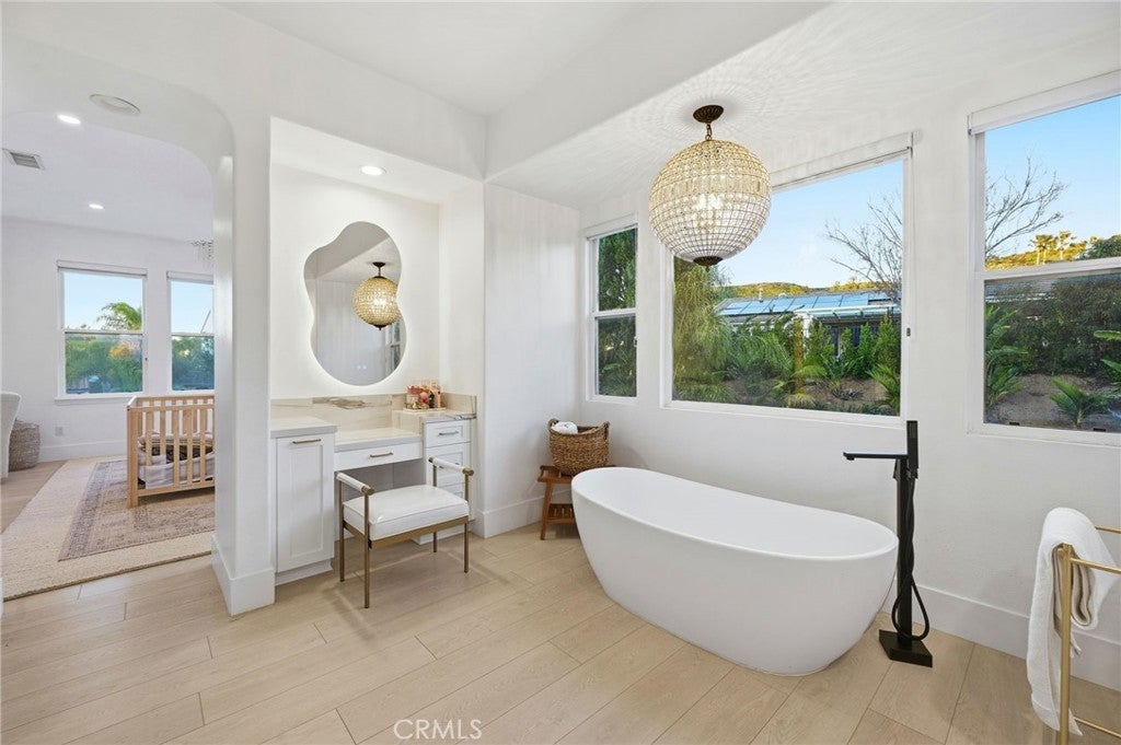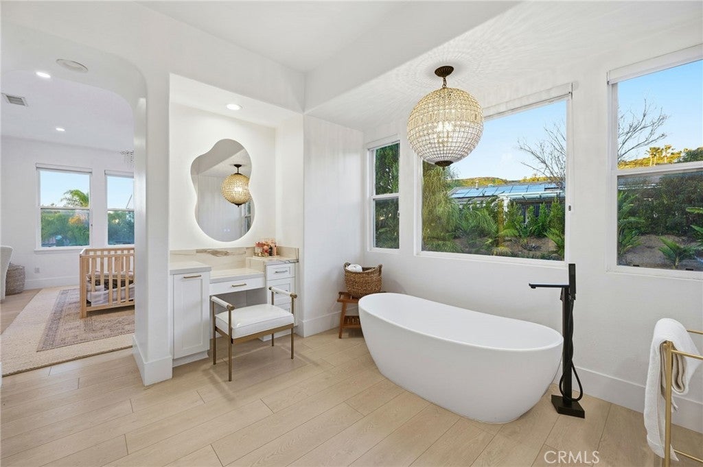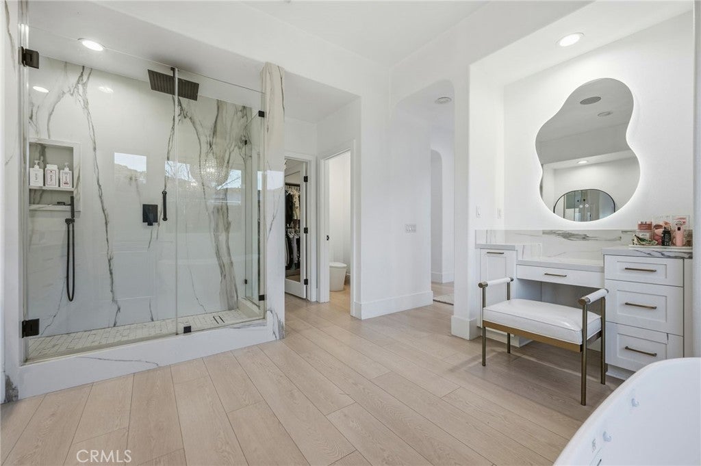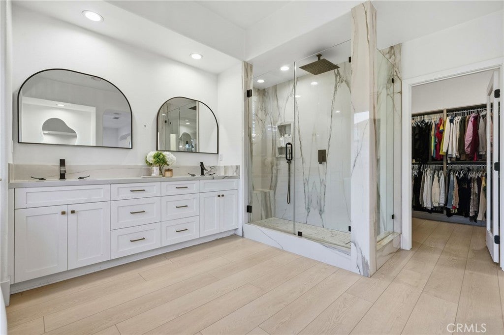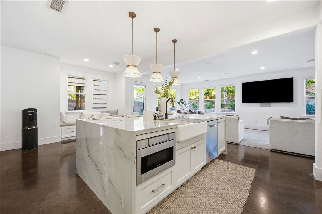 Stunning fully remodeled home offers modern elegance, thoughtful design, and exceptional comfort in one of the area’s most desirable neighborhoods. Renovated from top to bottom, the home features polished concrete floors throughout the first level, creating a sleek, contemporary feel, while the stairs and entire upper level showcase beach-style laminate flooring that adds warmth and a relaxed coastal vibe. The designer kitchen, beautifully updated bathrooms, and stylish bedrooms are accented by custom wall finishes, modern lighting, and stainless steel appliances, making the home ideal for both everyday living and entertaining. The expansive layout includes a three-car garage and flows seamlessly to a private backyard oasis with a pool and spa. The impressive primary suite serves as a true retreat, offering its own reading area, a walk-in closet, and a spa-inspired bathroom with dual sinks, a dedicated vanity area, and a freestanding soaking tub, along with a private balcony overlooking the backyard. Conveniently located near the Ronald Reagan Freeway (118 Freeway), parks, shopping, dining, and everyday conveniences, this turn-key property perfectly blends modern luxury, functionality, and an unbeatable Simi Valley location.