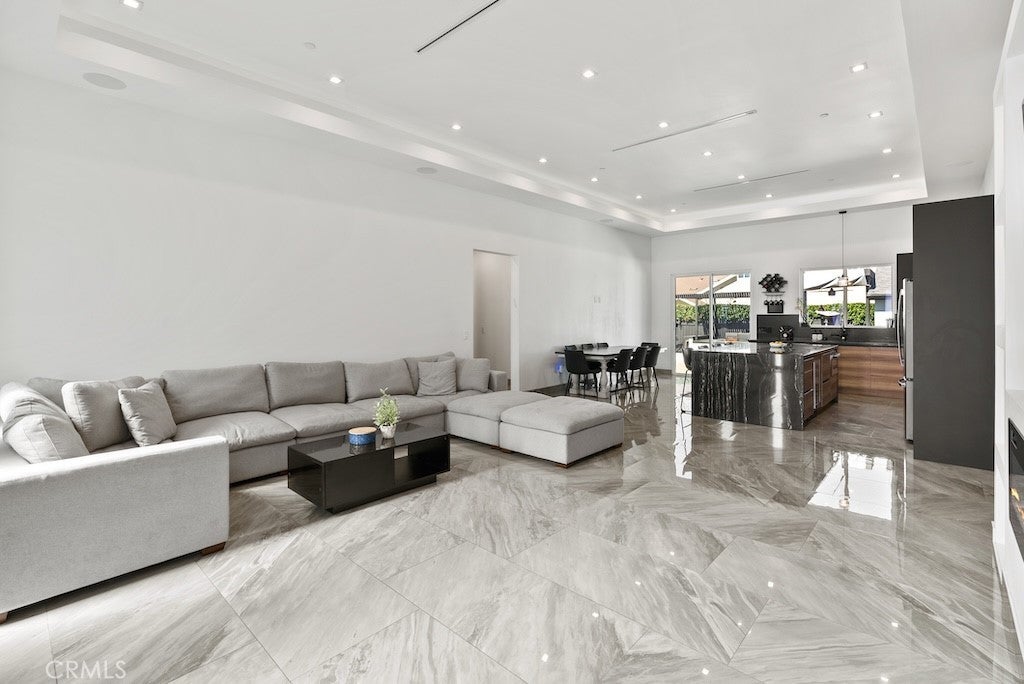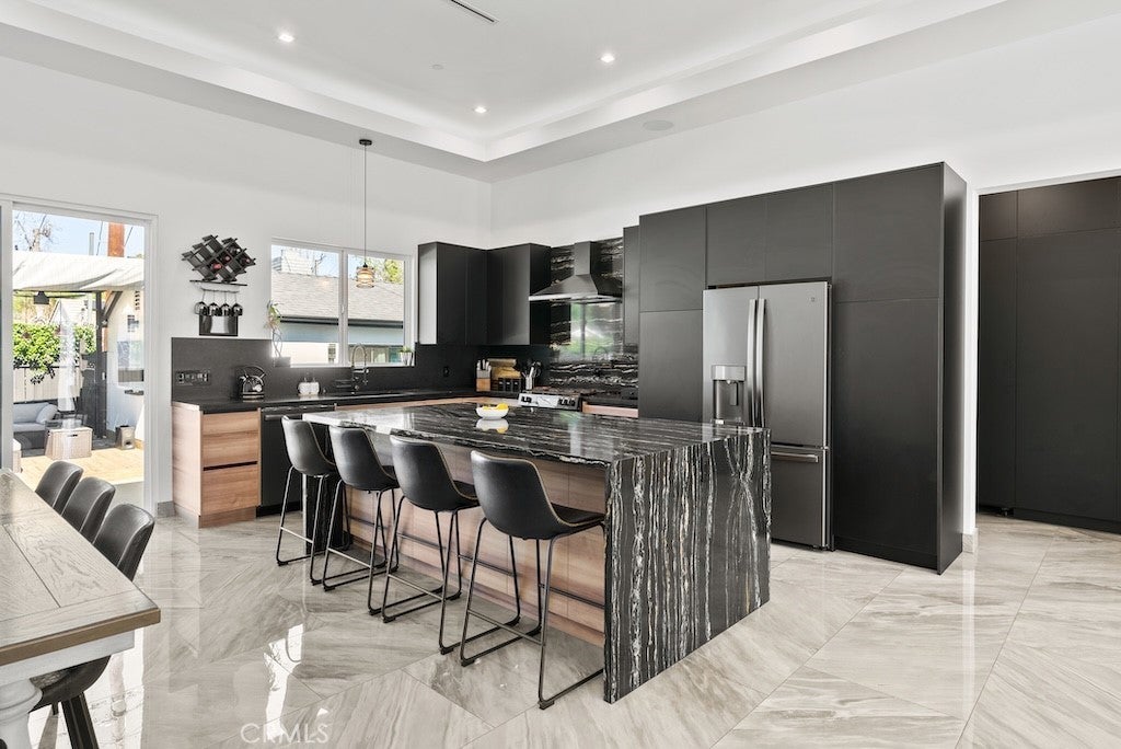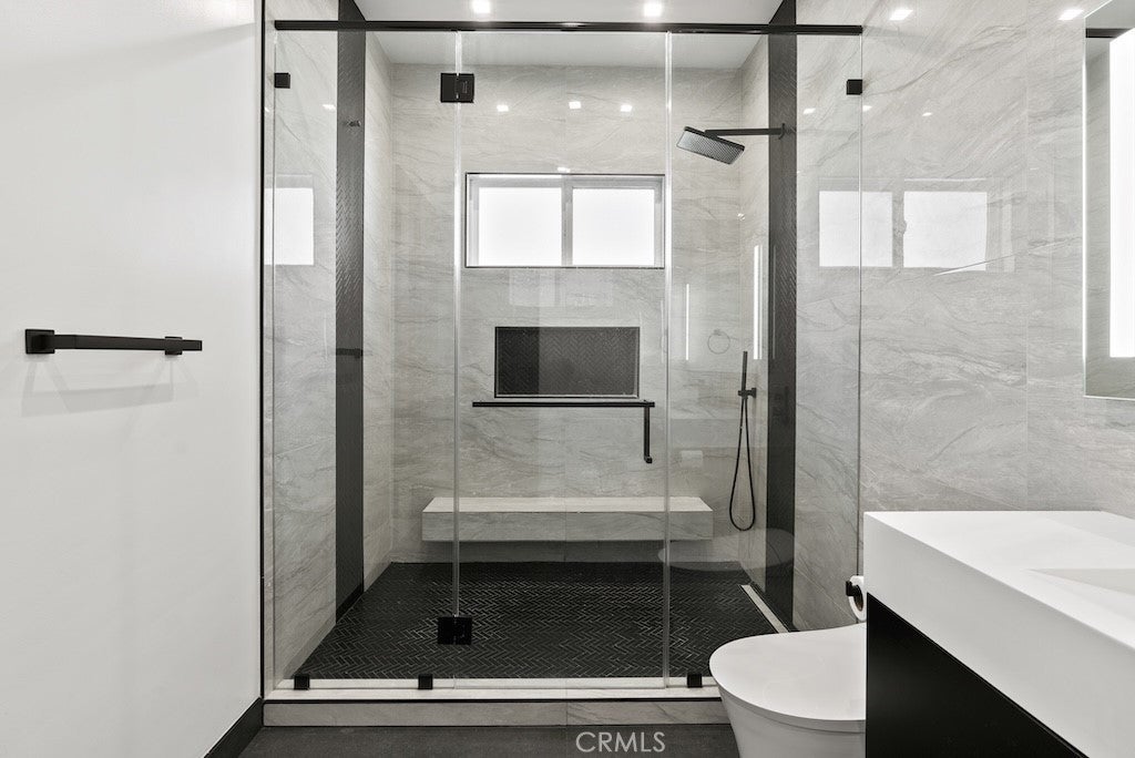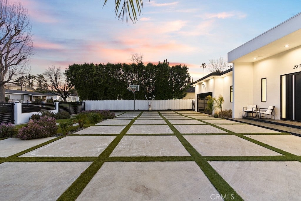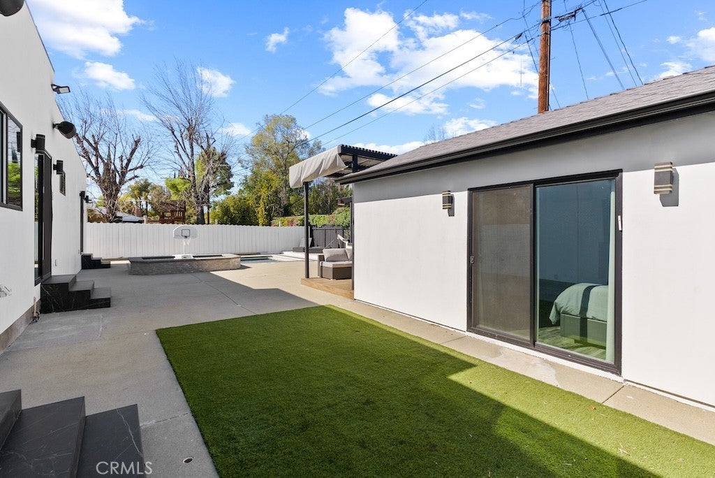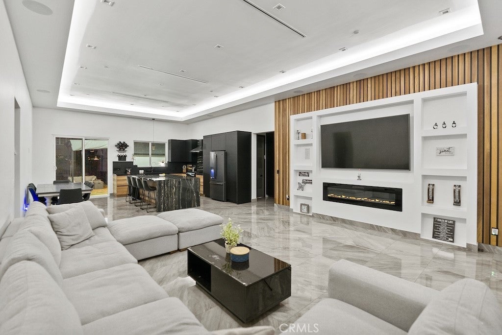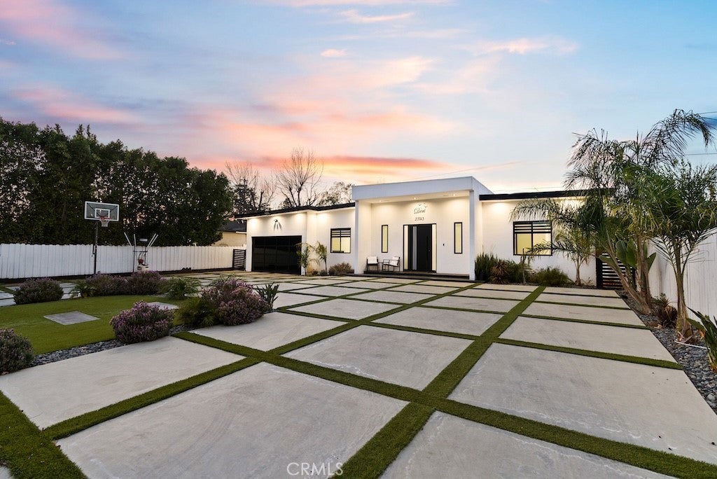Welcome to this unique one-story modern masterpiece in the highly sought-after Walnut Acres Adjacent neighborhood of Woodland Hills. Fully rebuilt and reimagined, this expansive 3,300 sq. ft. estate offers 5 bedrooms and 4 bathrooms, including a detached guest house with 1 bedroom and 1 bathroom.From the moment you arrive, the electrical double-gated entry and circular driveway set the tone for privacy and elegance, providing parking for multiple vehicles, an RV, or even a boat. Step inside to a light-filled open floor plan with 14' soaring ceilings, bespoke Wisconsin hardwood accent walls, custom built-ins blended with soft LED lighting, and a striking modern fireplace that together create a warm yet sophisticated atmosphere. The chef’s kitchen is designed for both beauty and function, complete with soft-close custom cabinetry, quartz countertops, a large island with breakfast bar, double sink, pot filler, high-end appliances, and plenty of workspace. The dining area, overlooking the backyard, creates the perfect setting for intimate dinners or lively gatherings. The primary suite is a serene retreat featuring vaulted ceilings, a massive walk-in closet, and a spa-inspired en-suite with dual faucets and a walk-in shower. Two spacious bedrooms share a modern Jack & Jill bath, while a junior suite offers its own walk-in closet & full bath. The detached guest house is a true bonus with its own fireplace, walk-in closet, and full bath, ideal for guests, a home office, gym, or rental income. Step outside to your private backyard paradise, a resort-style escape with a sparkling saltwater pool & spa, raised tanning deck, and covered patio with ceiling fan for year-round comfort. Host unforgettable gatherings with the outdoor kitchen, complete with double BBQ grill and built-in bar, then unwind by the sleek fire pit or dine al fresco in the covered lounge, all surrounded by lush, mature landscaping. Additional features include luxury tile flooring throughout, custom window blinds, and smart home system that controls interior and exterior sound, security cameras, intercom, central A/C with individual climate control for each bedroom to maximize comfort and energy efficiency. Perfectly located just one block north of Ventura Blvd and minutes from the 101 freeway, this home offers easy access to The Calabasas Commons, premier shopping, fine dining, and award-winning schools. This is your opportunity to own one of Woodland Hills’ finest modern estates.