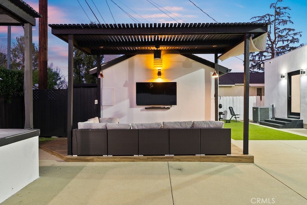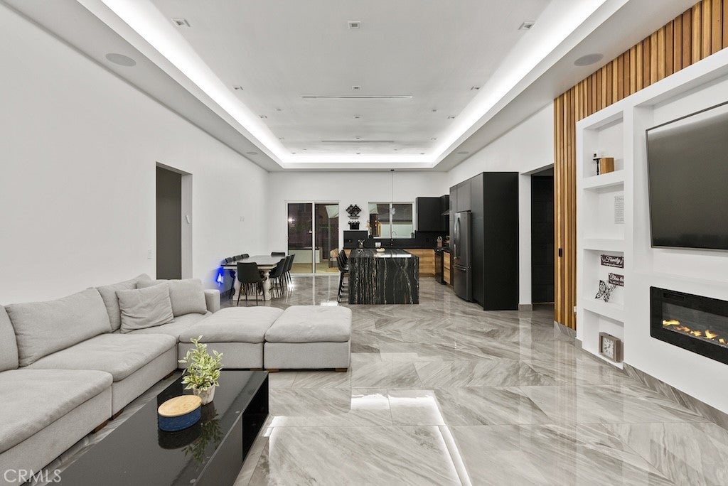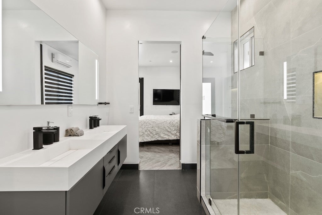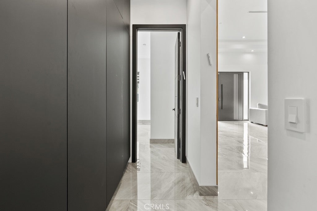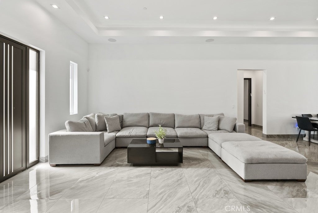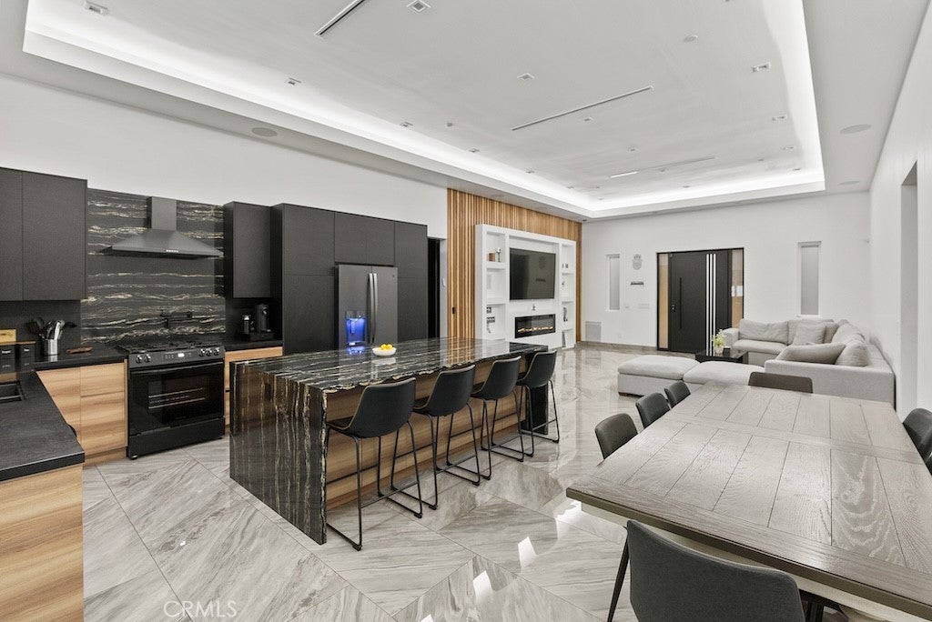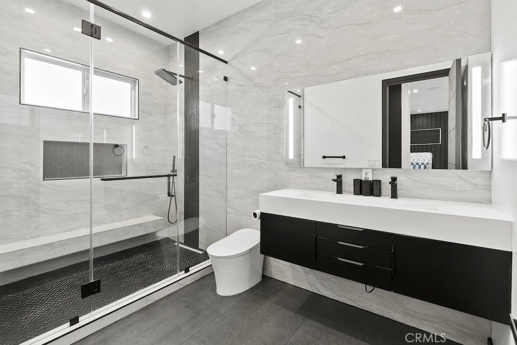 Welcome to this unique one-story modern masterpiece in the highly sought-after Walnut Acres Adjacent neighborhood of Woodland Hills. Fully rebuilt and reimagined, this expansive 3,300 sq. ft. estate offers 5 bedrooms and 4 bathrooms, including a detached guest house with 1 bedroom and 1 bathroom.From the moment you arrive, the electrical double-gated entry and circular driveway set the tone for privacy and elegance, providing parking for multiple vehicles, an RV, or even a boat. Step inside to a light-filled open floor plan with 14' soaring ceilings, bespoke Wisconsin hardwood accent walls, custom built-ins blended with soft LED lighting, and a striking modern fireplace that together create a warm yet sophisticated atmosphere. The chef’s kitchen is designed for both beauty and function, complete with soft-close custom cabinetry, quartz countertops, a large island with breakfast bar, double sink, pot filler, high-end appliances, and plenty of workspace. The dining area, overlooking the backyard, creates the perfect setting for intimate dinners or lively gatherings. The primary suite is a serene retreat featuring vaulted ceilings, a massive walk-in closet, and a spa-inspired en-suite with dual faucets and a walk-in shower. Two spacious bedrooms share a modern Jack & Jill bath, while a junior suite offers its own walk-in closet & full bath. The detached guest house is a true bonus with its own fireplace, walk-in closet, and full bath, ideal for guests, a home office, gym, or rental income. Step outside to your private backyard paradise, a resort-style escape with a sparkling saltwater pool & spa, raised tanning deck, and covered patio with ceiling fan for year-round comfort. Host unforgettable gatherings with the outdoor kitchen, complete with double BBQ grill and built-in bar, then unwind by the sleek fire pit or dine al fresco in the covered lounge, all surrounded by lush, mature landscaping. Additional features include luxury tile flooring throughout, custom window blinds, and smart home system that controls interior and exterior sound, security cameras, intercom, central A/C with individual climate control for each bedroom to maximize comfort and energy efficiency. Perfectly located just one block north of Ventura Blvd and minutes from the 101 freeway, this home offers easy access to The Calabasas Commons, premier shopping, fine dining, and award-winning schools. This is your opportunity to own one of Woodland Hills’ finest modern estates.