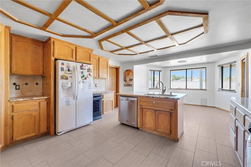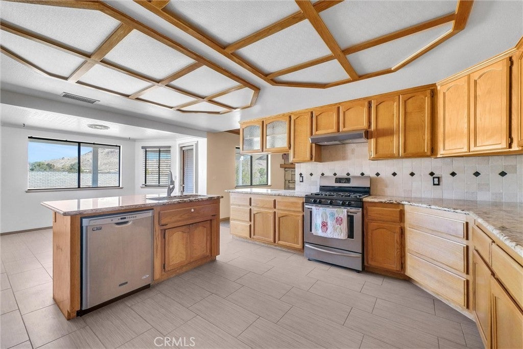 Located in a quiet area of Apple Valley, 16635 Wintun Road offers space, privacy, and comfortable desert living. This single-story home includes three bedrooms and two bathrooms with over 2,200 square feet of living space. Inside, vaulted ceilings with wood beams create an open feel, and a stone fireplace adds warmth to the main living area. French doors open to the backyard, where you can enjoy peaceful desert surroundings and mountain views. The home sits on a gated three-quarter-acre lot, providing plenty of room for outdoor activities, parking, or future improvements. With its blend of space, comfort, and privacy, this property is a great opportunity to enjoy High Desert living.
